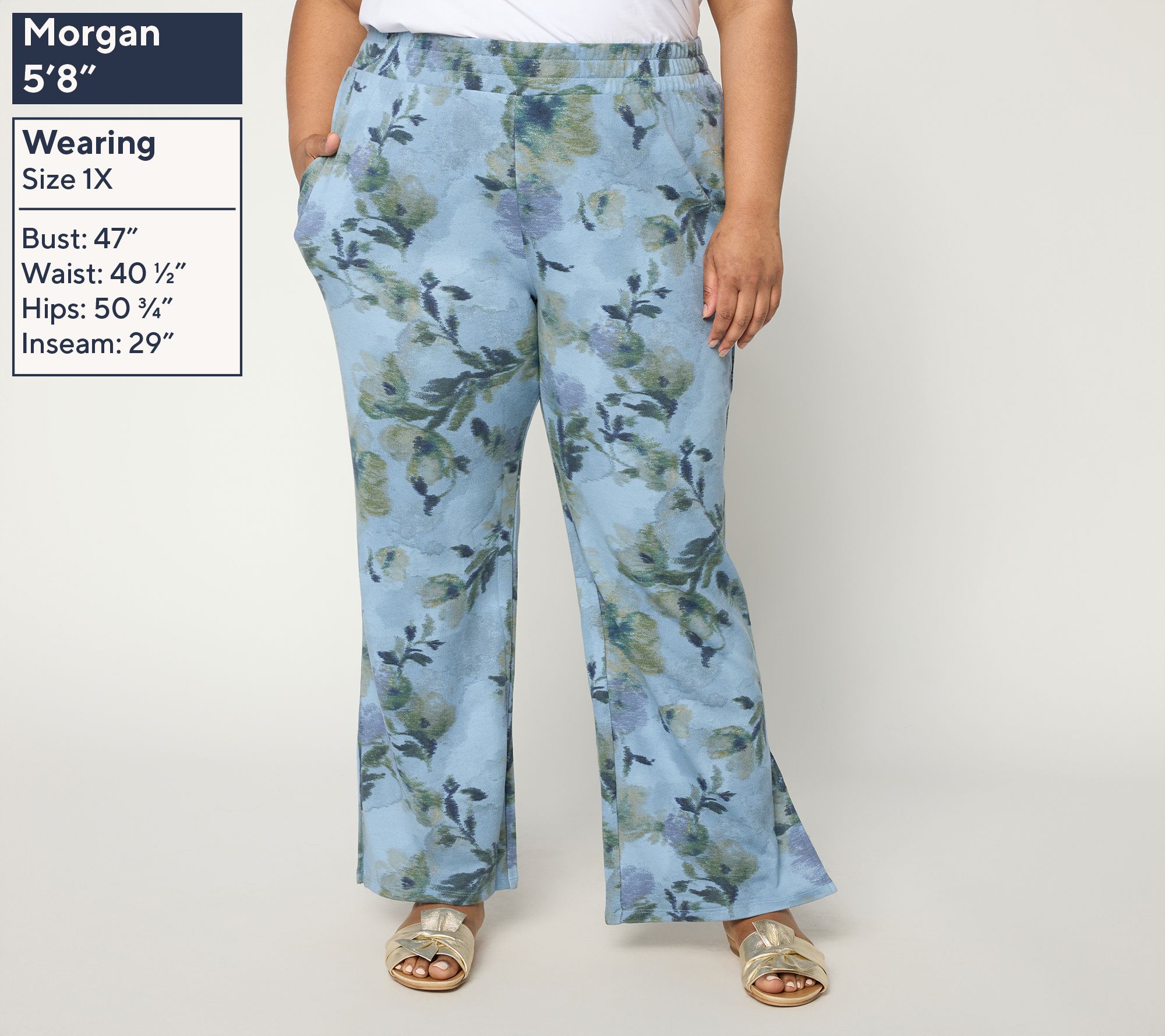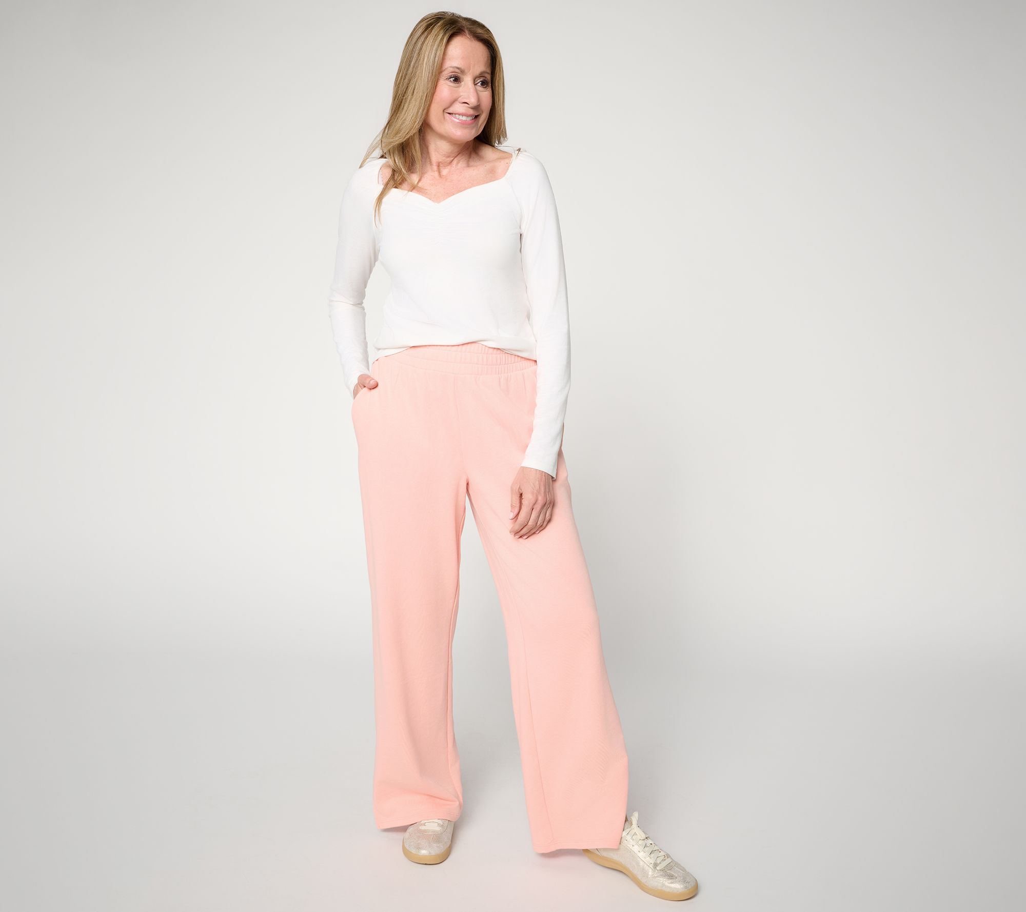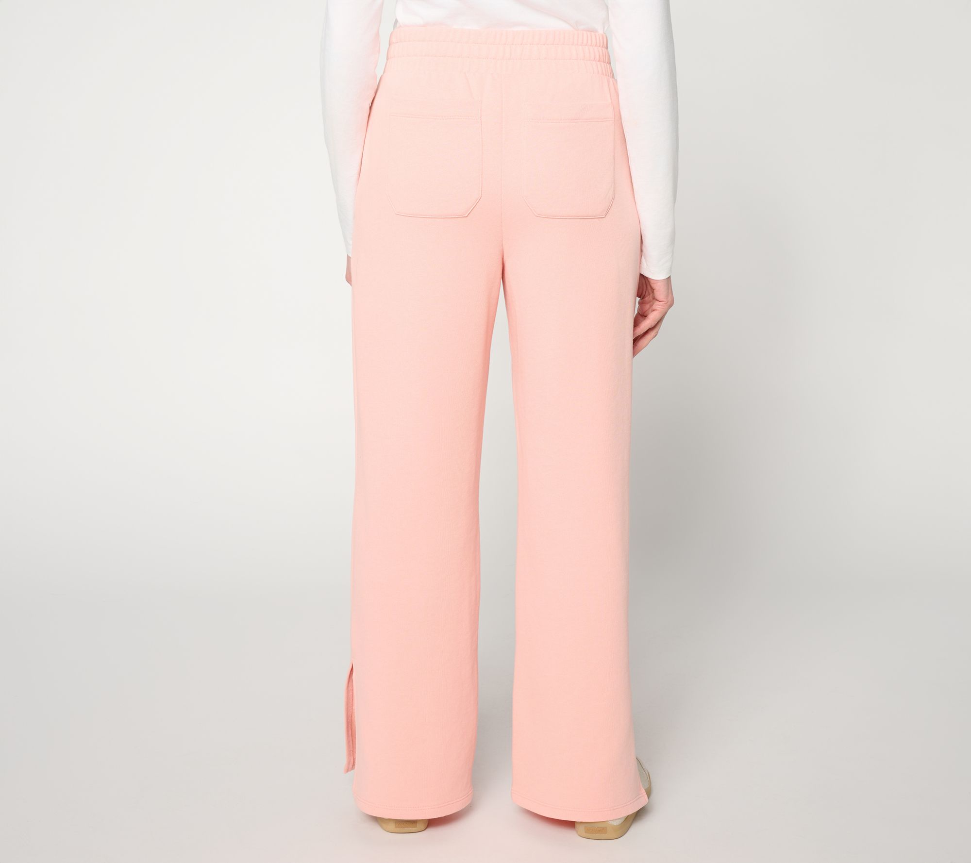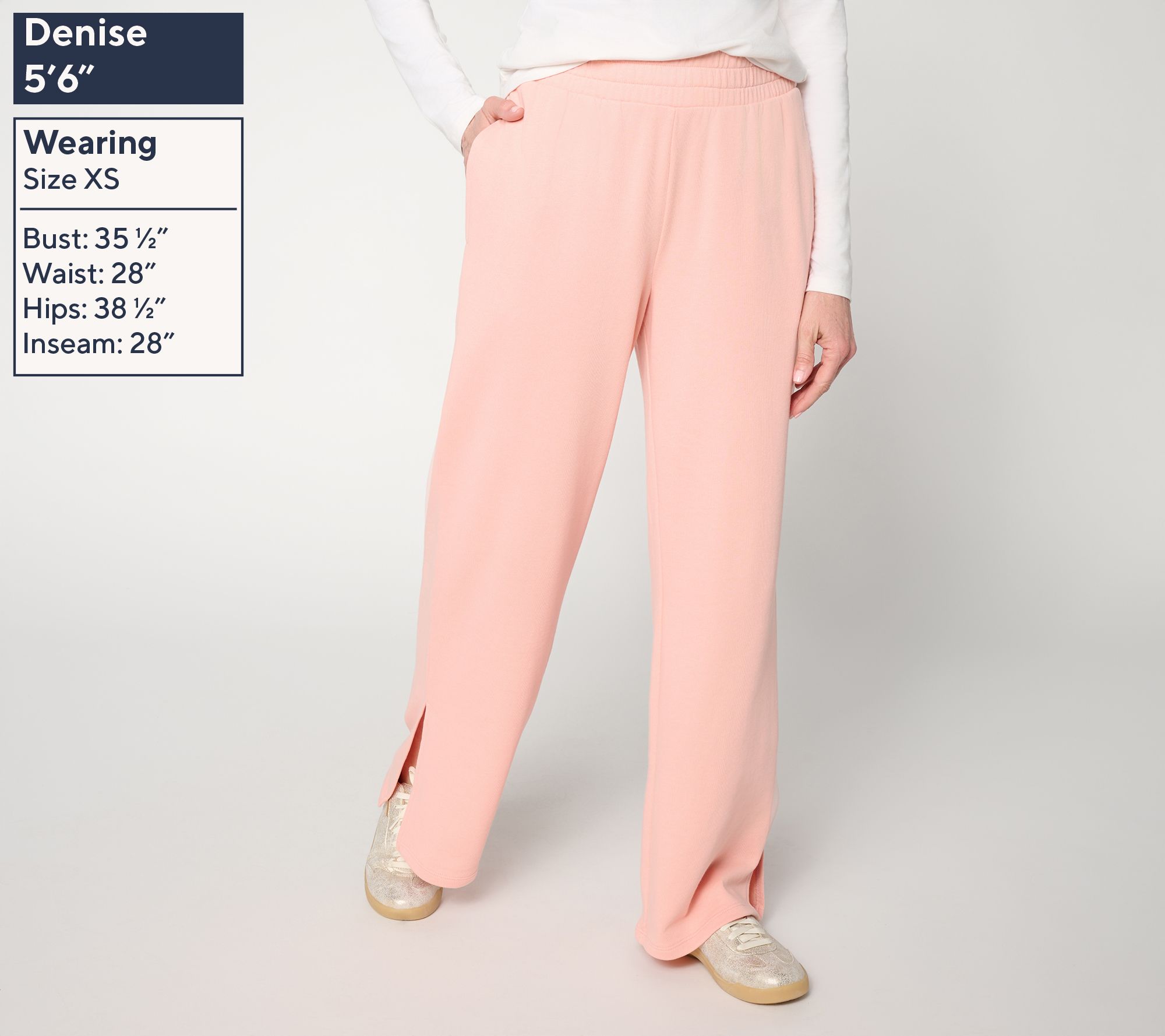 Treat yourself to easygoing afternoons or cozy nights at home in these wide-leg pants, crafted from soft French terry knit for lounge-worthy comfort. A gentle elastic waistband, handy pockets, and breezy slits at the hem make these pants a day-to-night staple for errands or relaxing with friends. From Me Time by Jennie Garth.