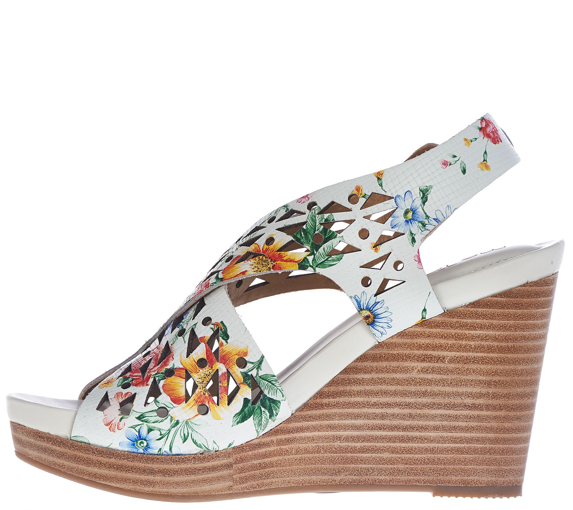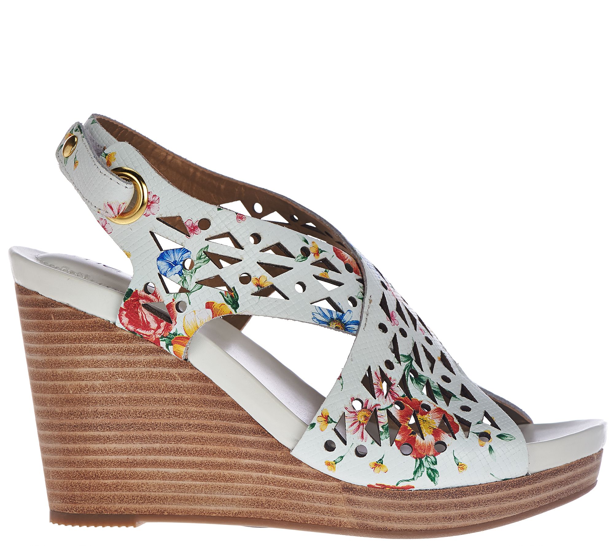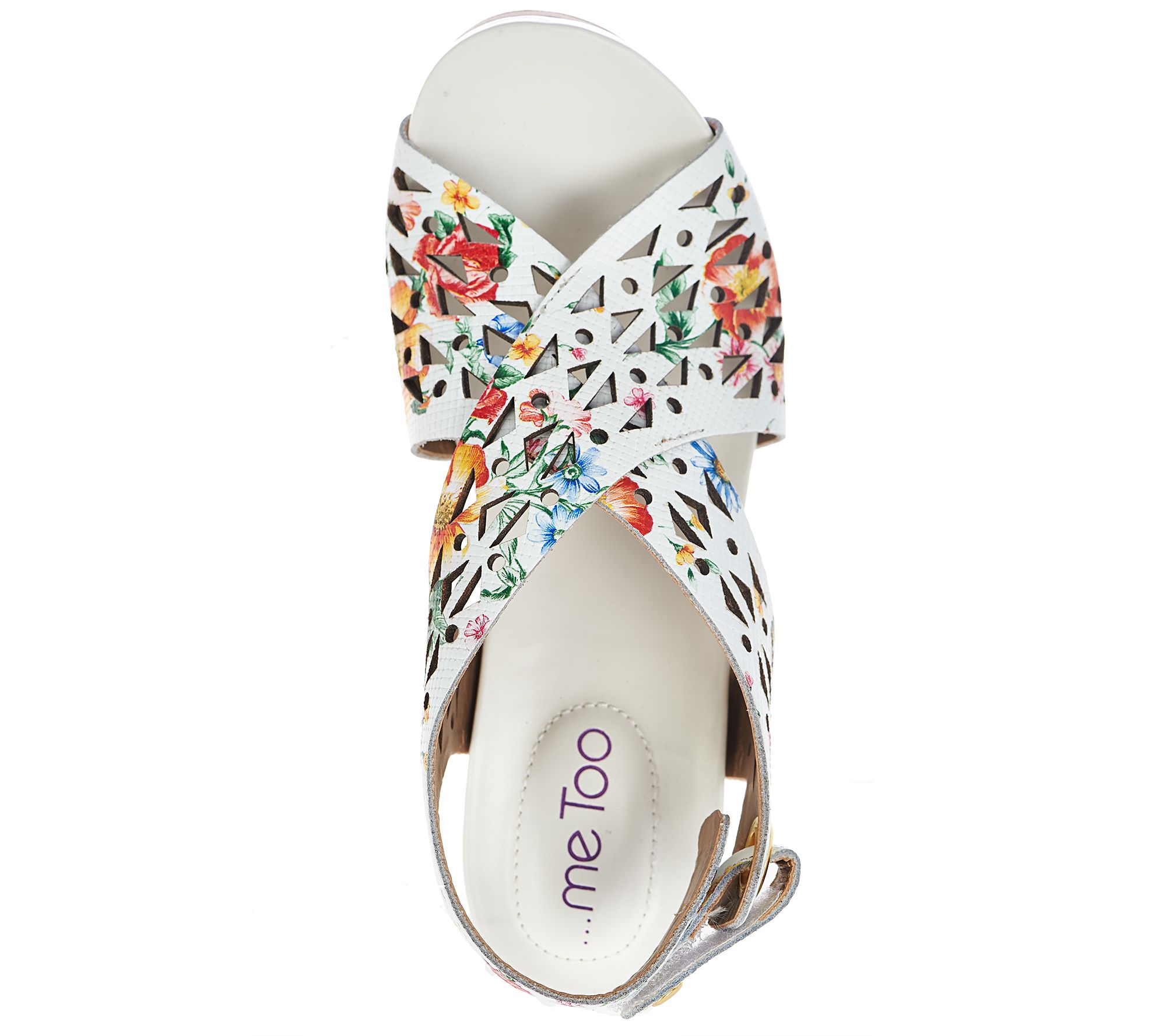 Me Too Leather Perforated Cross Strap Wedges - Aubree
