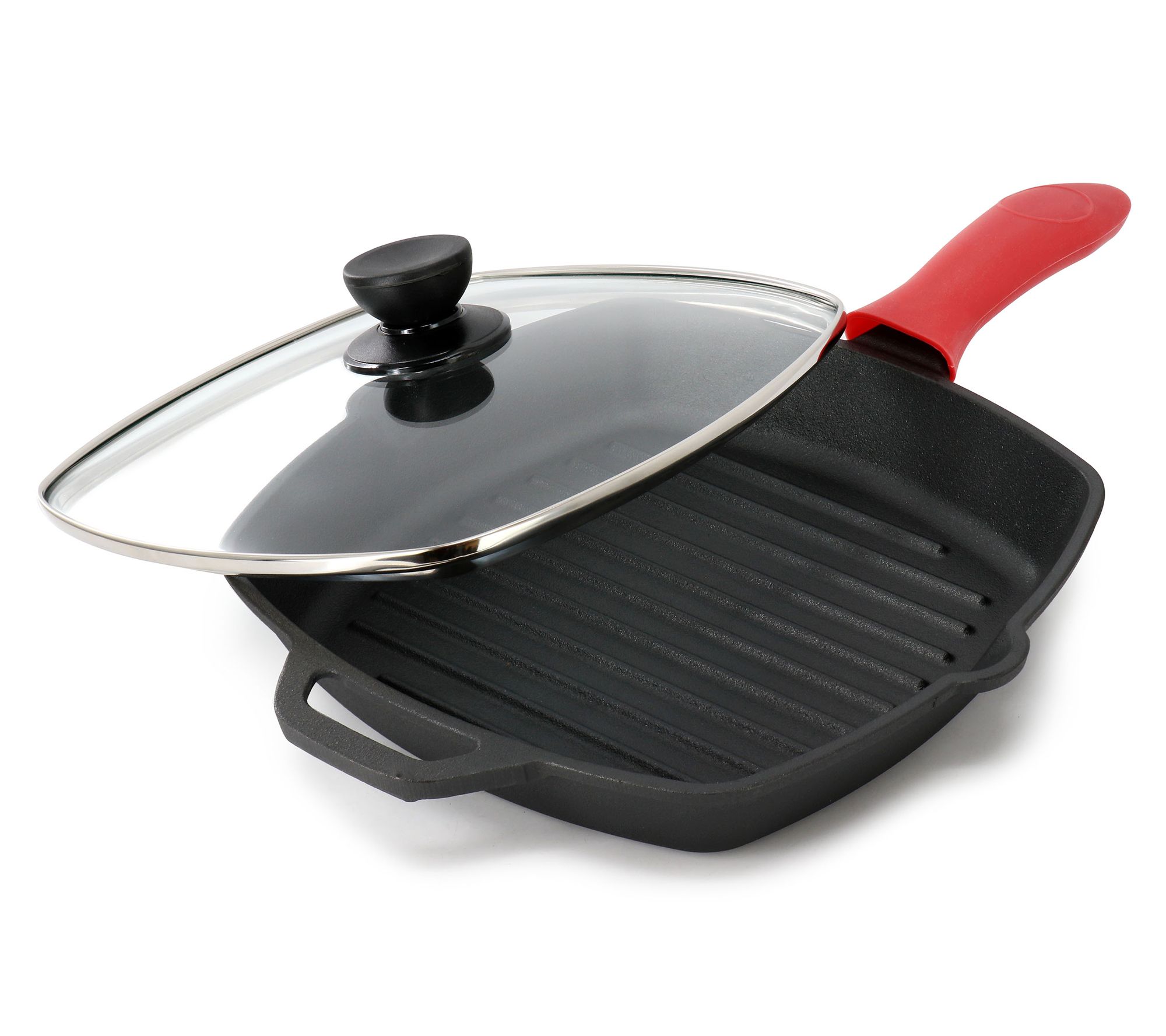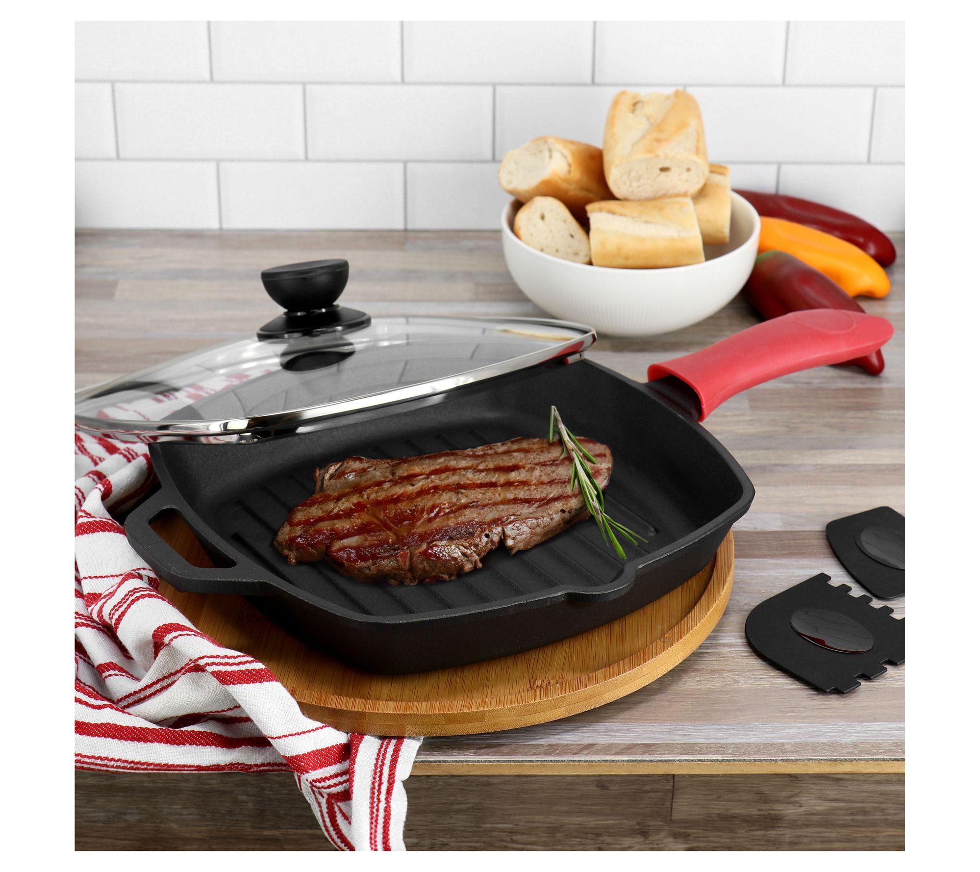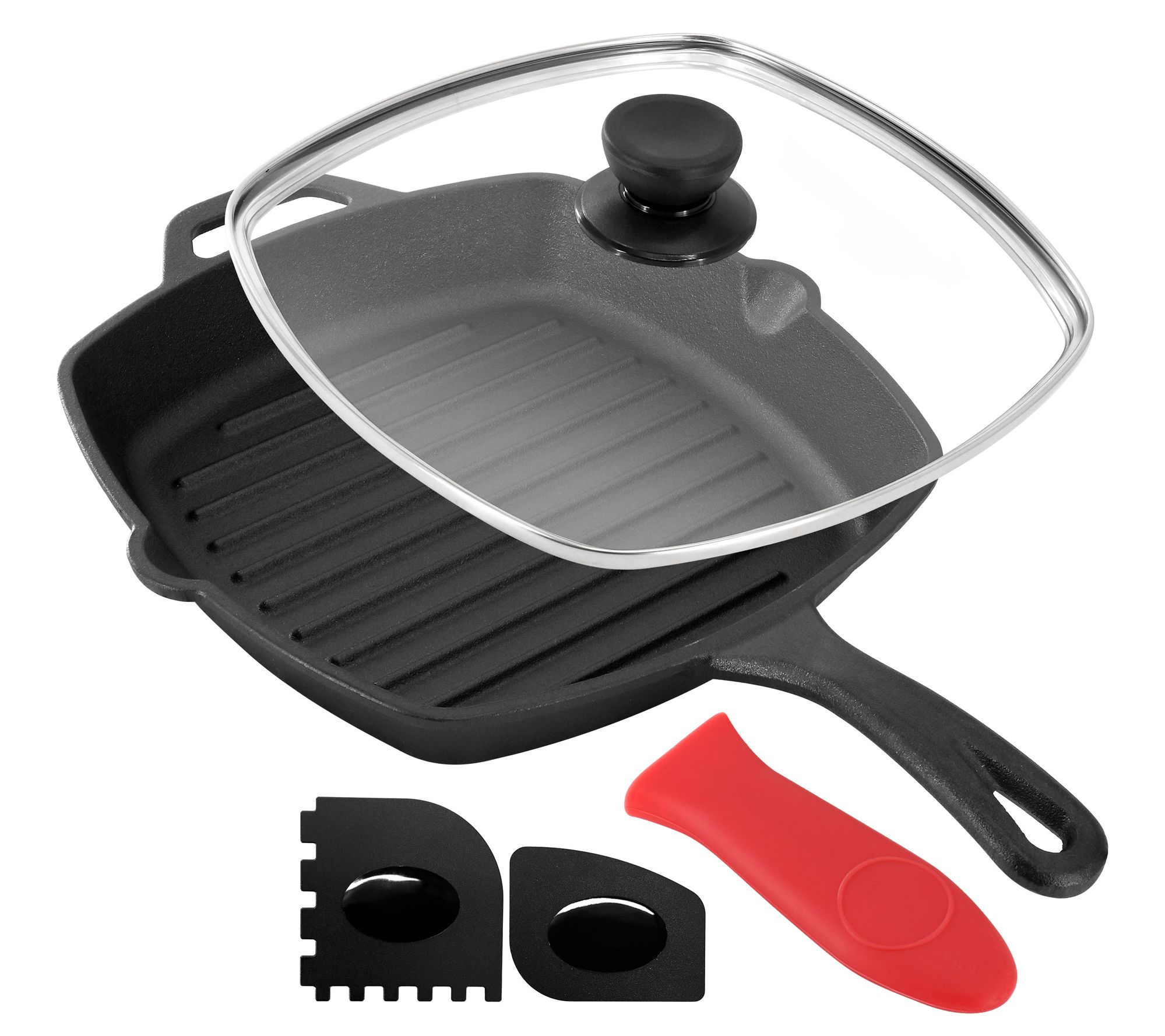 MegaChef 10.4" Cast Iron Griddle w/ Glass Lid &Scraper