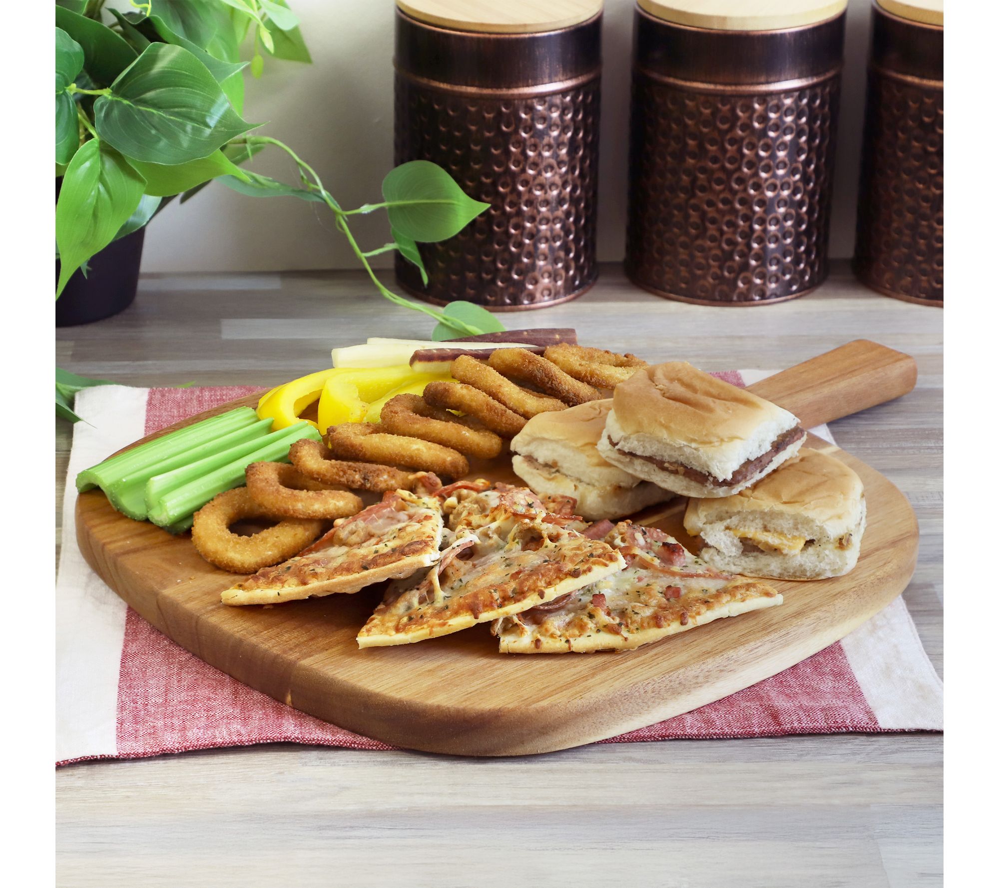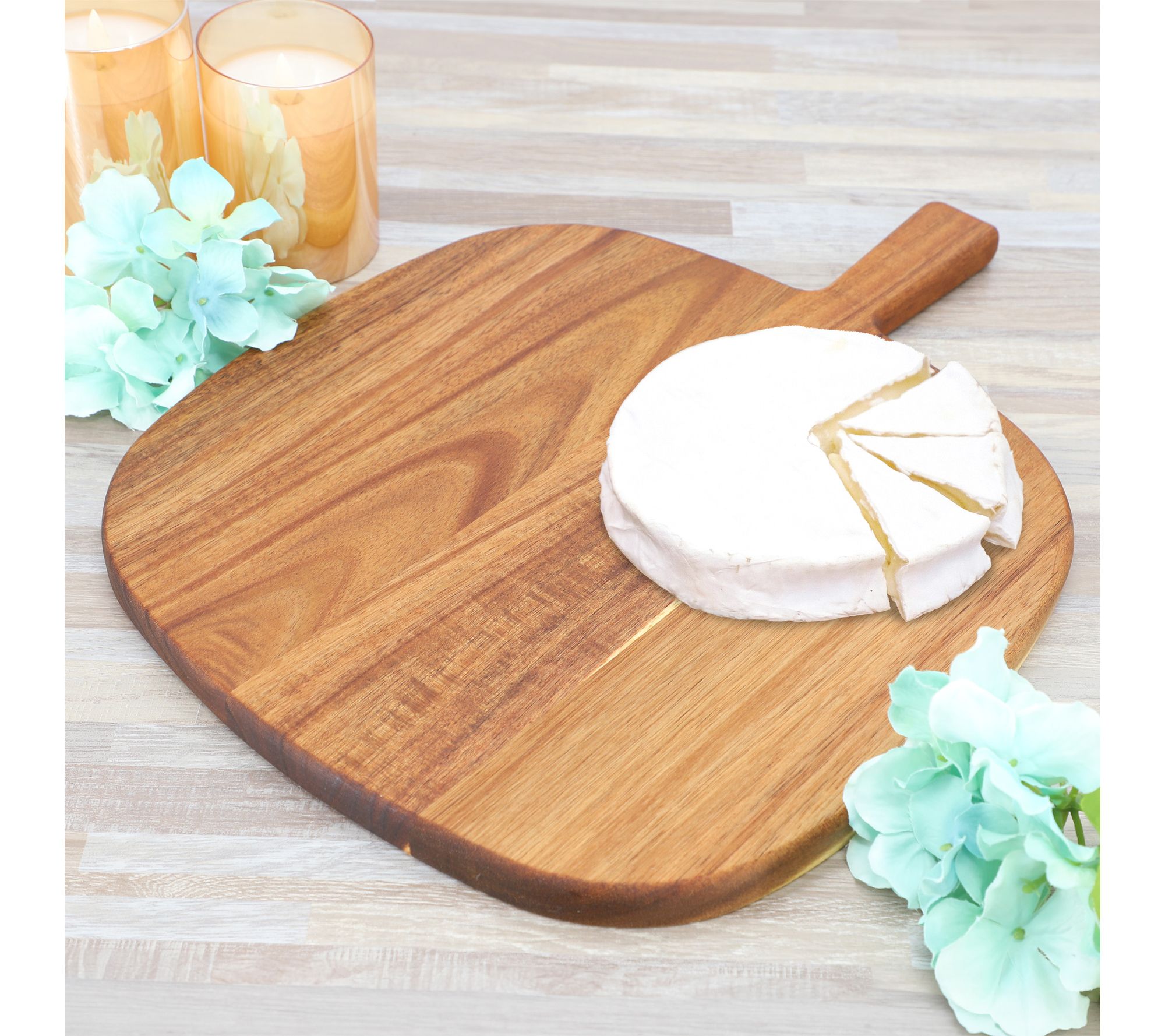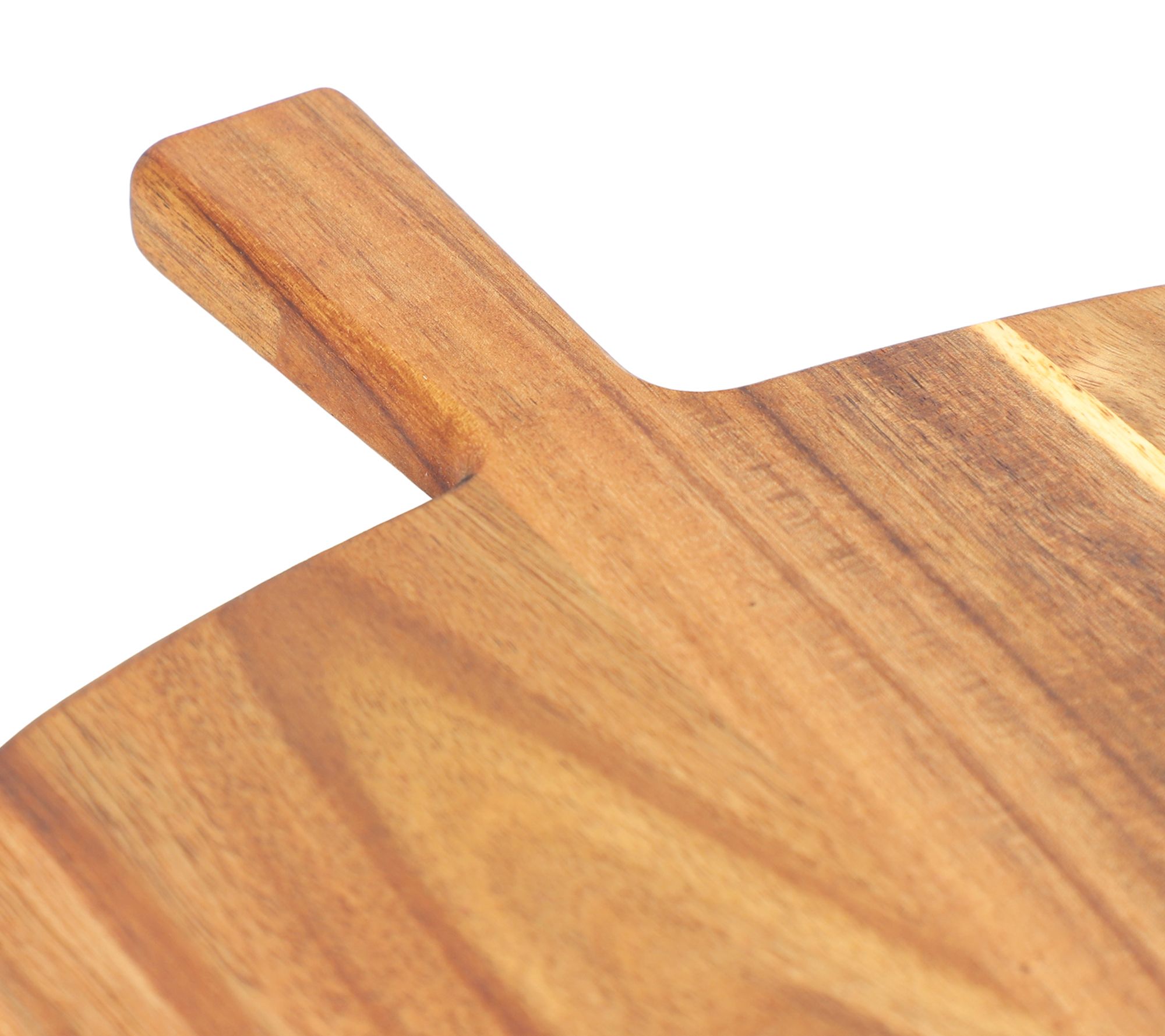 Whether you're serving up charcuterie for friends or prepping ingredients for a family meal, this acacia wood butcher cutting board with handle brings a touch of rustic charm to your kitchen. Its spacious surface and ergonomic handle make slicing, dicing, and presenting foods effortless, while the natural wood grain adds warmth to any table setting. From MegaChef.