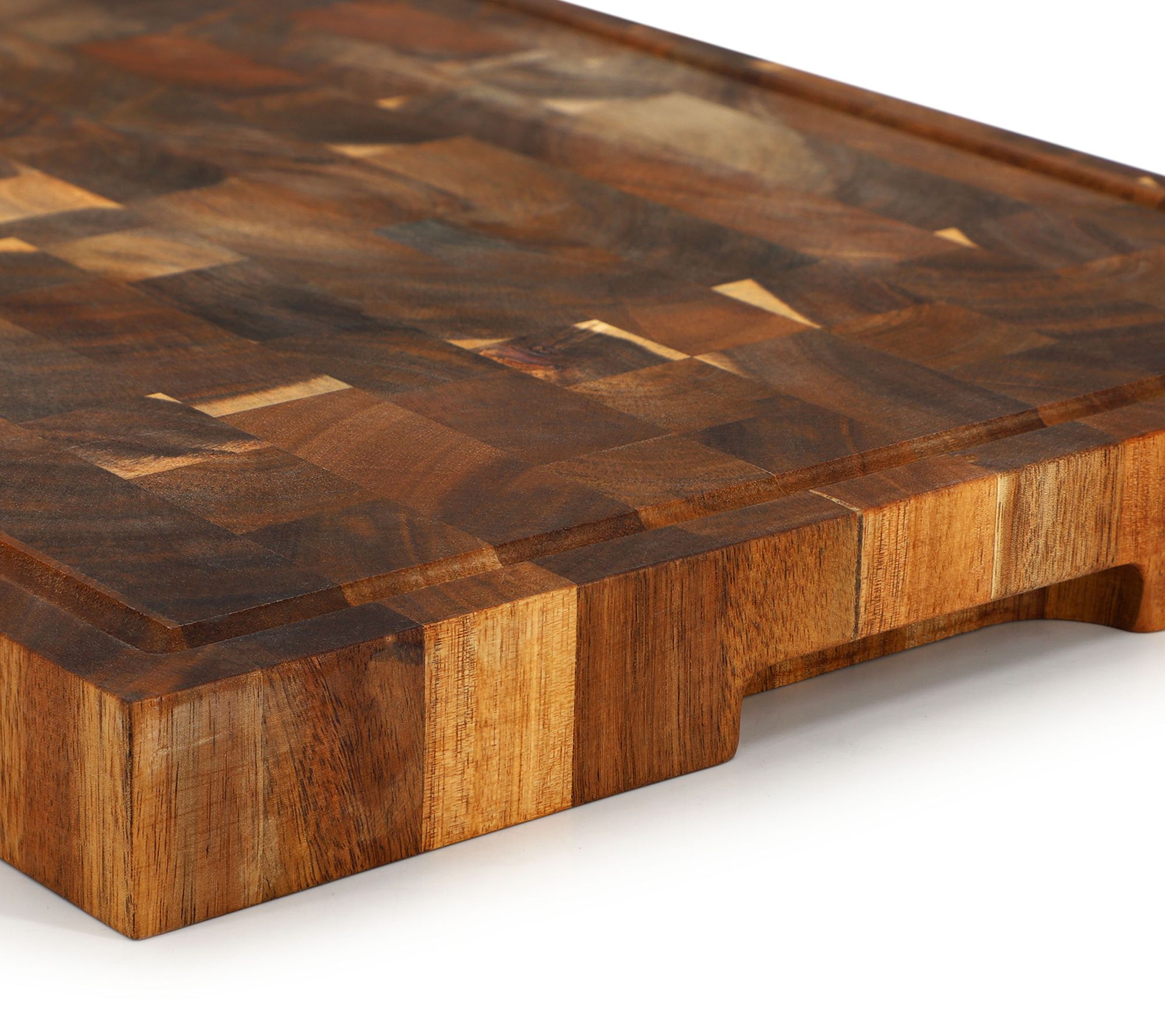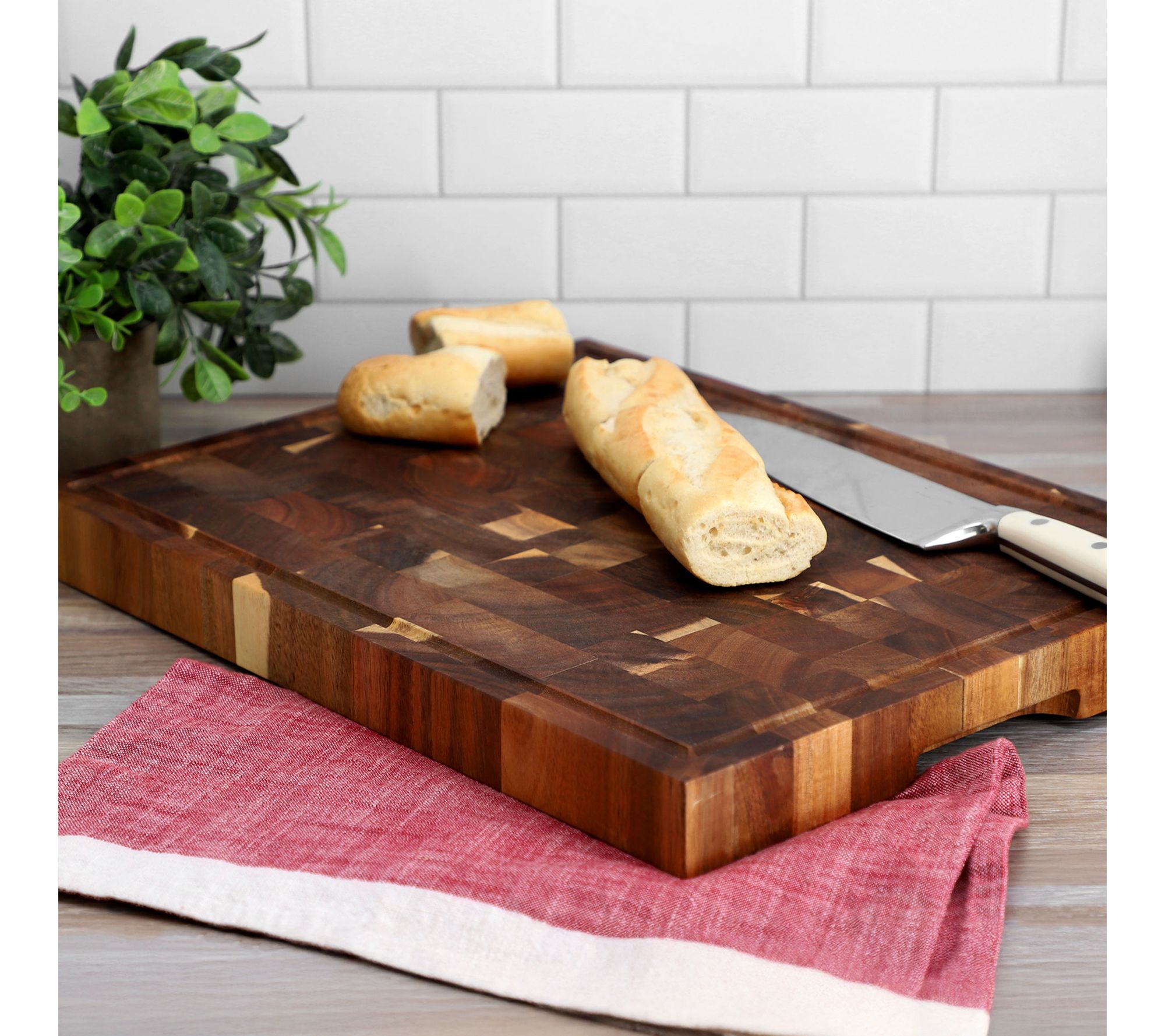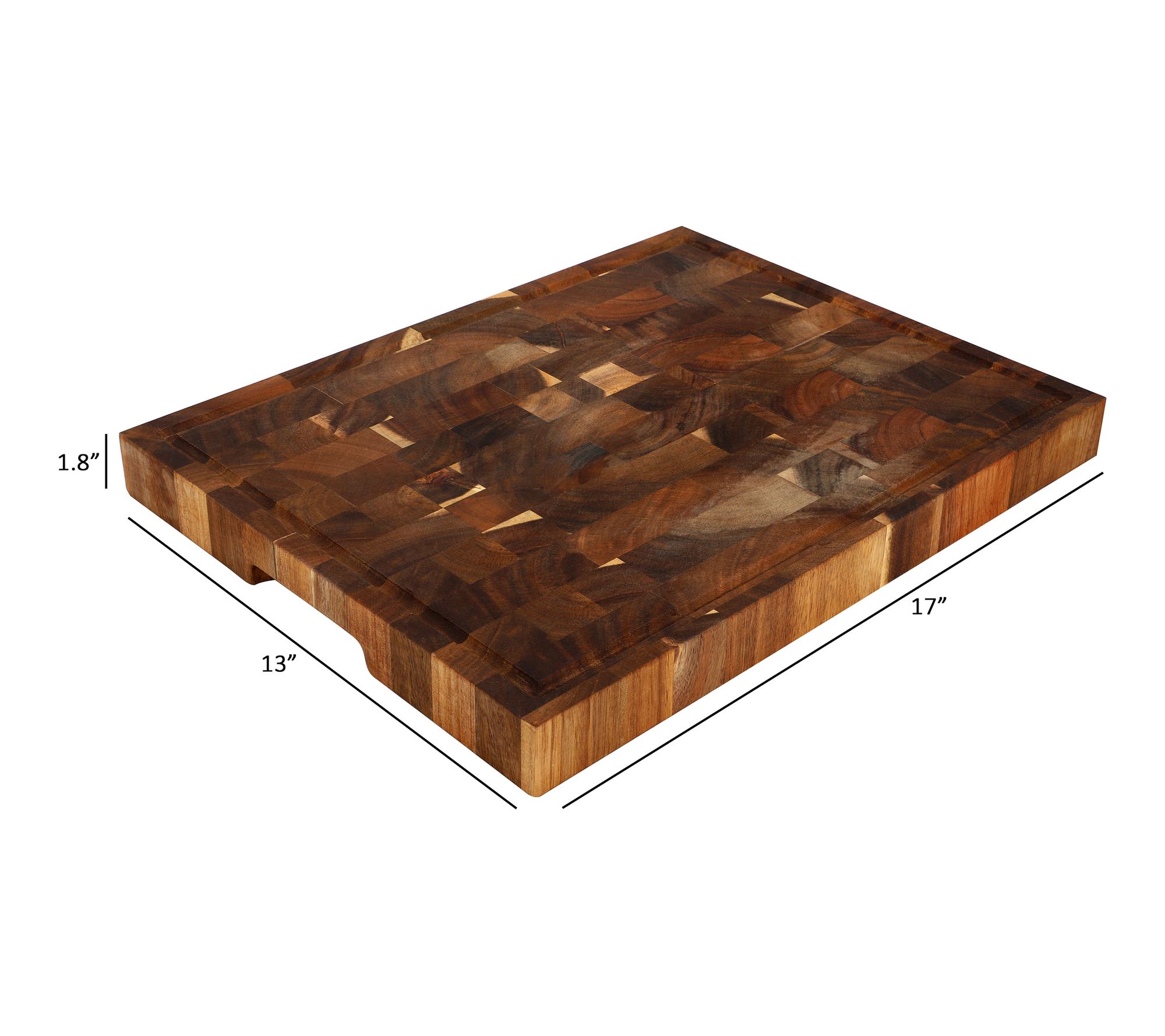From prepping family dinners to carving holiday roasts, this acacia wood butcher block cutting board brings style and convenience to your kitchen. Its spacious 17 x 13-inch surface and deep juice groove help keep countertops tidy while you slice, chop, and serve. Enjoy a touch of sophistication every time you prepare your favorite meals. From MegaChef.