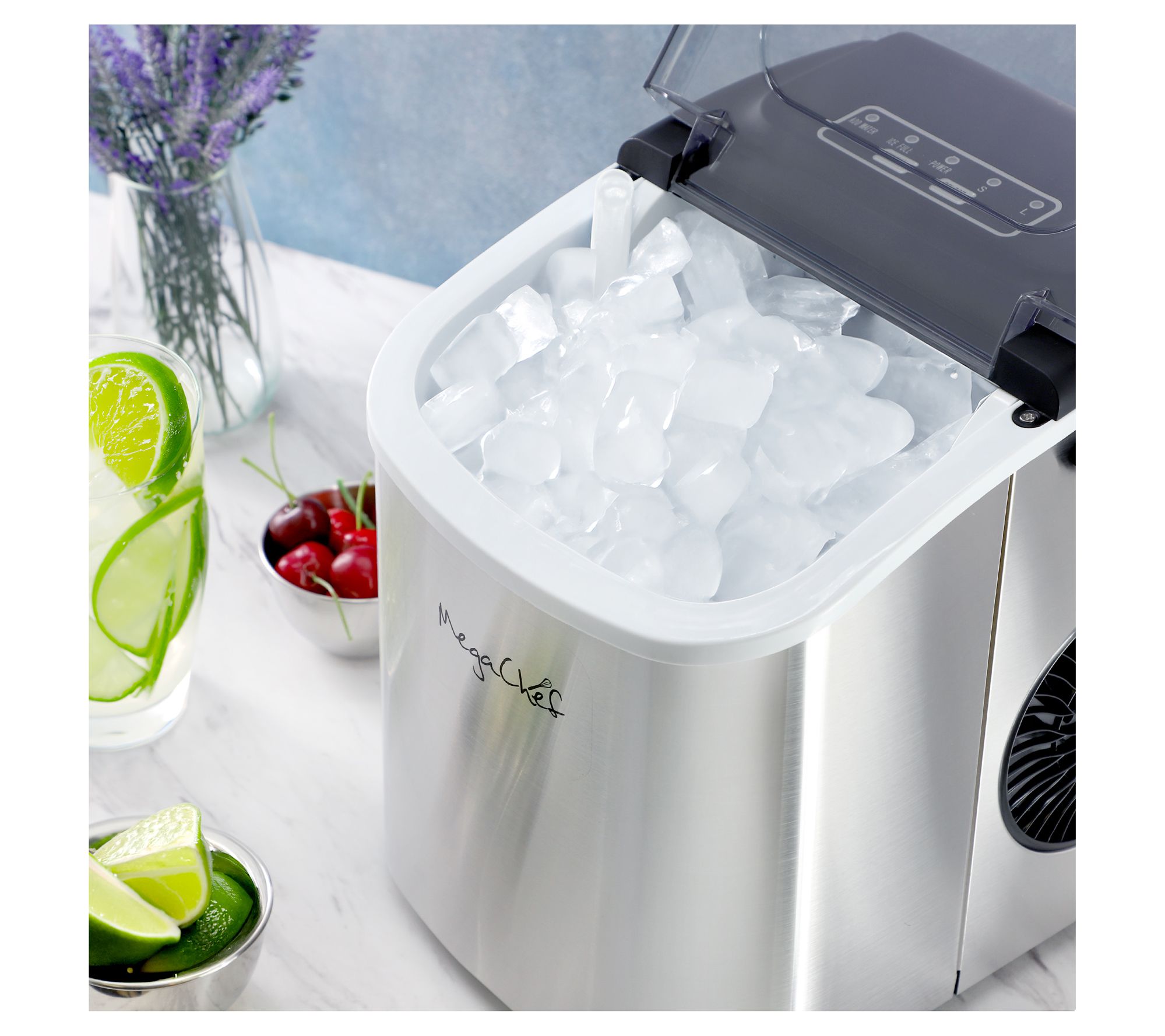 Imagine hosting a summer get-together, where refreshing drinks are always at the ready. The MegaChef portable ice maker effortlessly fits into any kitchen or entertainment space, offering a sleek stainless steel finish that complements any decor. With an impressive capacity, this appliance churns out bullet-shaped ice cubes in minutes, perfect for keeping your cocktails chilled. A practical handle adds to its portability, making it the ideal companion for parties and everyday use. From MegaChef.