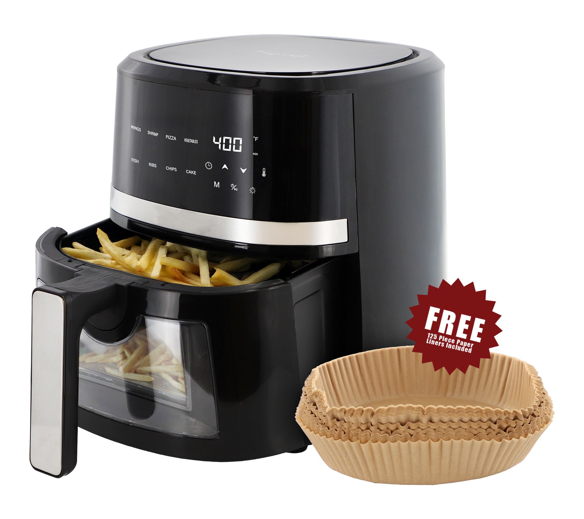 • Includes 4-qt air fryer, bumper, 125 paper liners, user manual
