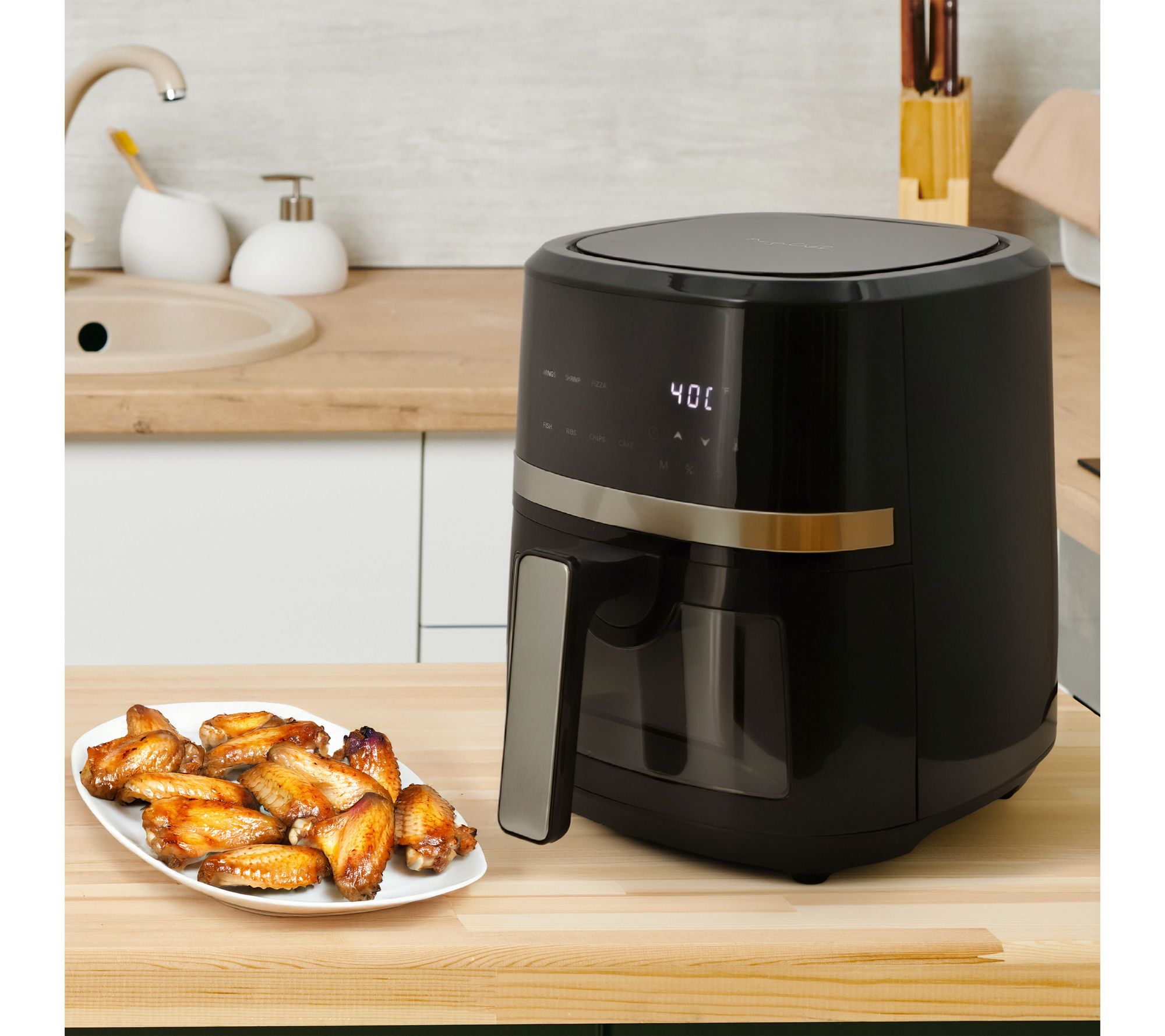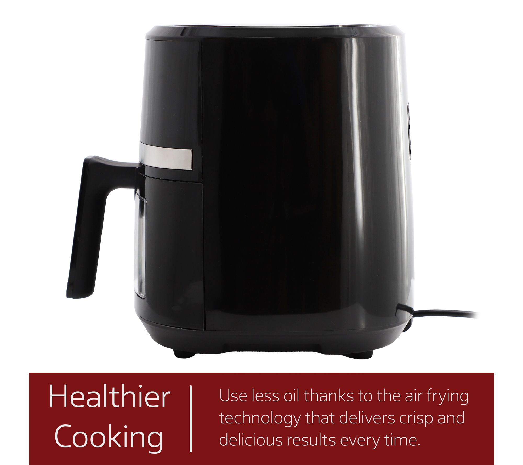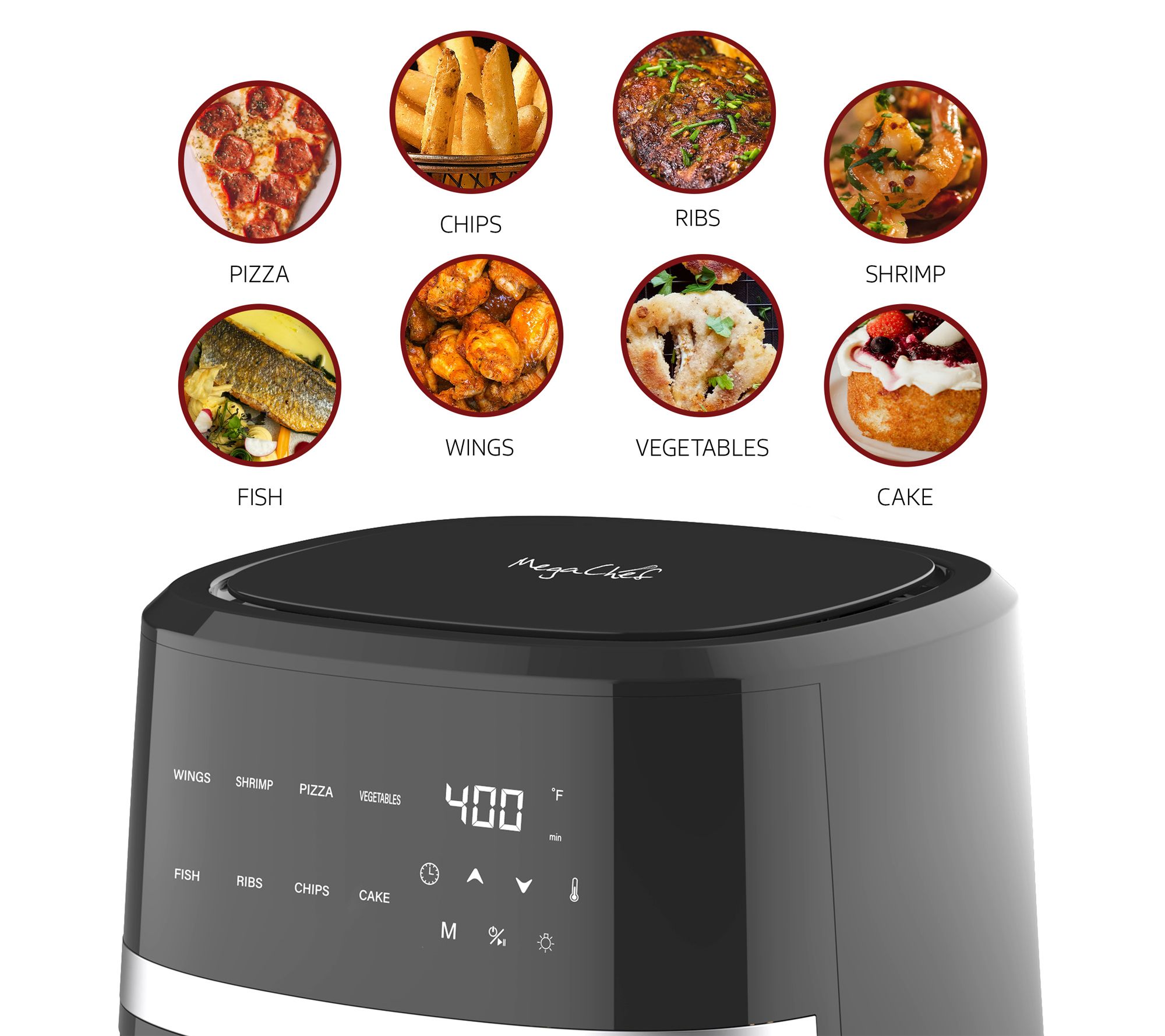 Whip up crispy fries, juicy chicken, and roasted veggies with ease in this 4-qt digital air fryer, designed for flavorful results using little to no oil. The LED display and transparent viewing window make mealtime a breeze, while dishwasher-safe parts and included paper liners mean less mess and more time to enjoy with family. From MegaChef.