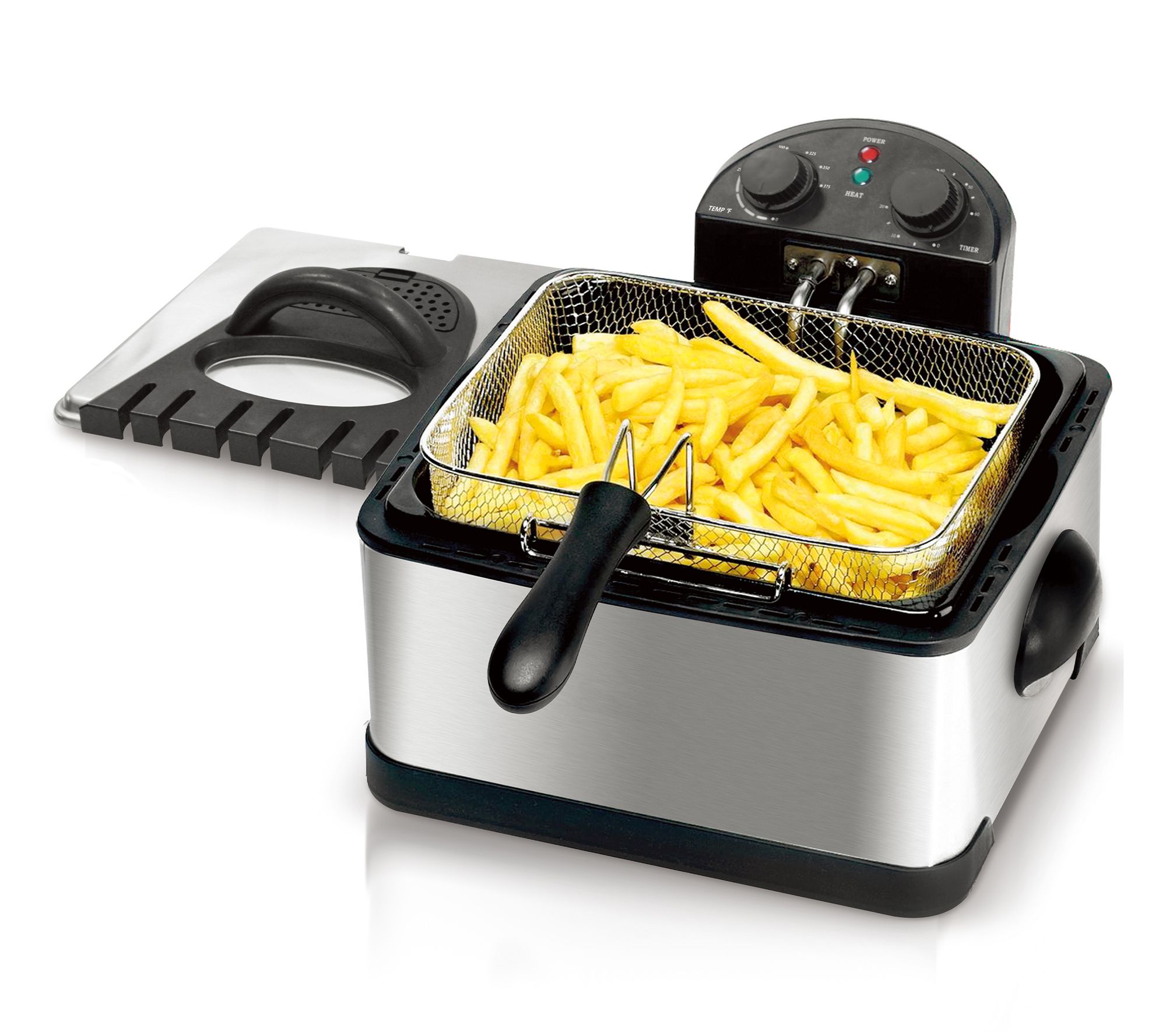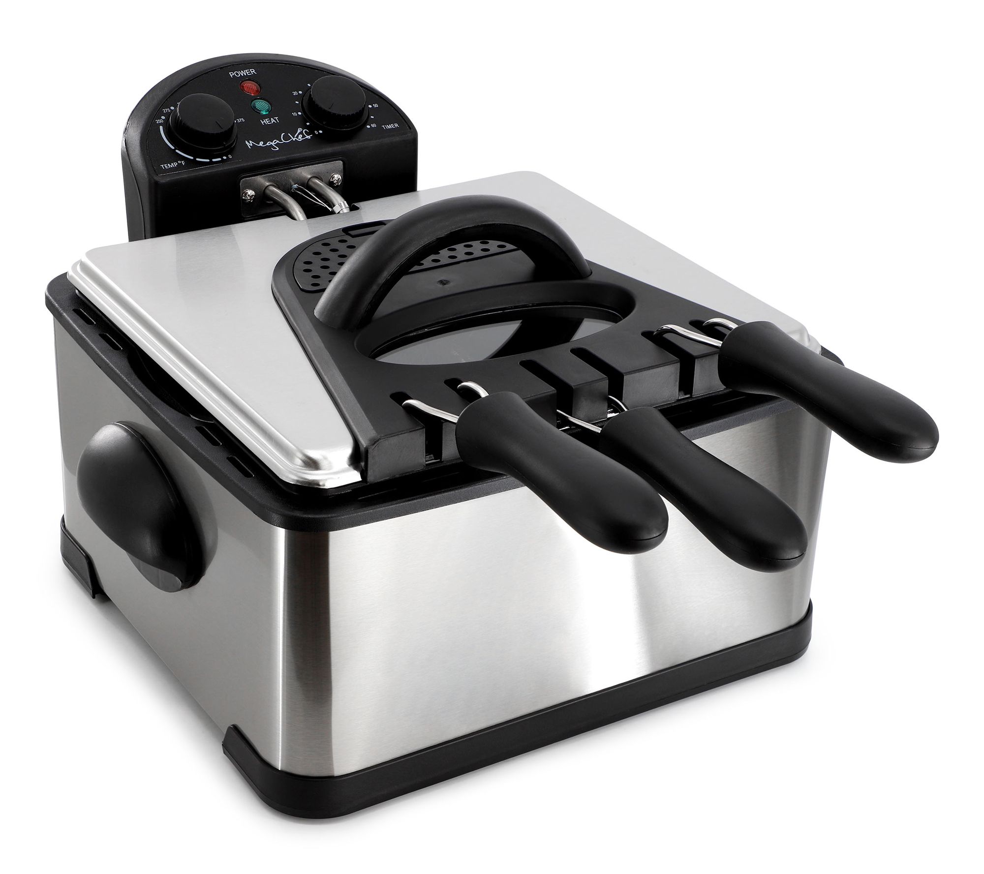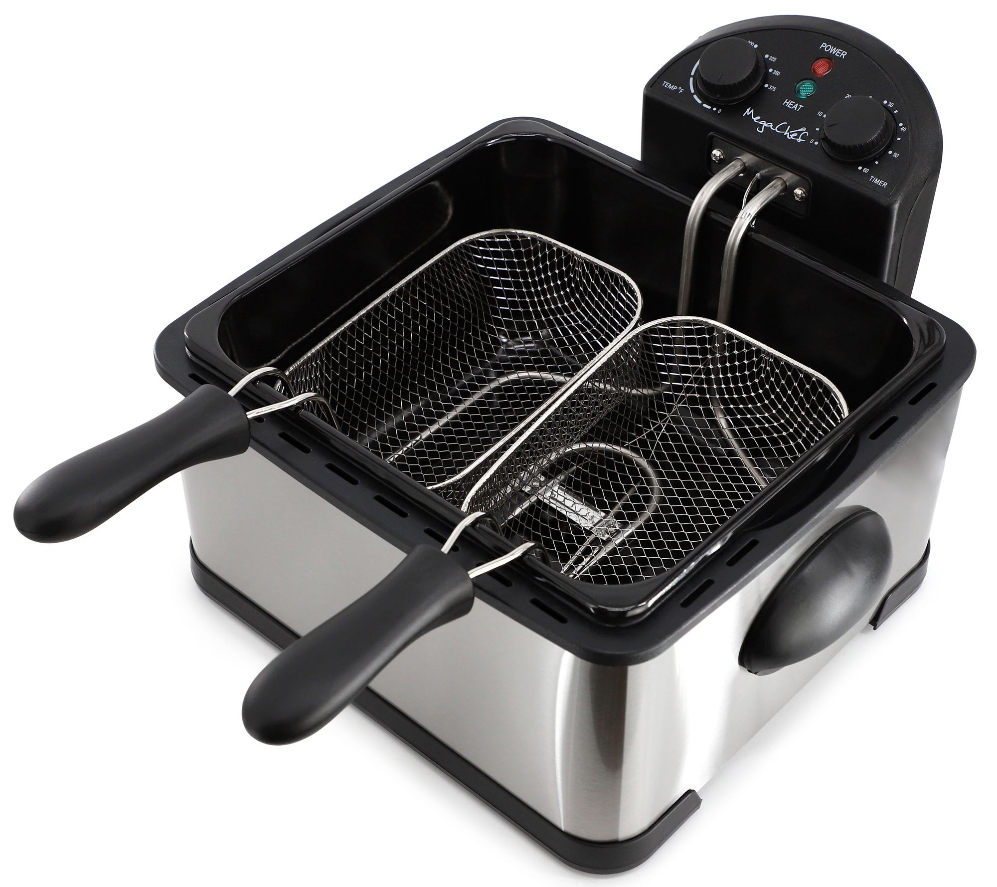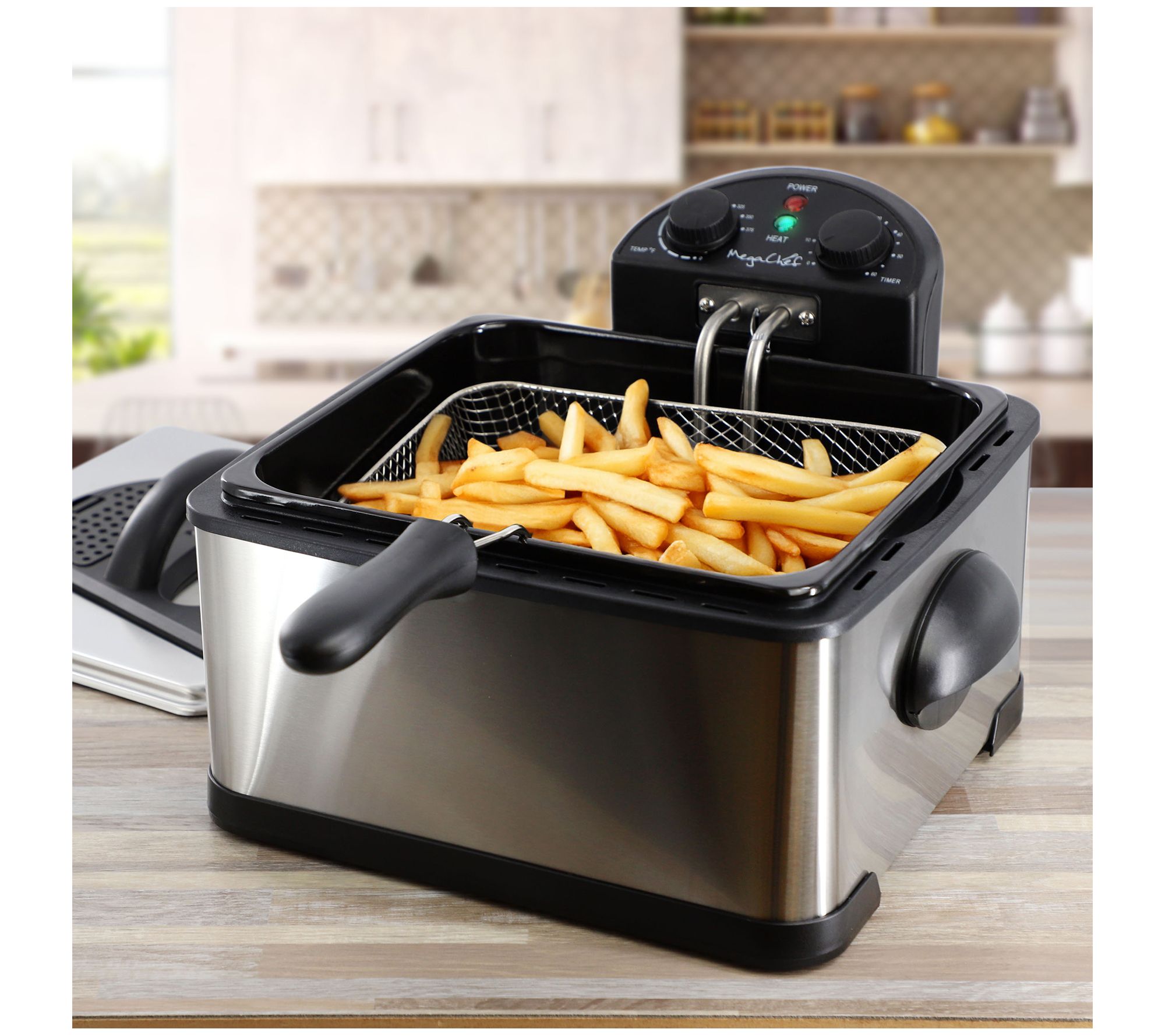Avoid the splatter and spills of hot oil with the MegaChef 4-quart stainless steel electric deep fryer. Conveniently sized, this handy kitchen appliance is perfect for preparing all your favorite fried foods and treats. Temperature control and timer knobs ensure precise frying temperatures, giving you flavorful and crispy foods quickly and efficiently. From MegaChef.