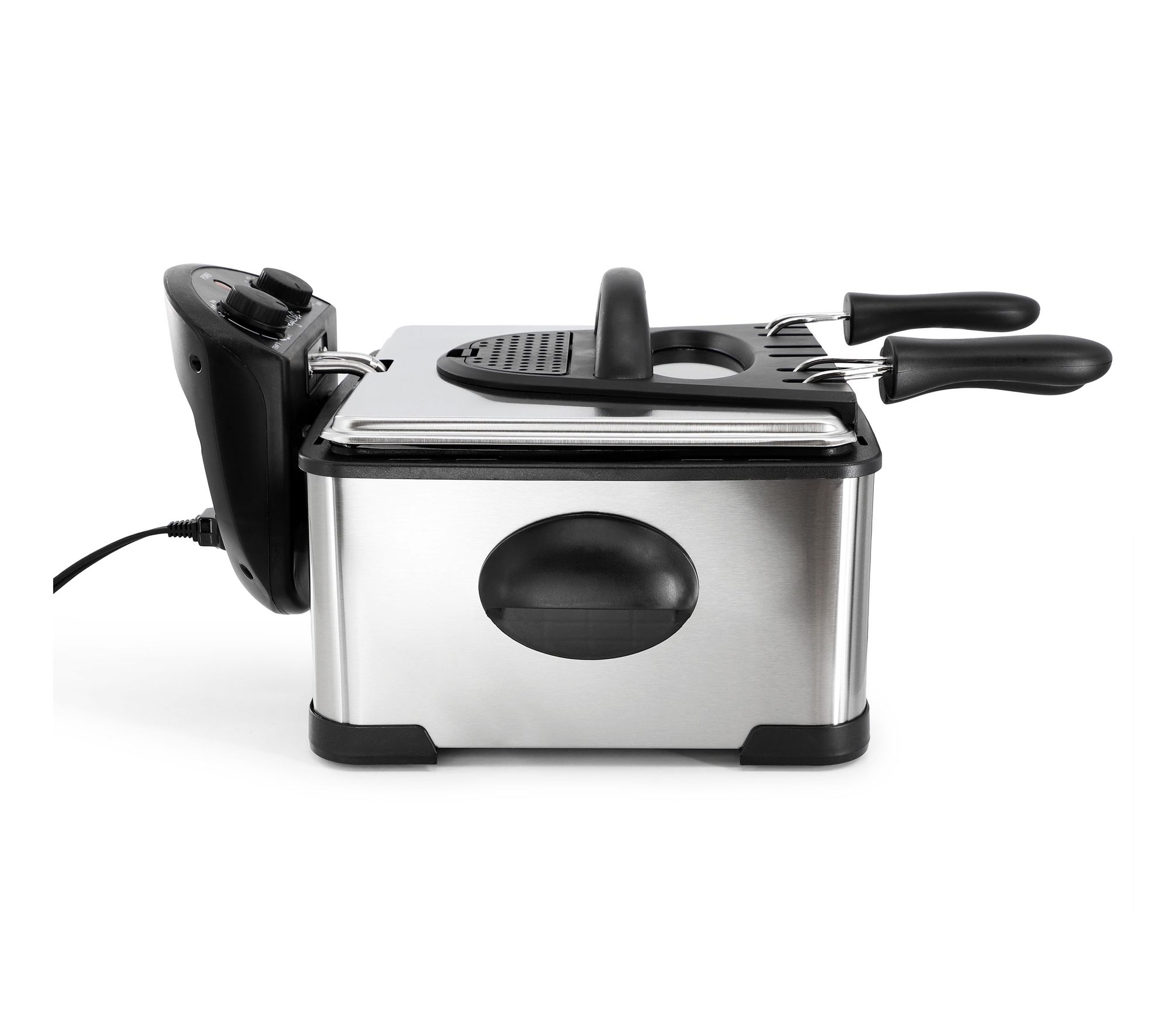 • Includes frying machine, heating element, aluminum oil tank, large fry basket, two small fry baskets, lid, and user manual