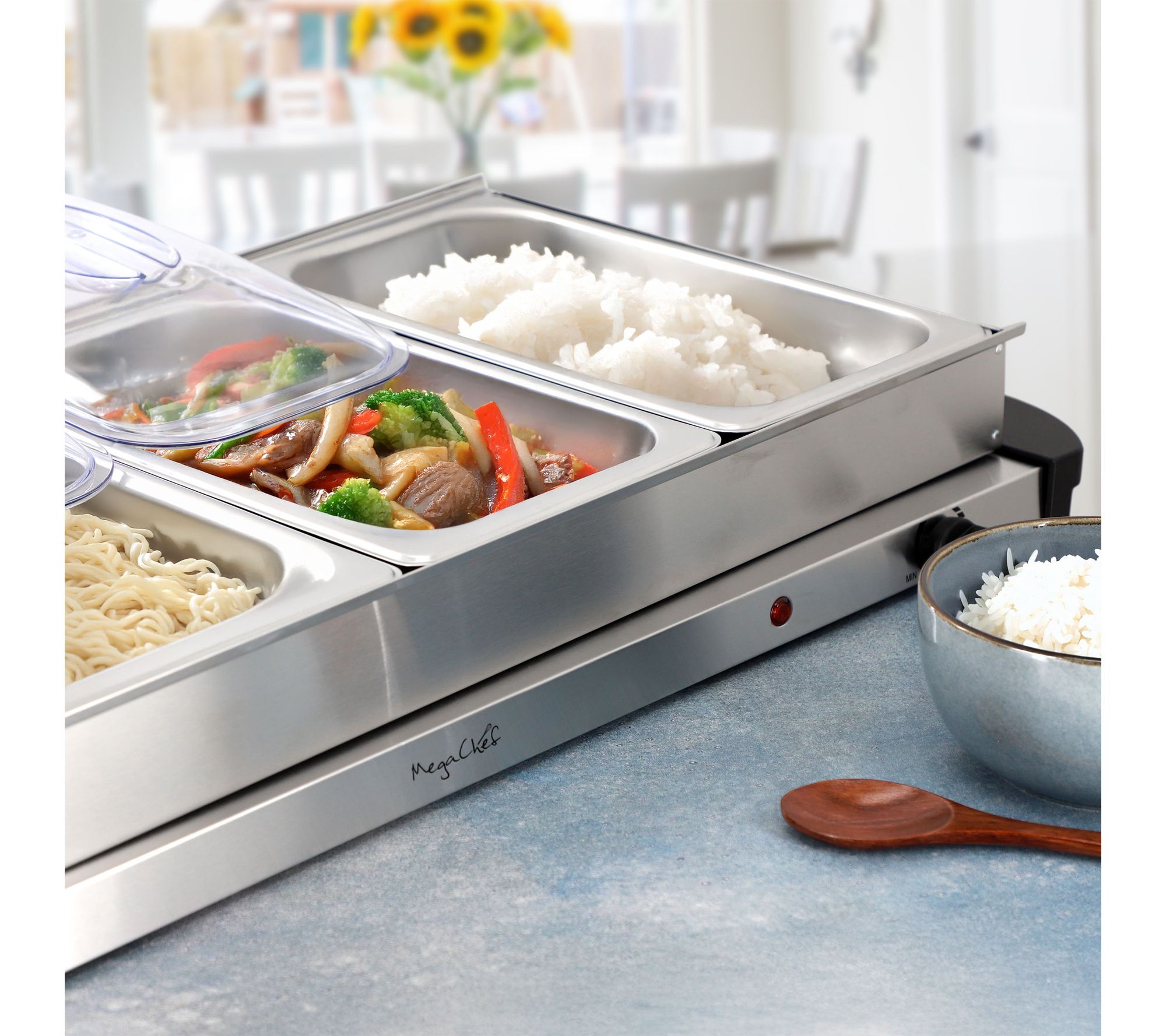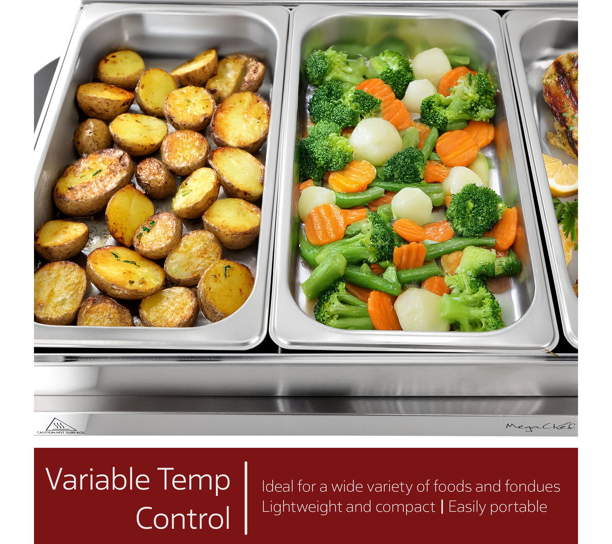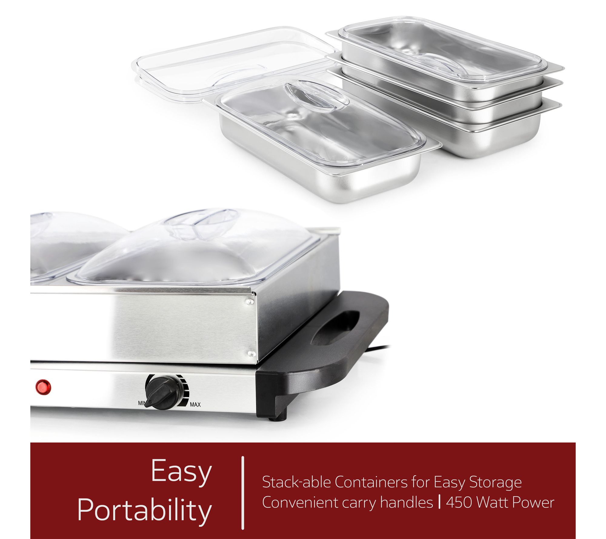 • Heated warming tray for sauces, appetizers, and more