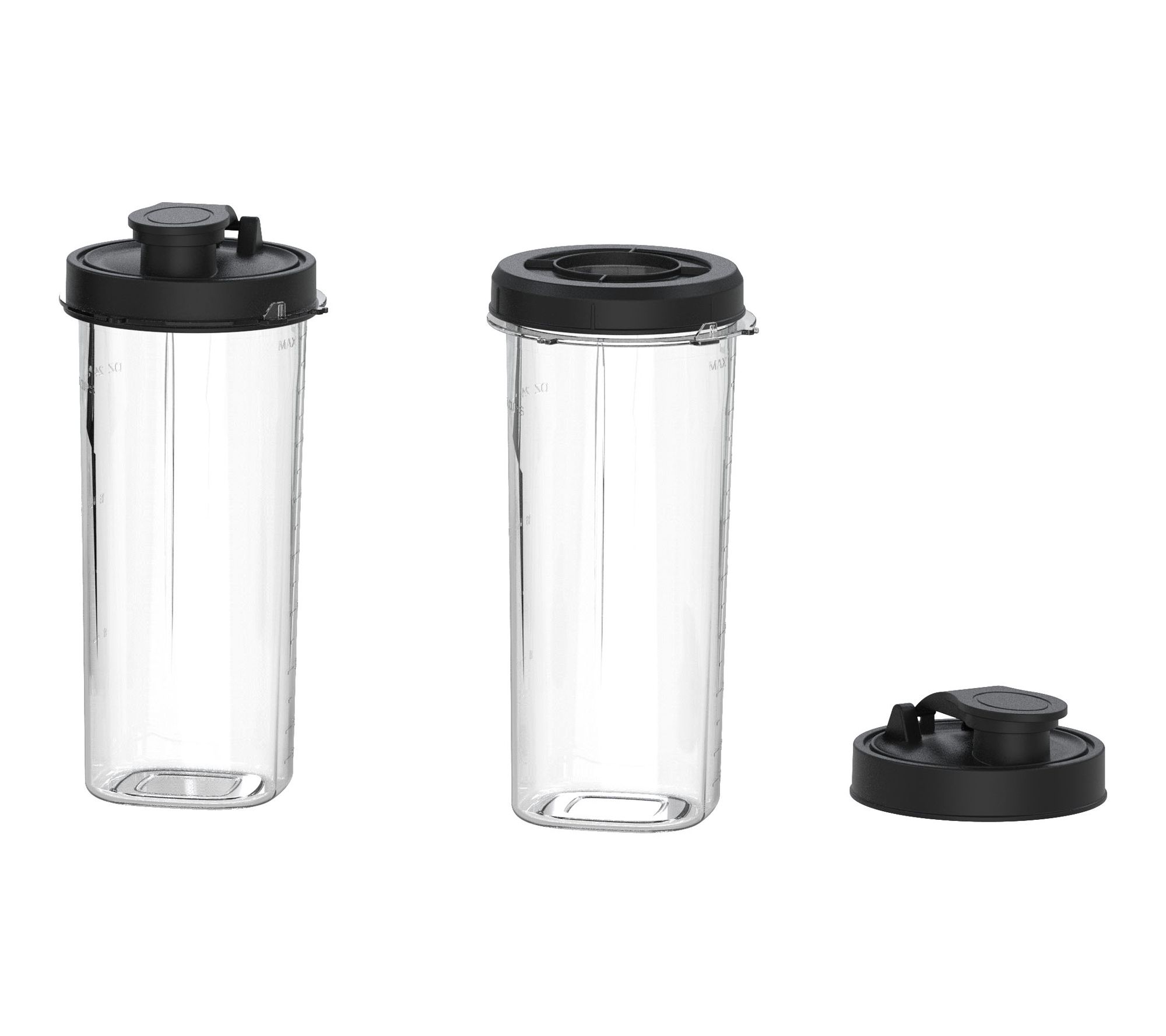 • Includes blender base, 8-cup plastic blender jar and lid with fill cup and blade, two 3-cup plastic to-go cups and two lids with blade, 7-cup plastic food processor jar and feed chute lid with pusher and blade, slicing/shredding disc, tamper, user manual, and warranty card