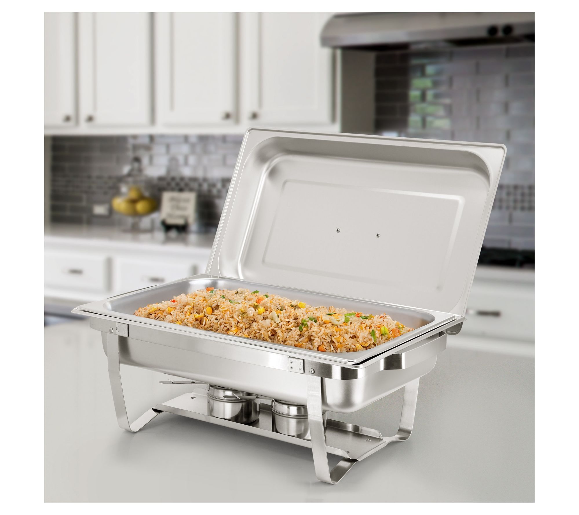 • Includes chafing dish, base, lid, foldable stand, and two fuel holders