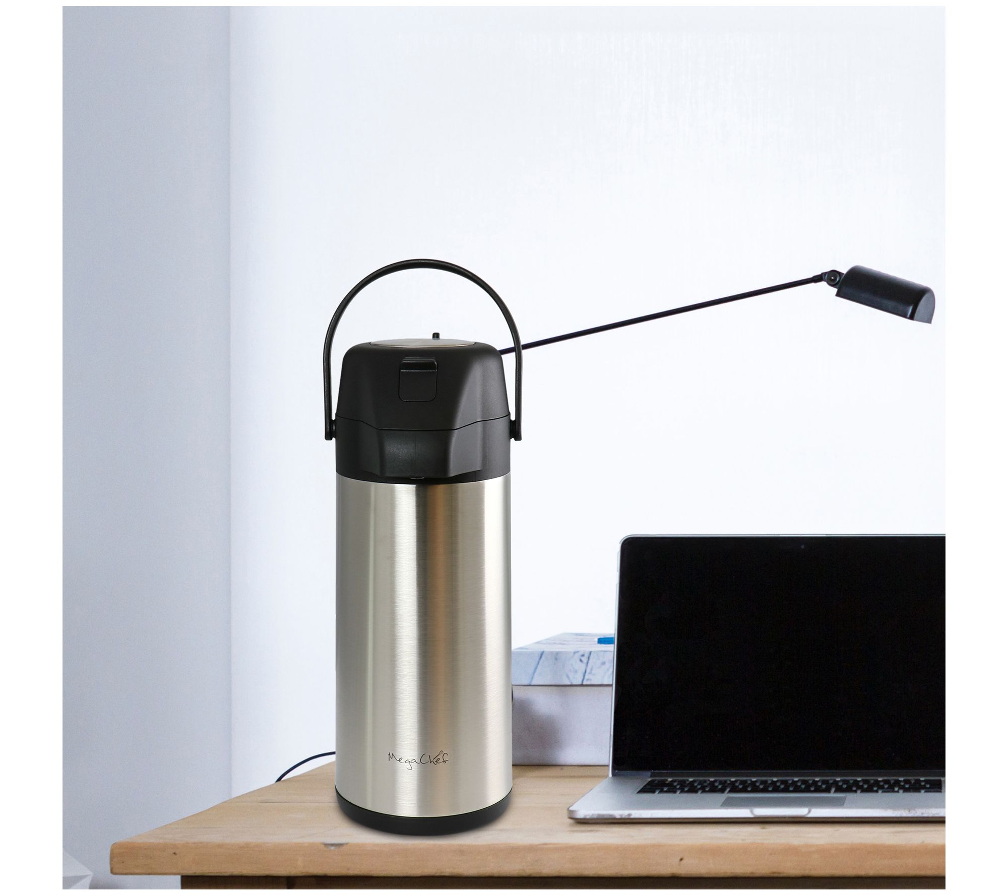 Upgrade your beverage area with this insulated air pot, featuring a swivel base that makes it easy to serve piping hot coffee, tea, or cocoa. From MegaChef.