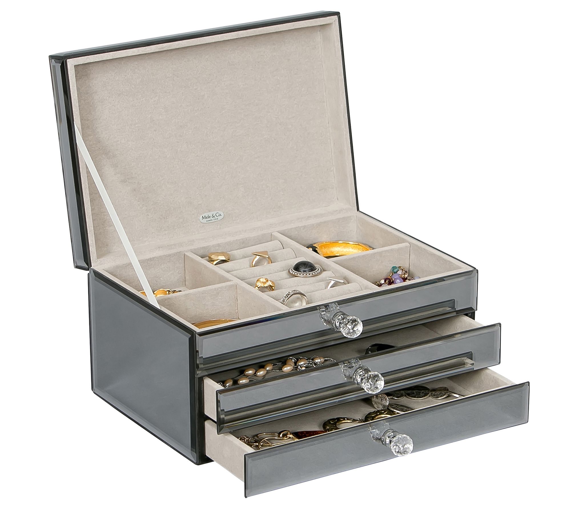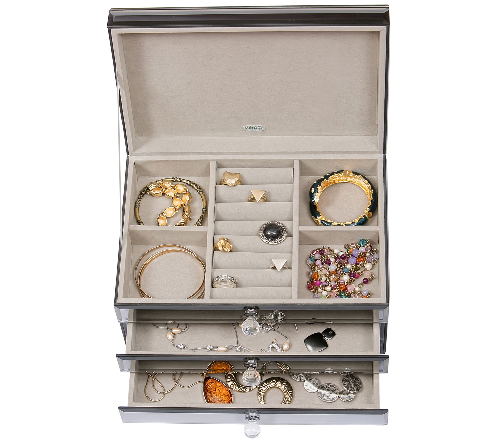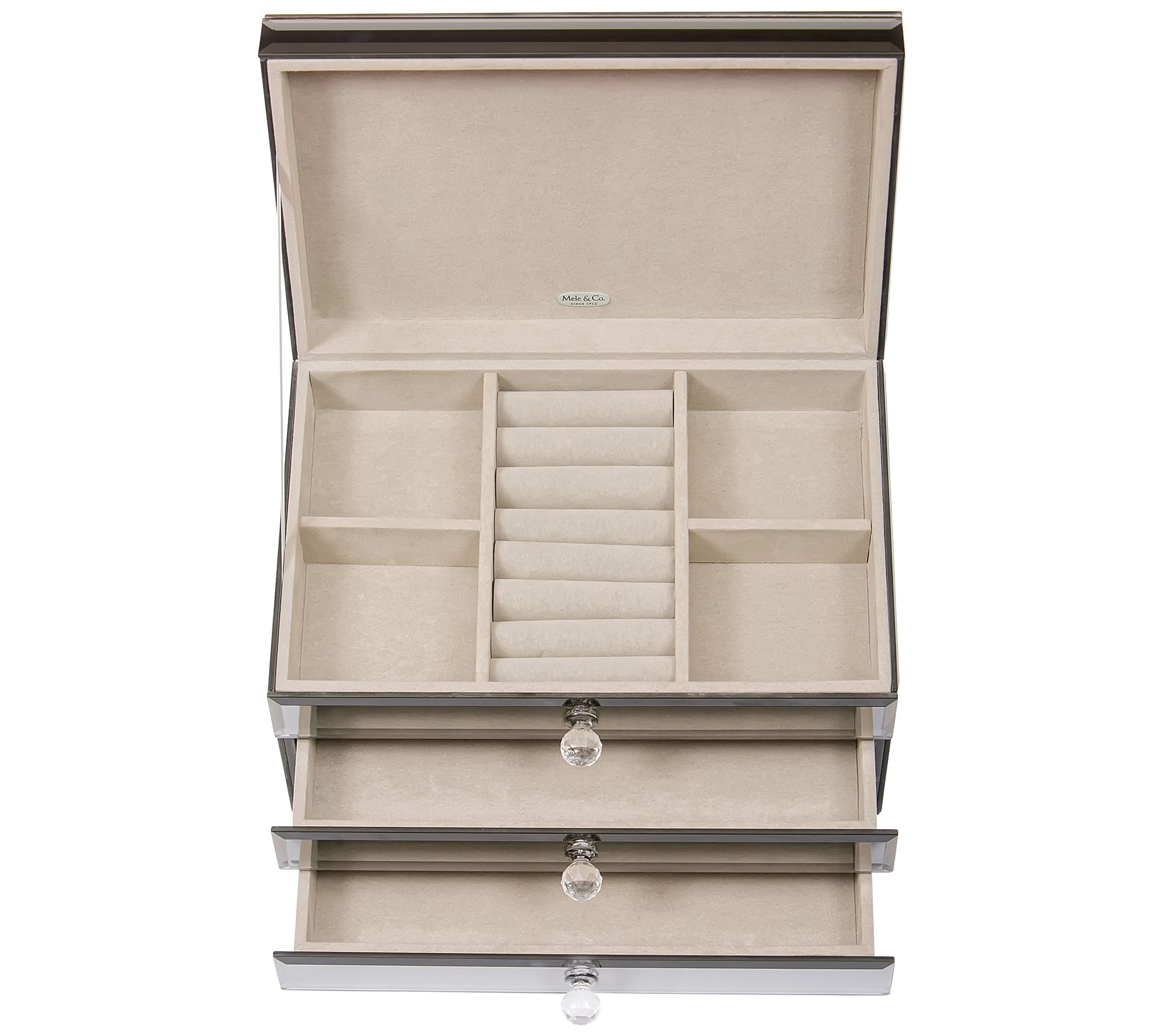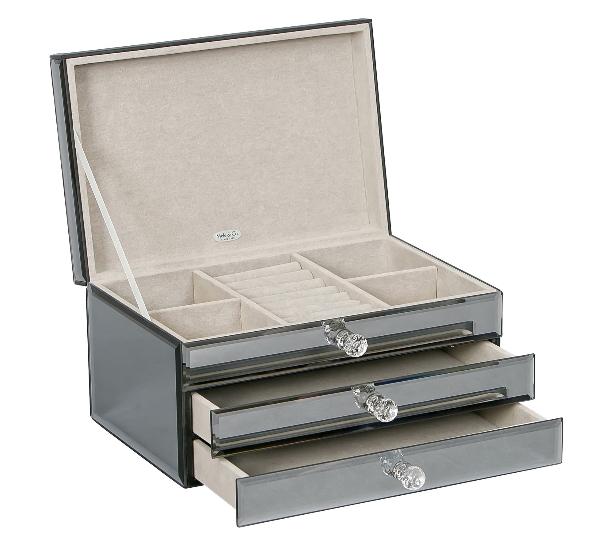 Give your treasured collection a stylish space to call home with this jewelry box. From Mele & Co.