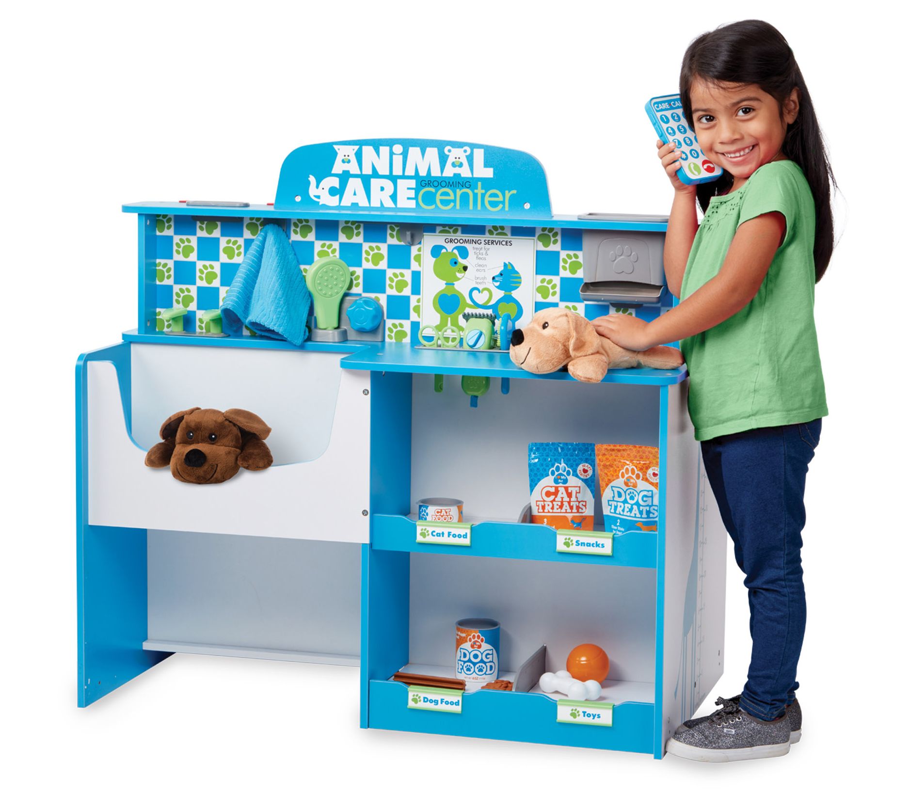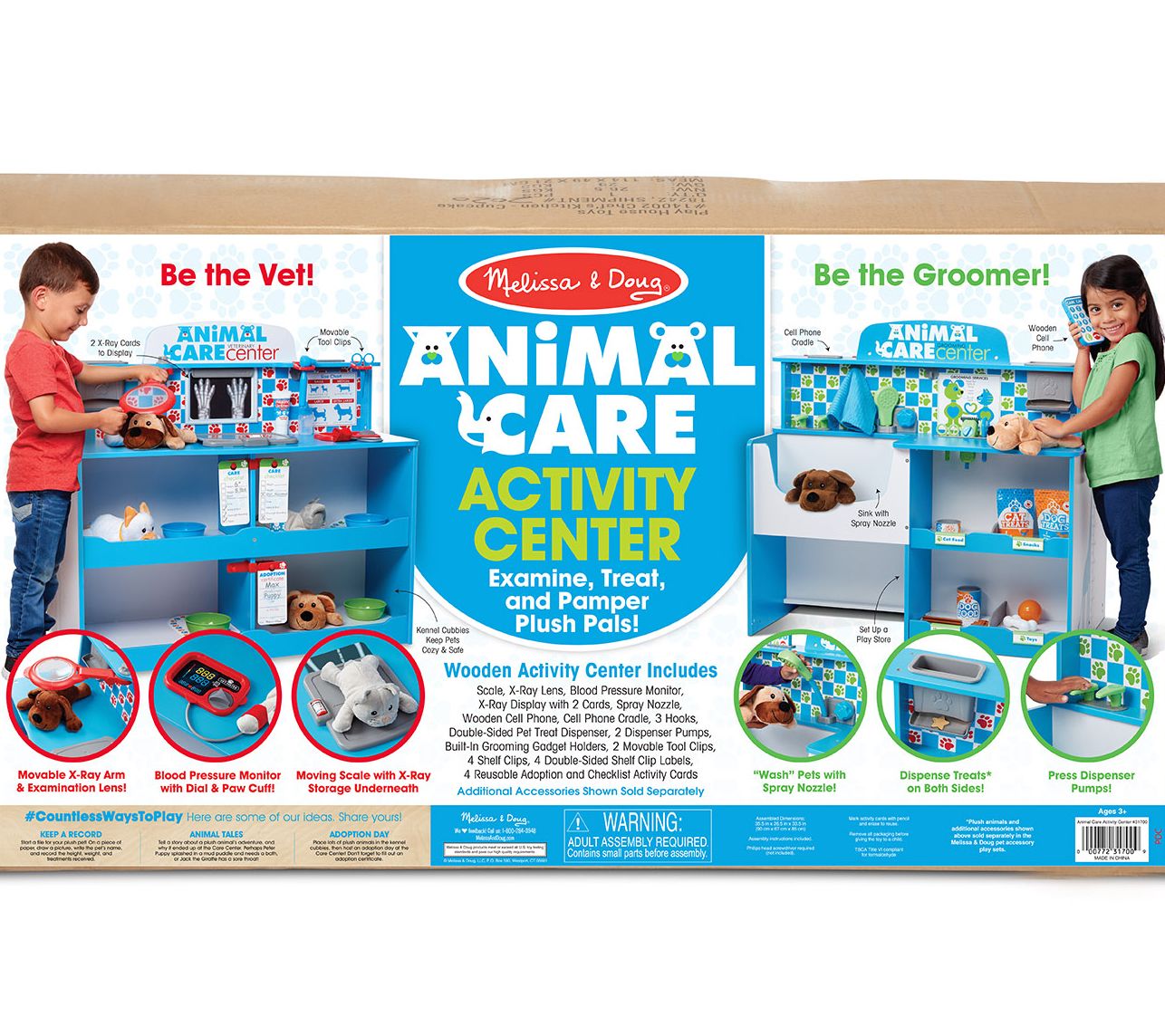 When furry friends need some tender, loving care, this activity center is the perfect place to go. Kids can examine, treat, and pamper their plush pets for hours of imaginative fun. From Melissa & Doug.