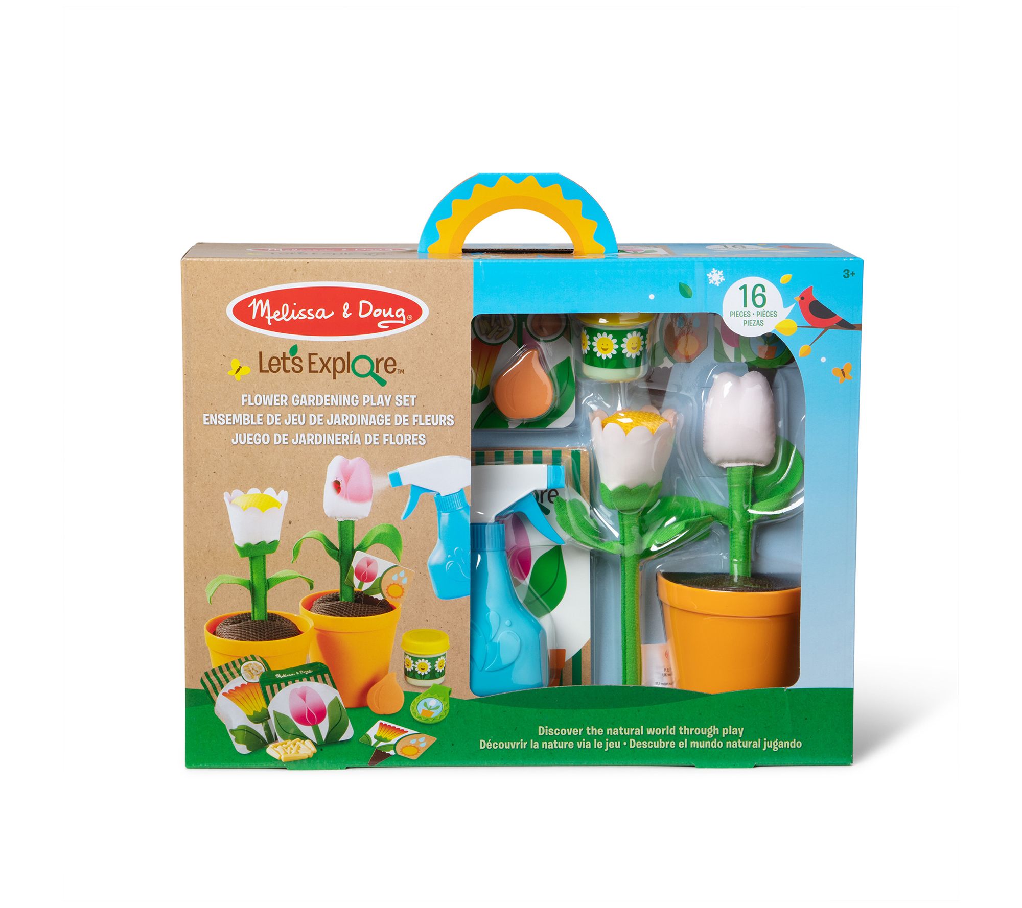 Budding horticulturists can learn their craft with this flower gardening play set featuring faux flowers that change color when sprayed with water. From Melissa & Doug.