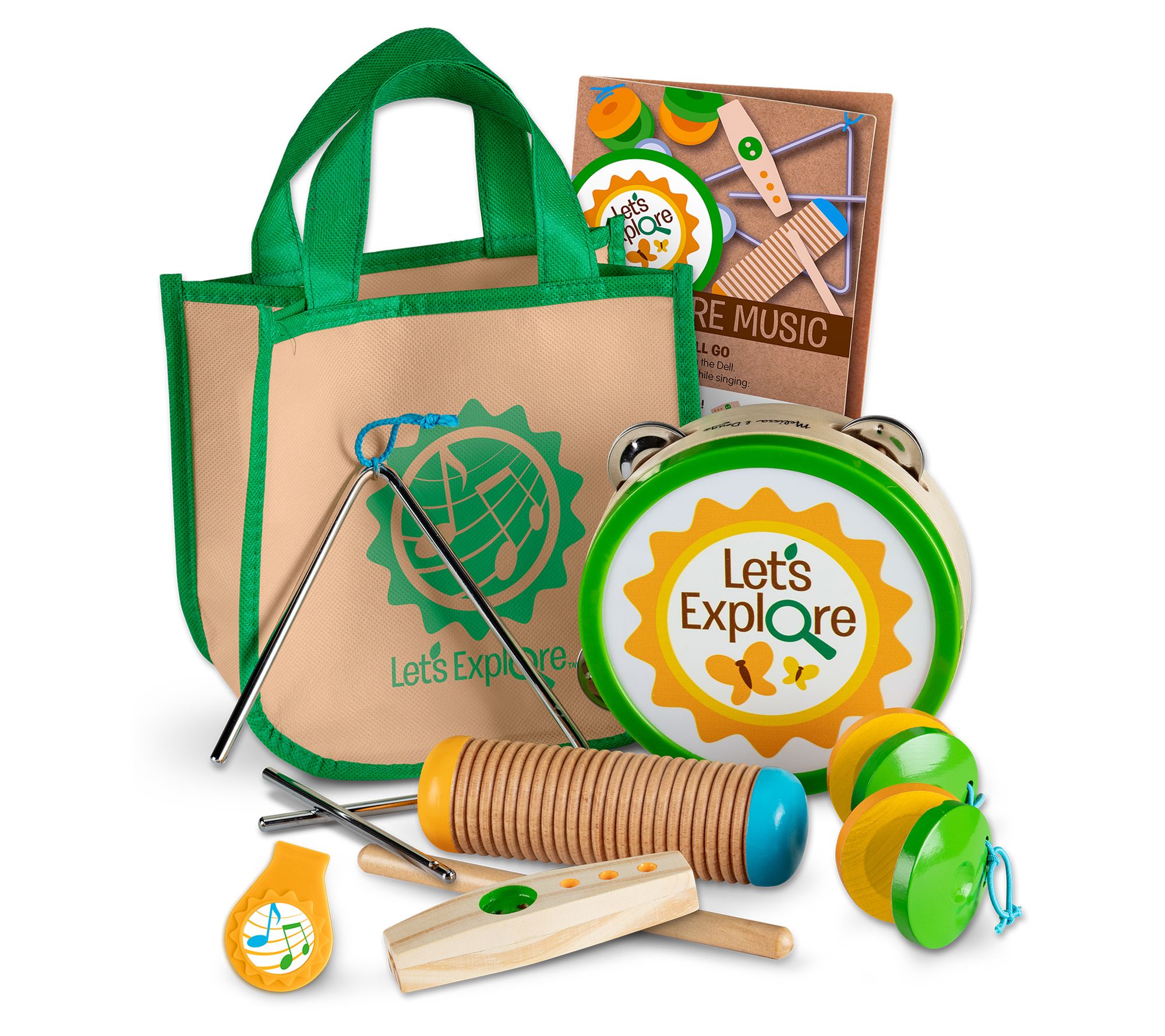 Kids will love to shake, scrape, clack, hum, and ring the musical instruments in this Camp Music Play Set. Perfect for playing around a real or imaginary campfire, this set encourages youngsters to connect with the outdoors through imaginative play. From Melissa & Doug.