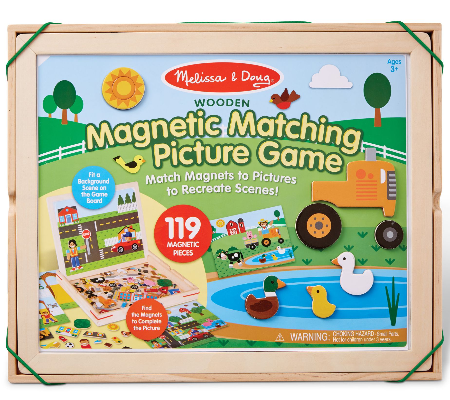Who says learning can't be fun? Let your budding artist practice their fine motor, matching, color recognition, and problem-solving skills while having a blast with this magnetic picture-matching game. It comes with a handy carrying case that's perfect for travel. From Melissa & Doug.