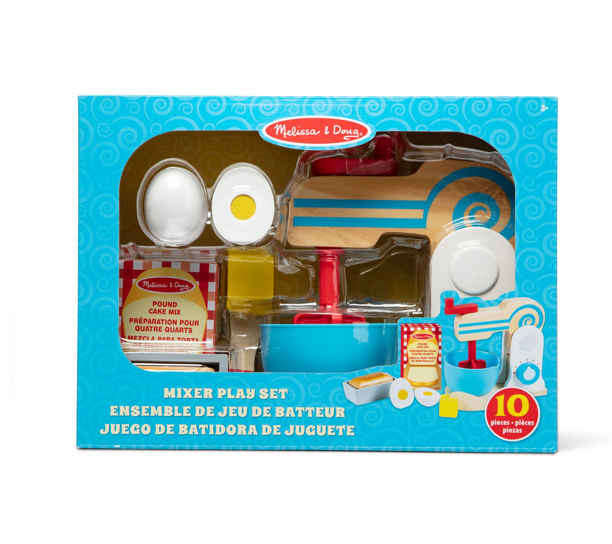 Little chefs love whipping up delicious pretend food with this play mixer set that features dials that rotate, a crank to turn the mixing bowl, and a variety of foods and accessories for hours of make-believe fun. From Melissa & Doug.