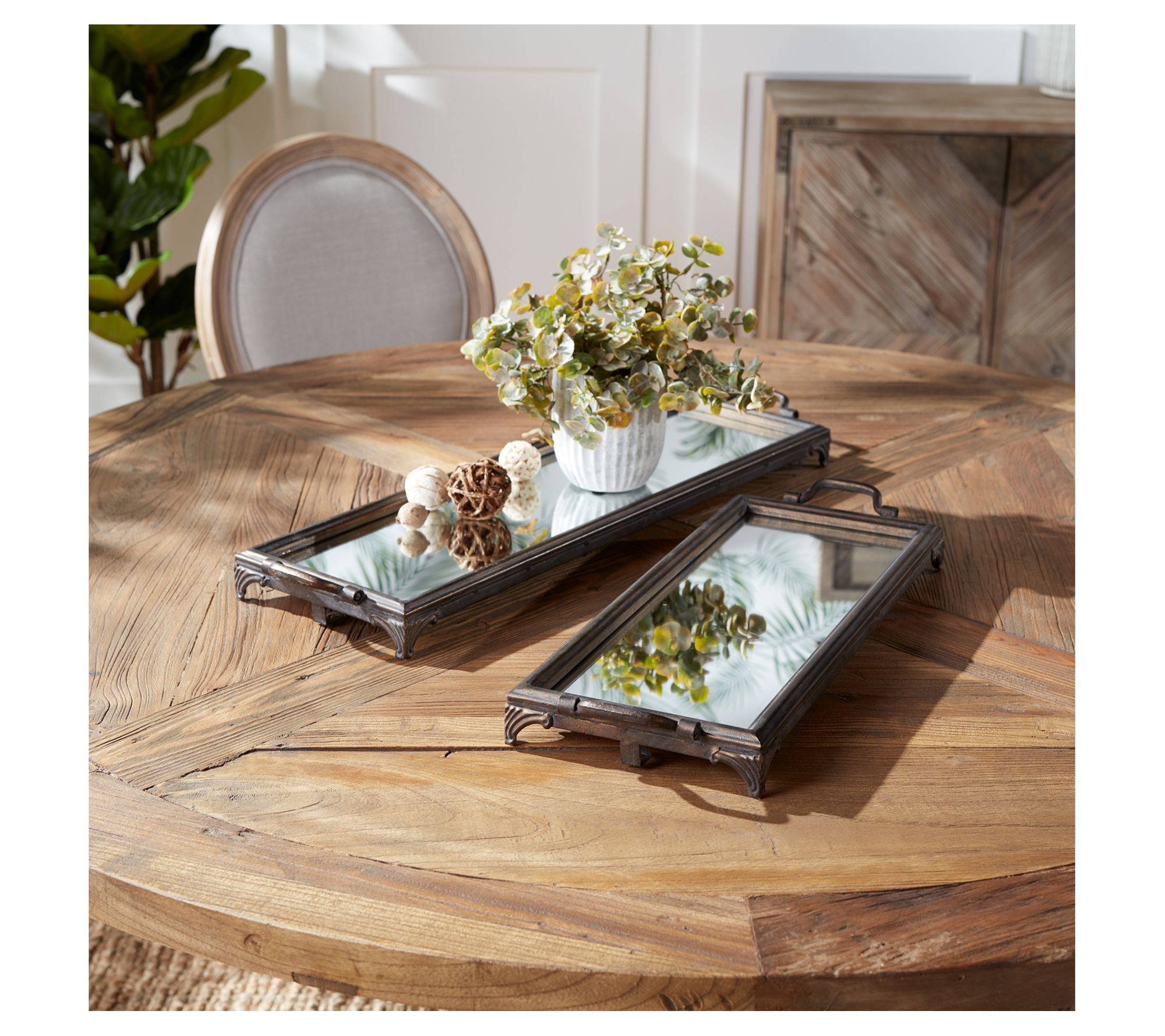 Bring organization and style to any room with this set of two mirrored trays designed to bring both practicality and beauty to your decor. From Melrose International.