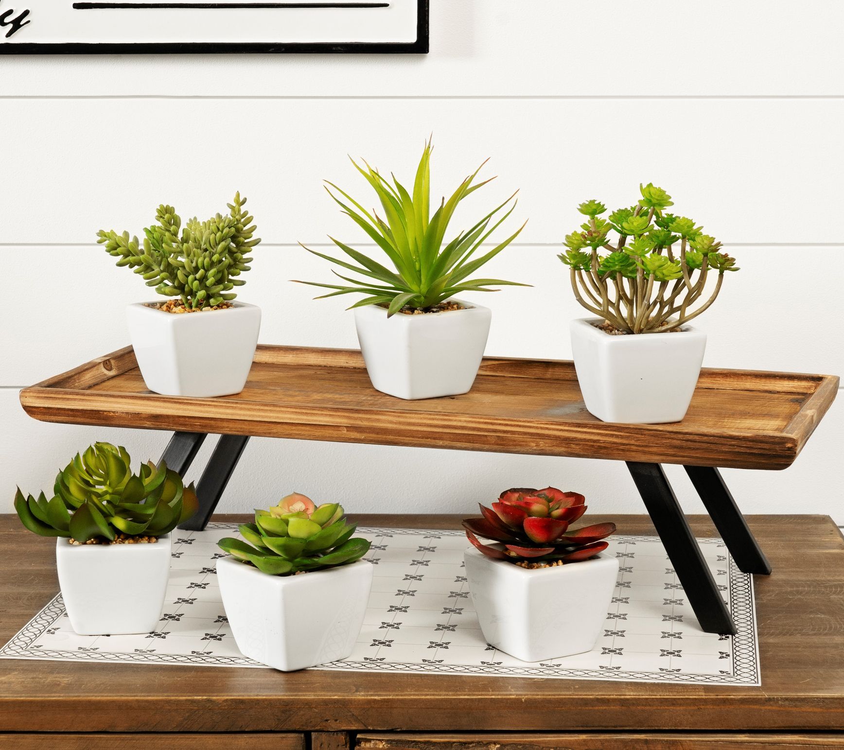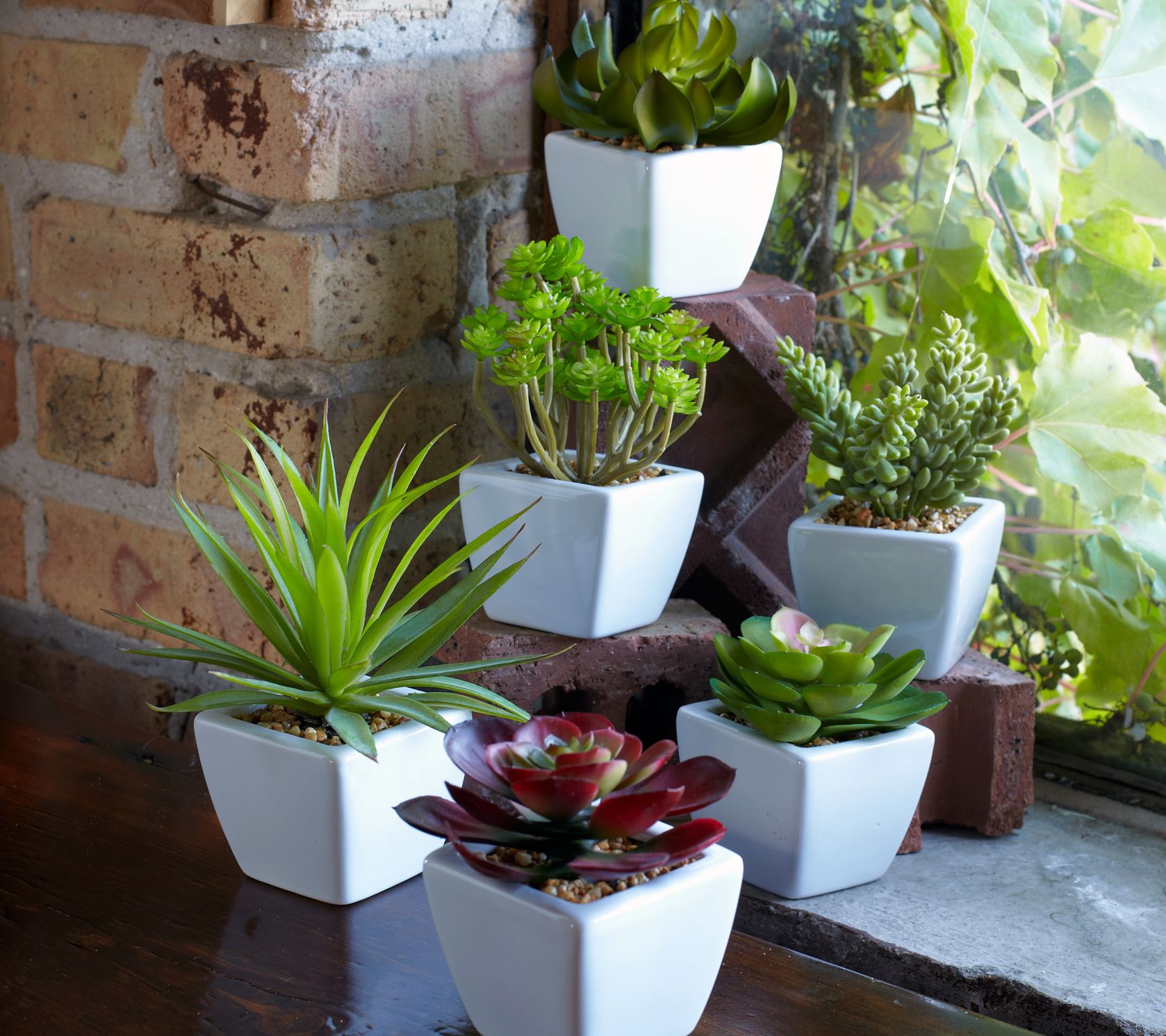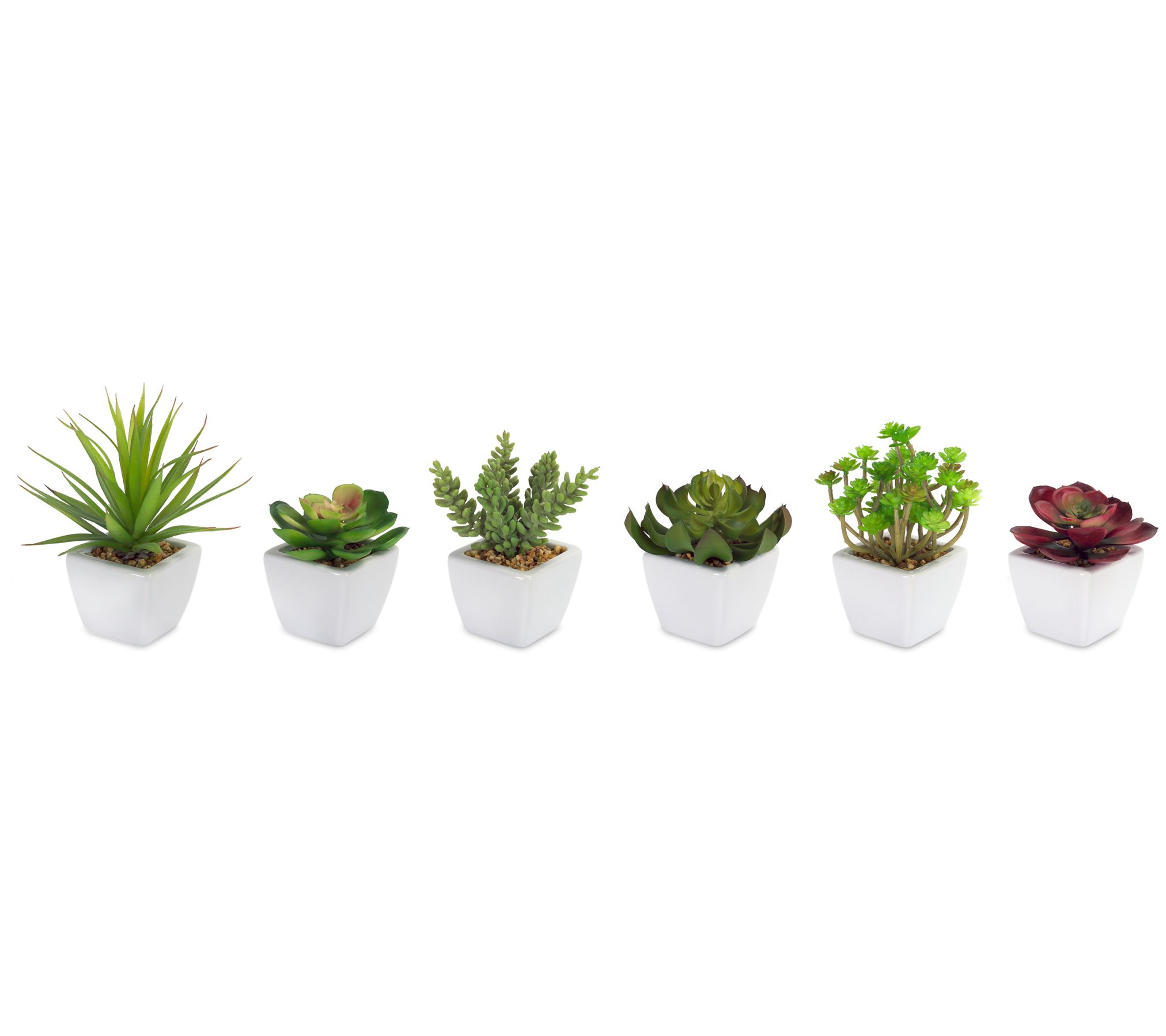 • Includes six potted succulents