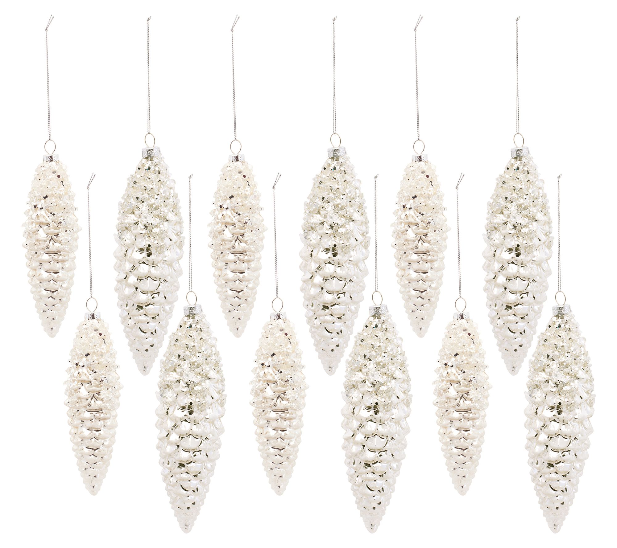 • Includes 12 frosted pinecone drop ornaments