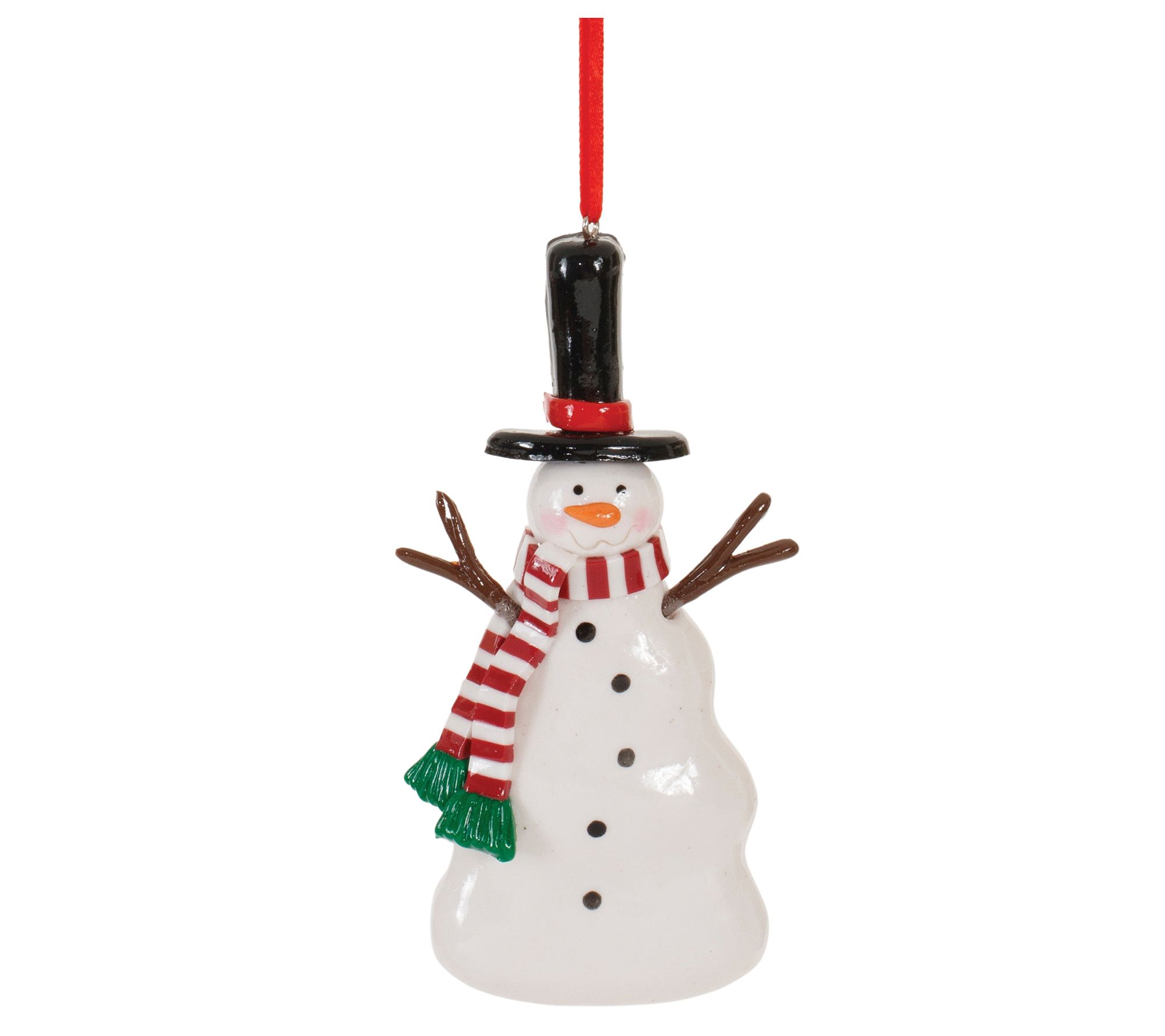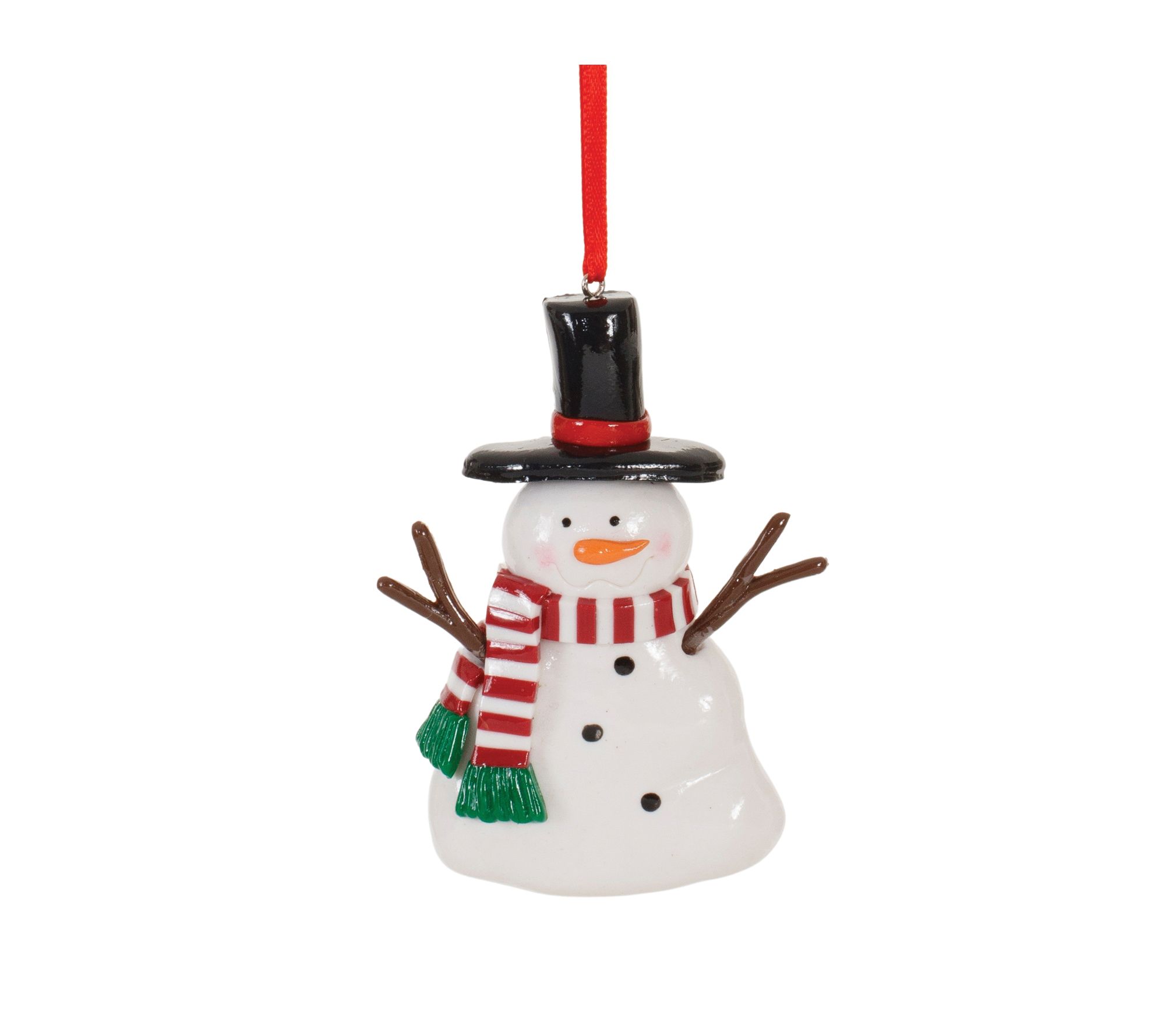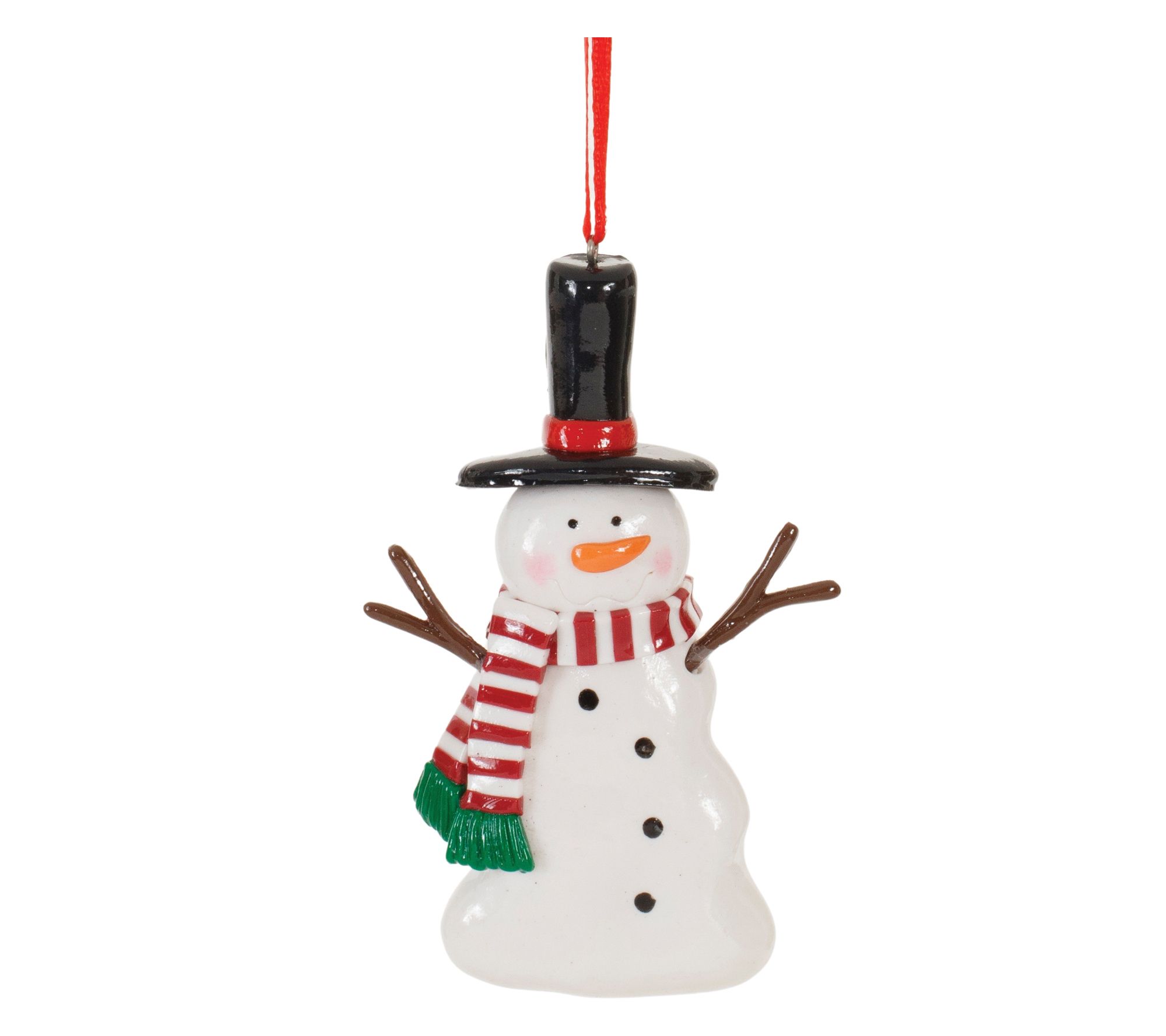 Add a whimsical touch to your Christmas tree with this delightful set of snowman ornaments. Featuring three assorted designs, these festive red and white snowmen with scarves and top hats are sure to create a memorable display. From Melrose.