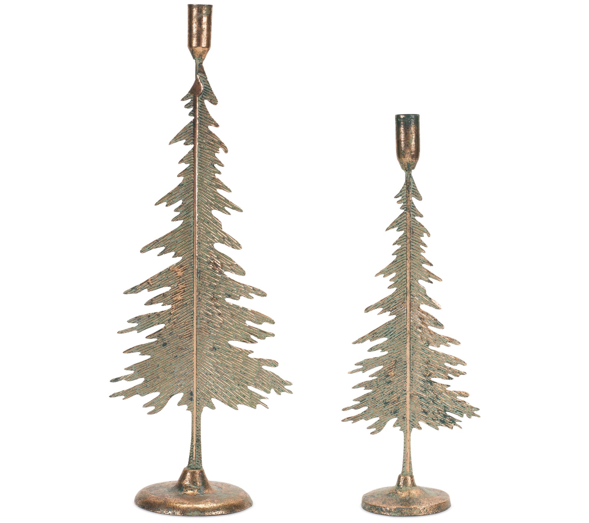 Add tree-mendous holiday style to your space with this set of rustic woodland taper candle holders. From Melrose International.