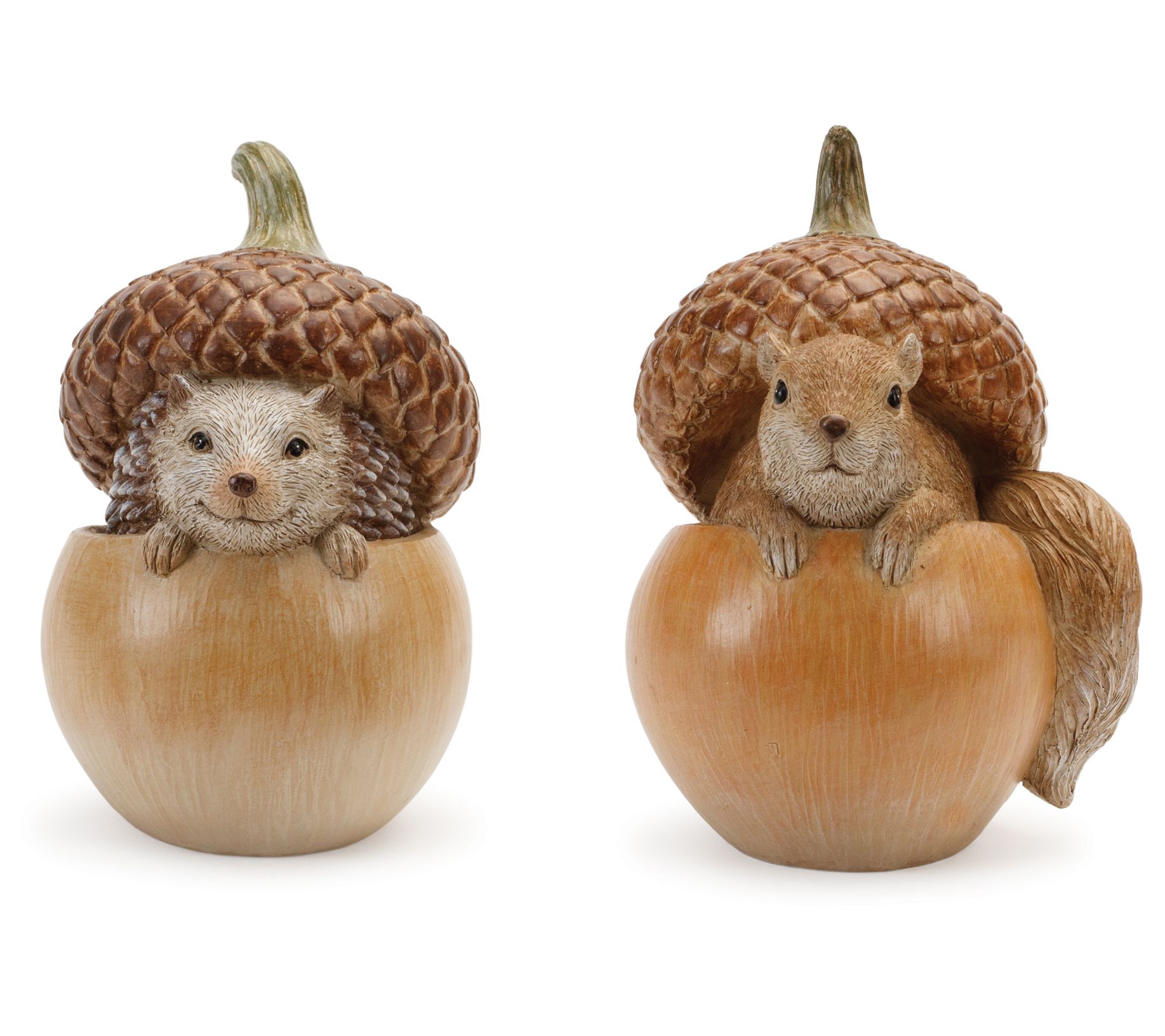 Melrose Fall Squirrel and Hedgehog Acorn Figurine (Set of 2)