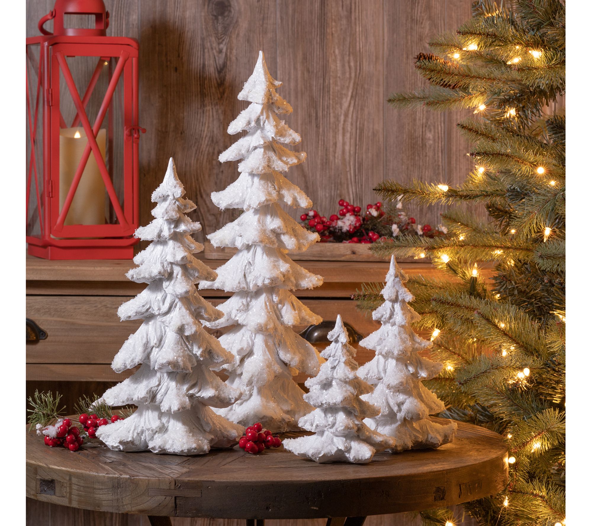 • Includes four flocked pine trees