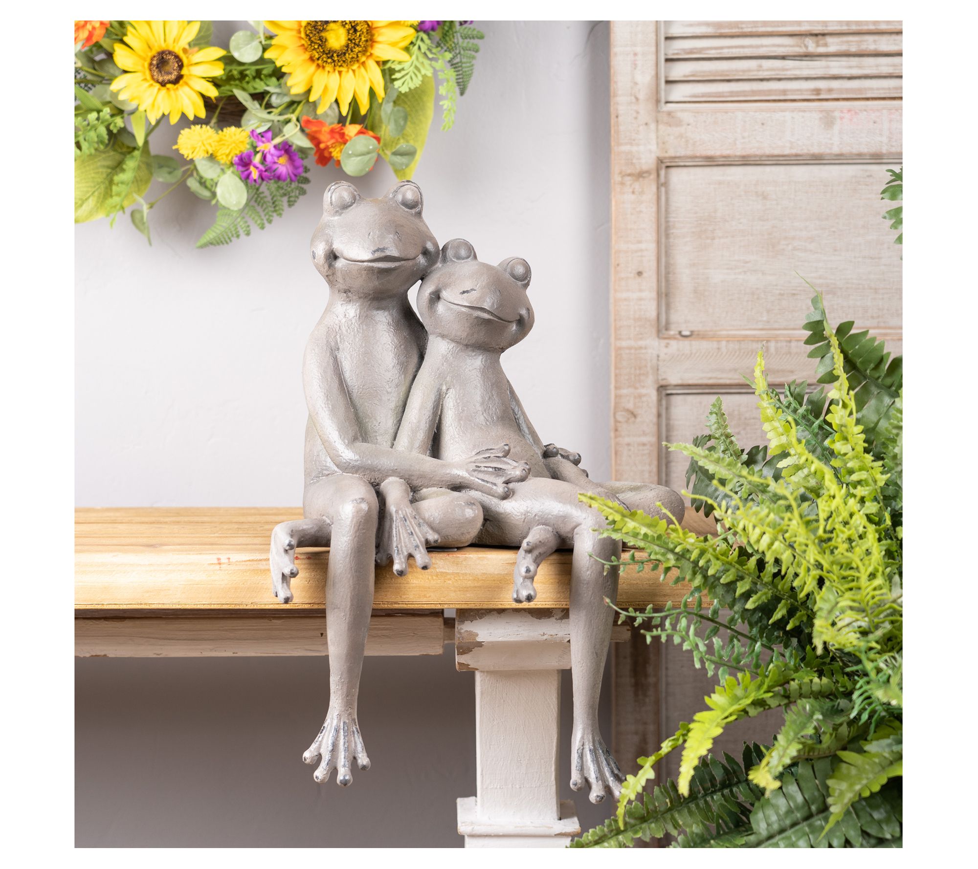 Add a cheerful element to your garden with this decorative statue featuring a cute pair of frogs. From Melrose International.