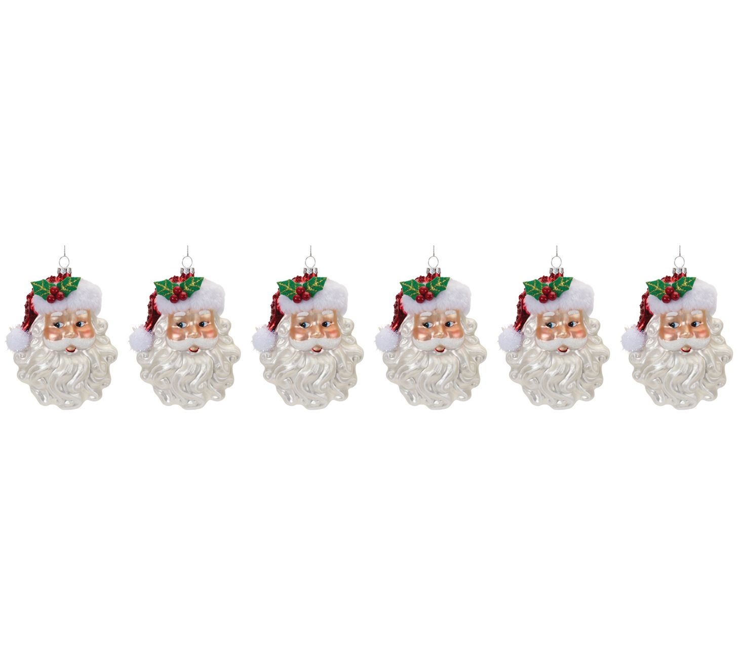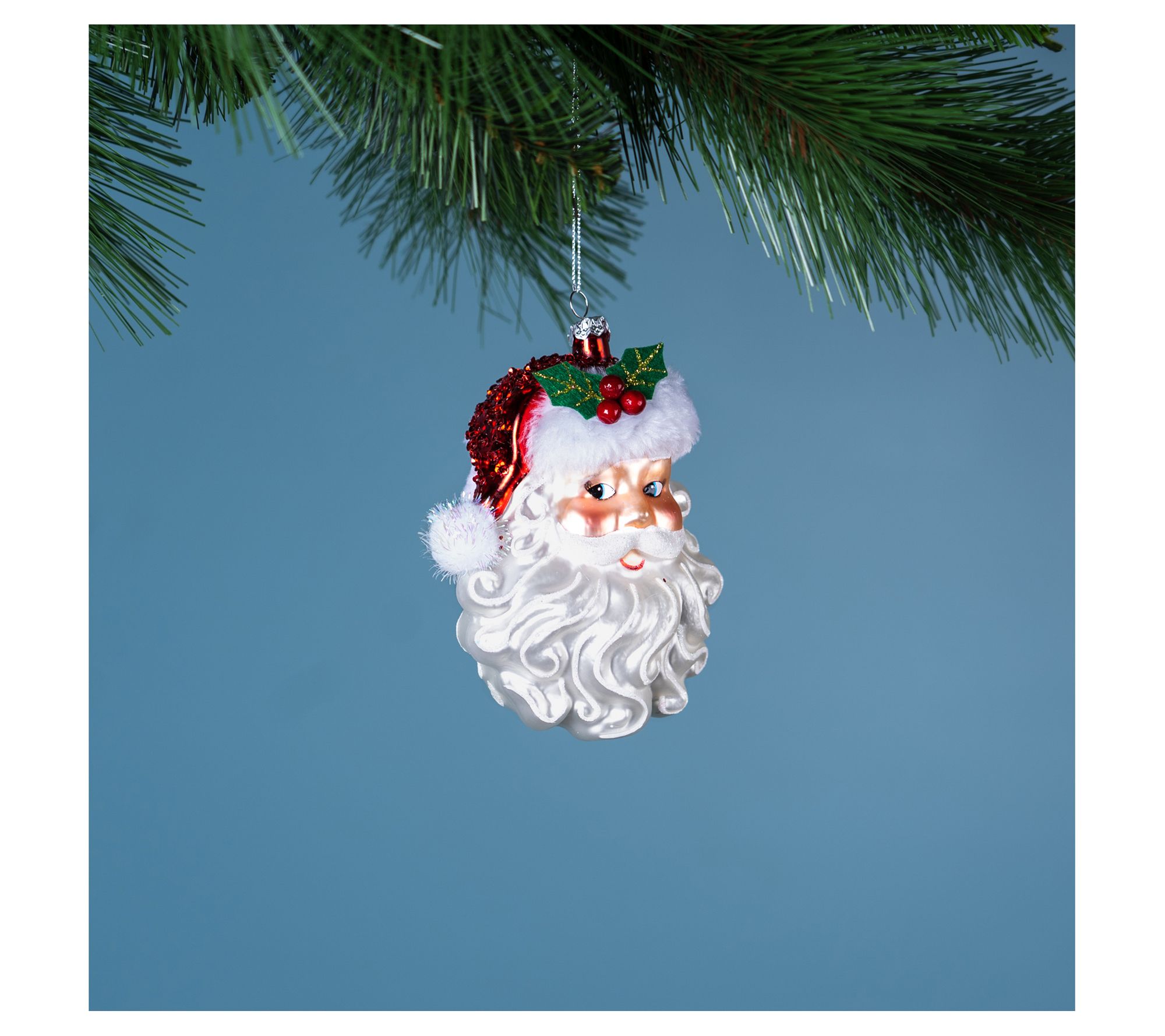 Here comes Santa Claus! These jolly glass ornaments feature a vintage-inspired design and glittery finish to bring sparkle and whimsy to your tree. From Melrose International.