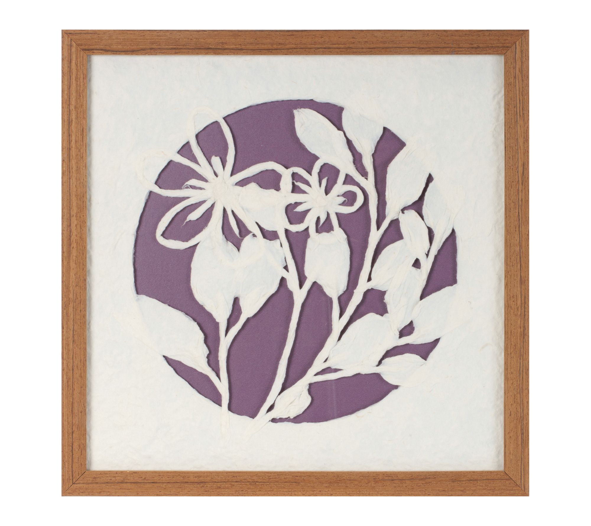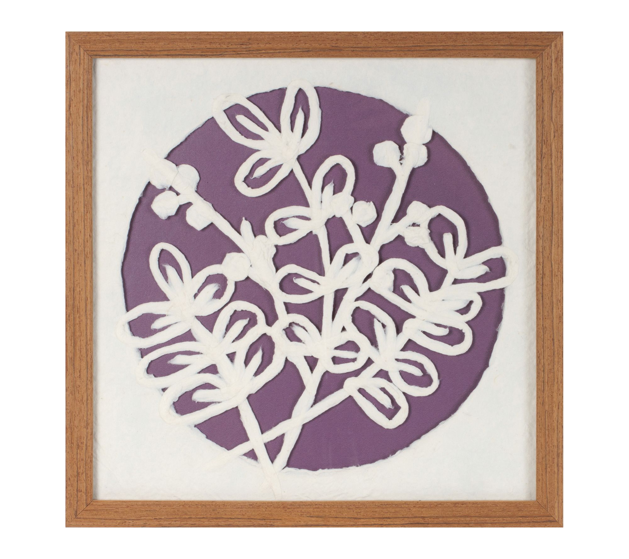 • Features elegant floral art in purple and white hues with paper mache composition