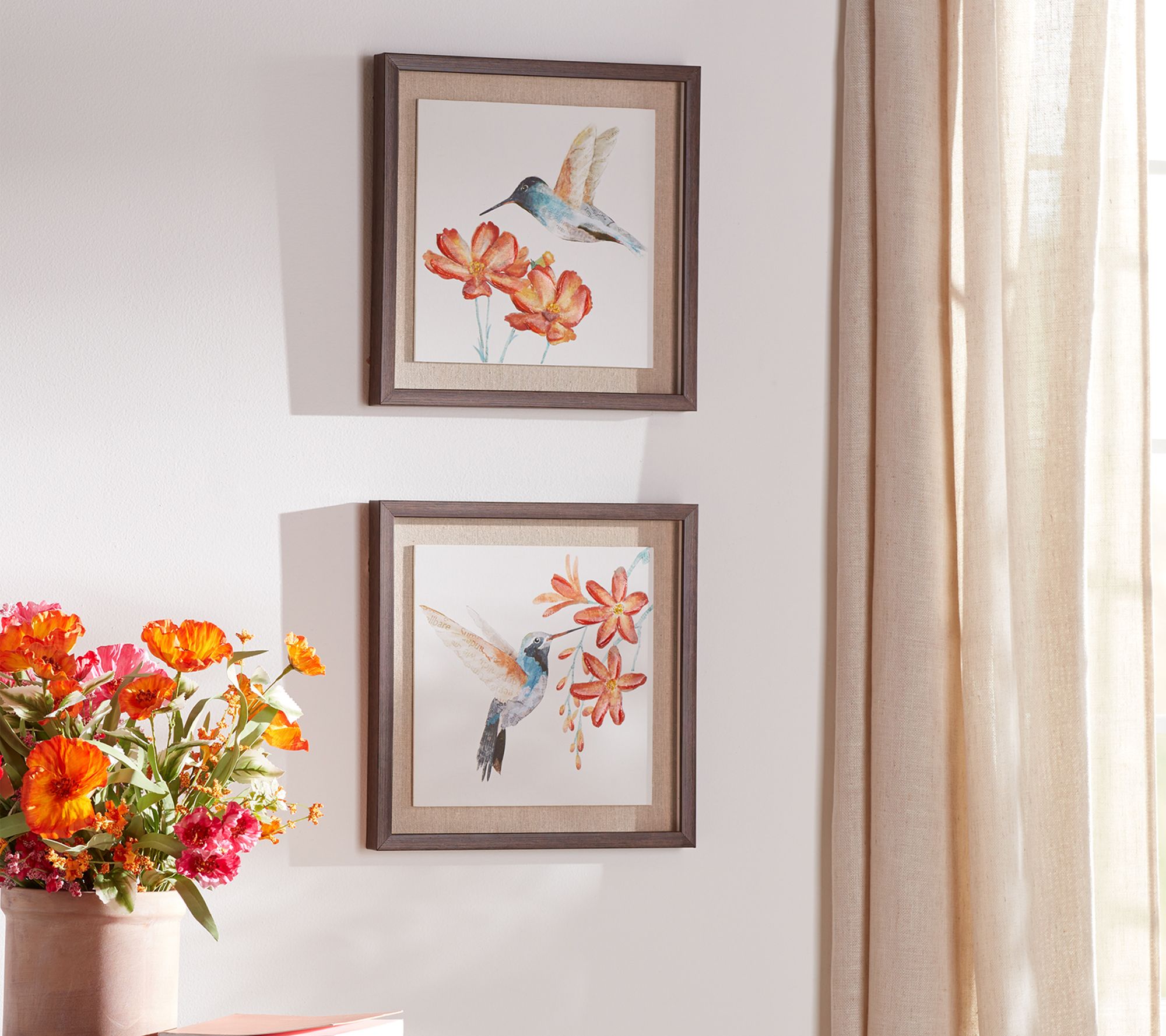 • Includes two framed hummingbird floral prints