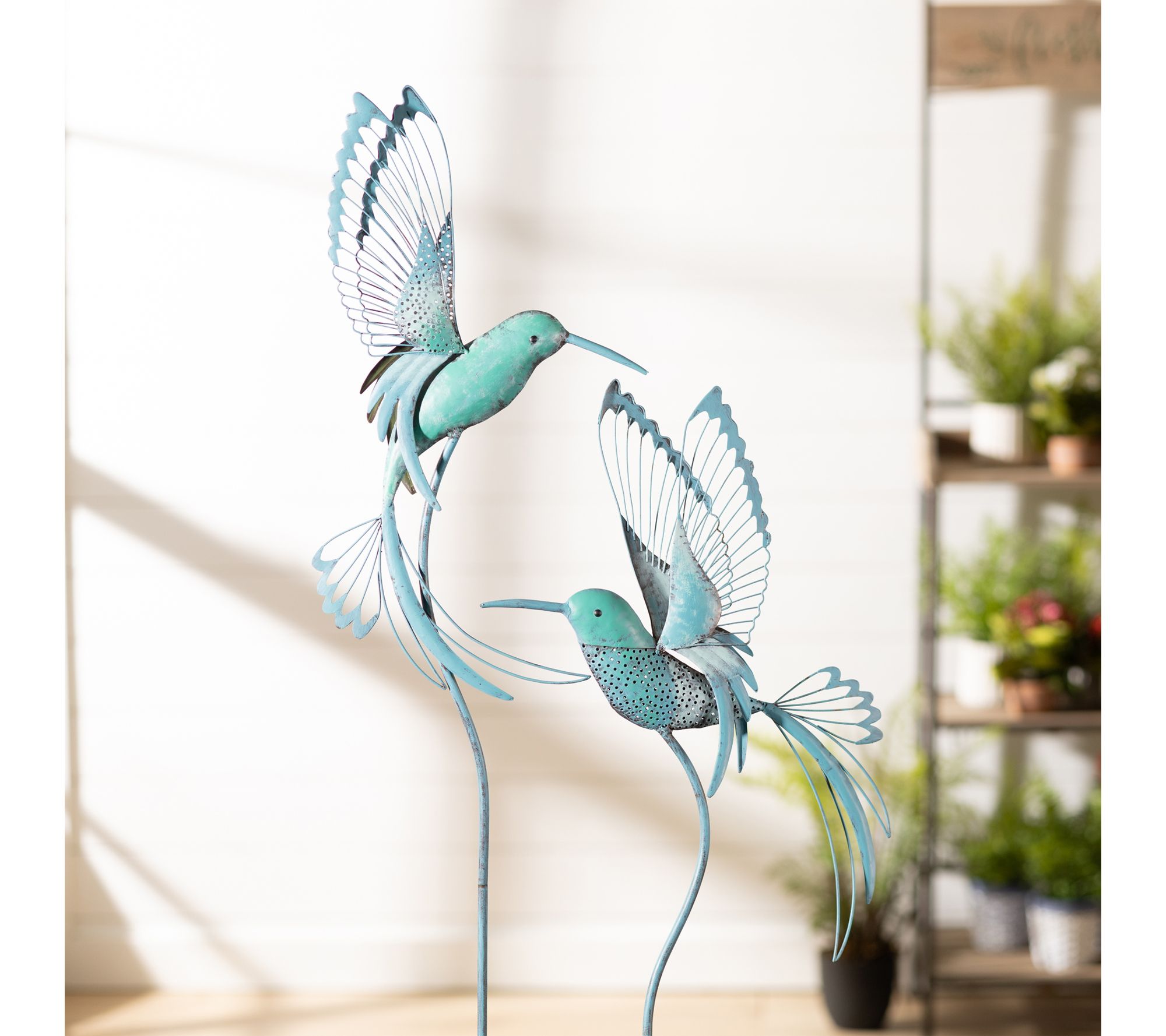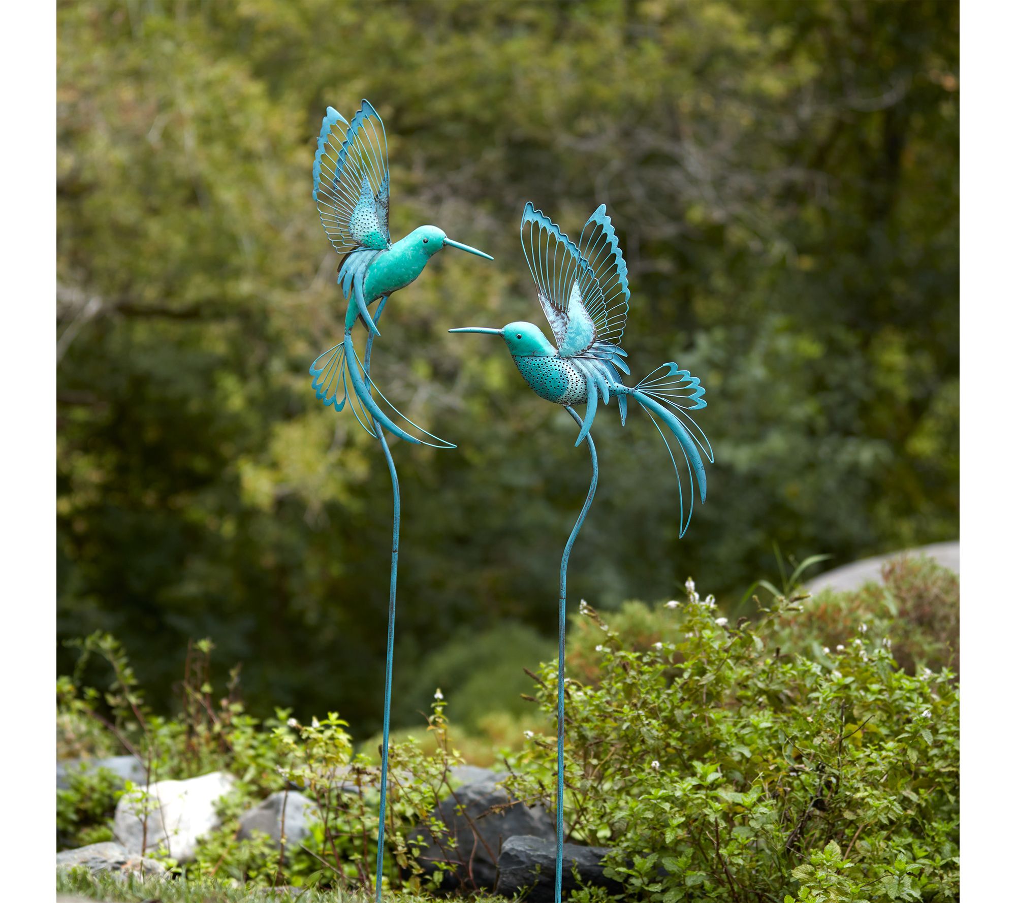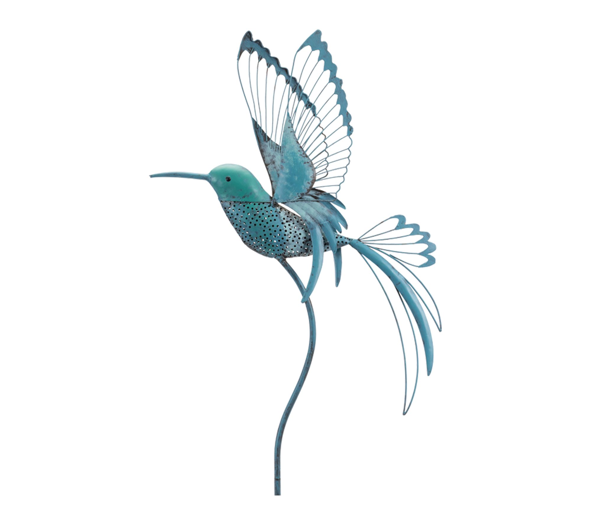 • Delicate cutout hummingbird motifs in blue and green hues bring artistic flair to your garden