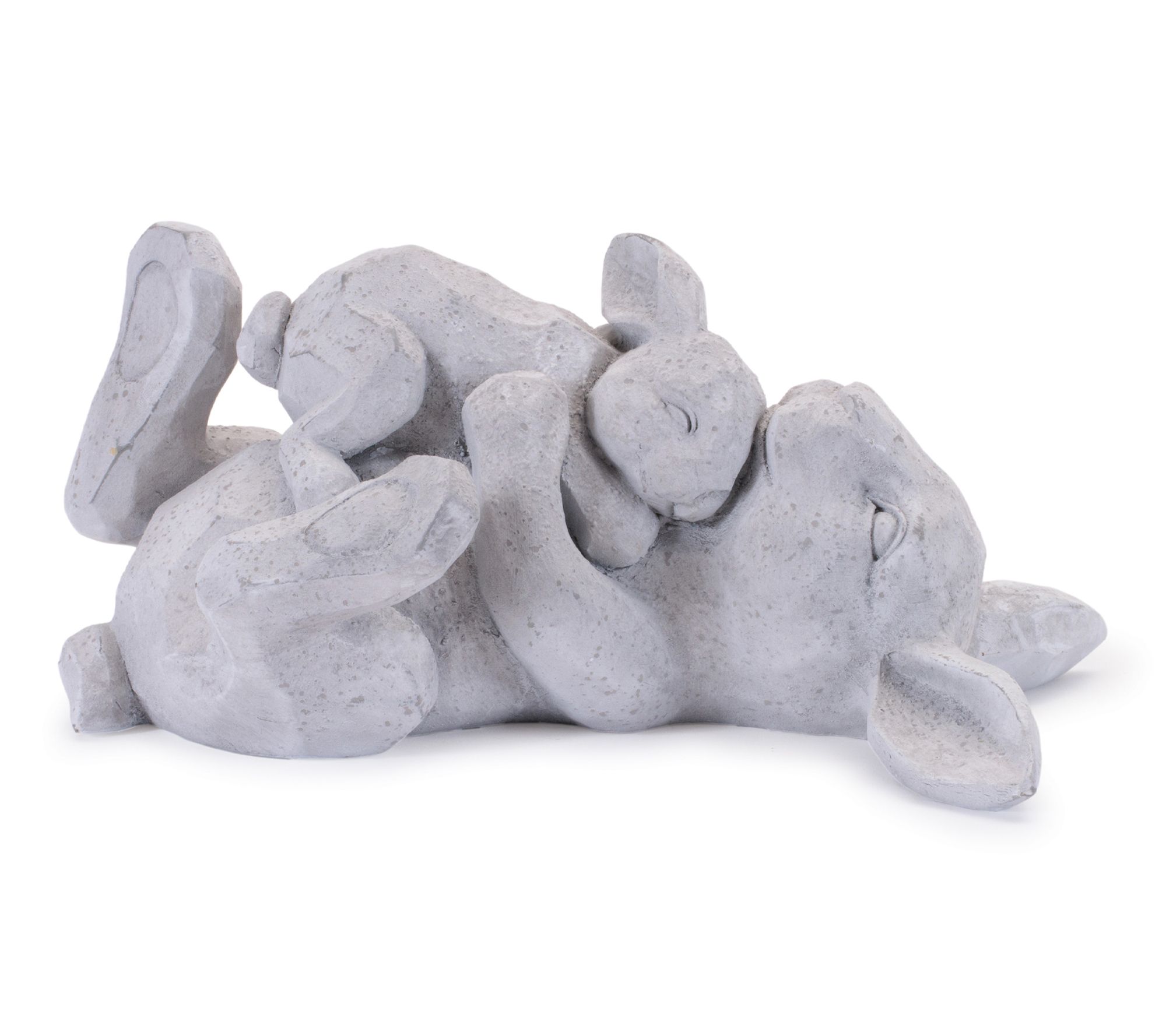 Bring a touch of warmth and charm to your home with this endearing set of two rabbit figurines. Featuring a lovingly crafted design, this set captures a sweet mother rabbit lying on her back and snuggling with her precious baby bunny -- a scene sure to add a friendly, nature-inspired accent to any space. From Melrose International.