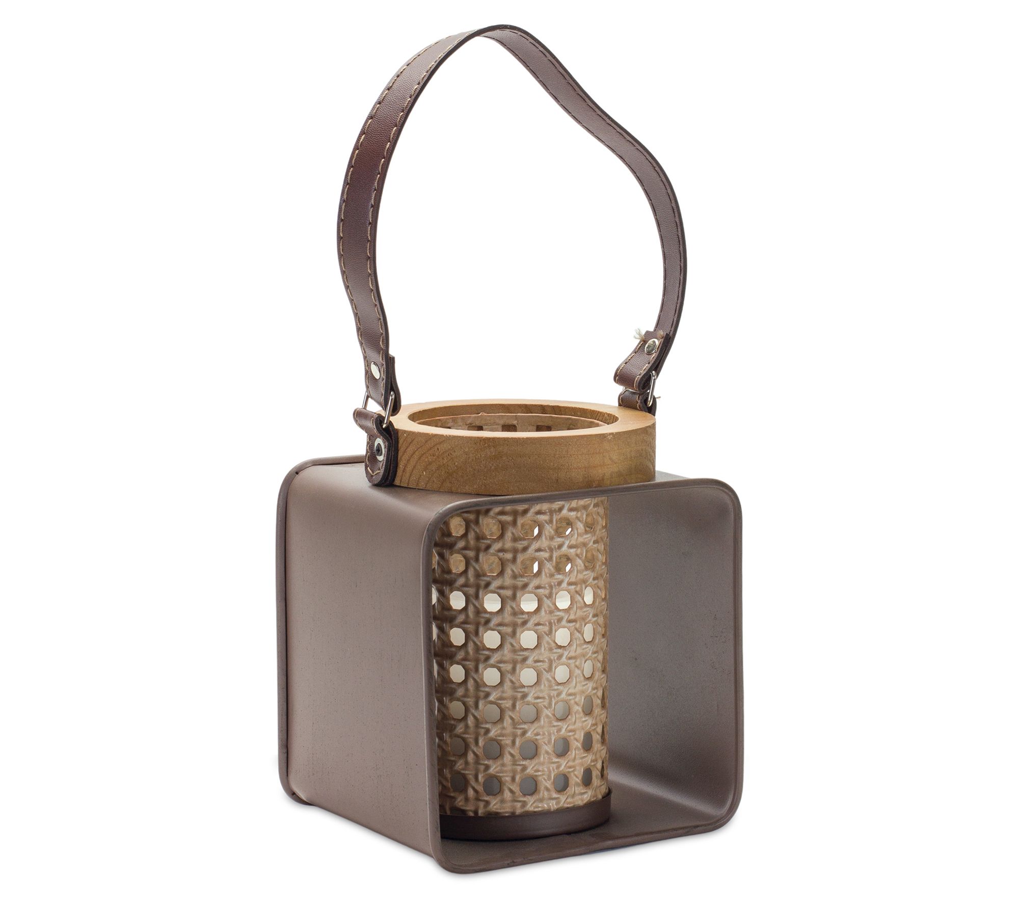 Melrose Iron and Wood Votive Holder w/ leather handle