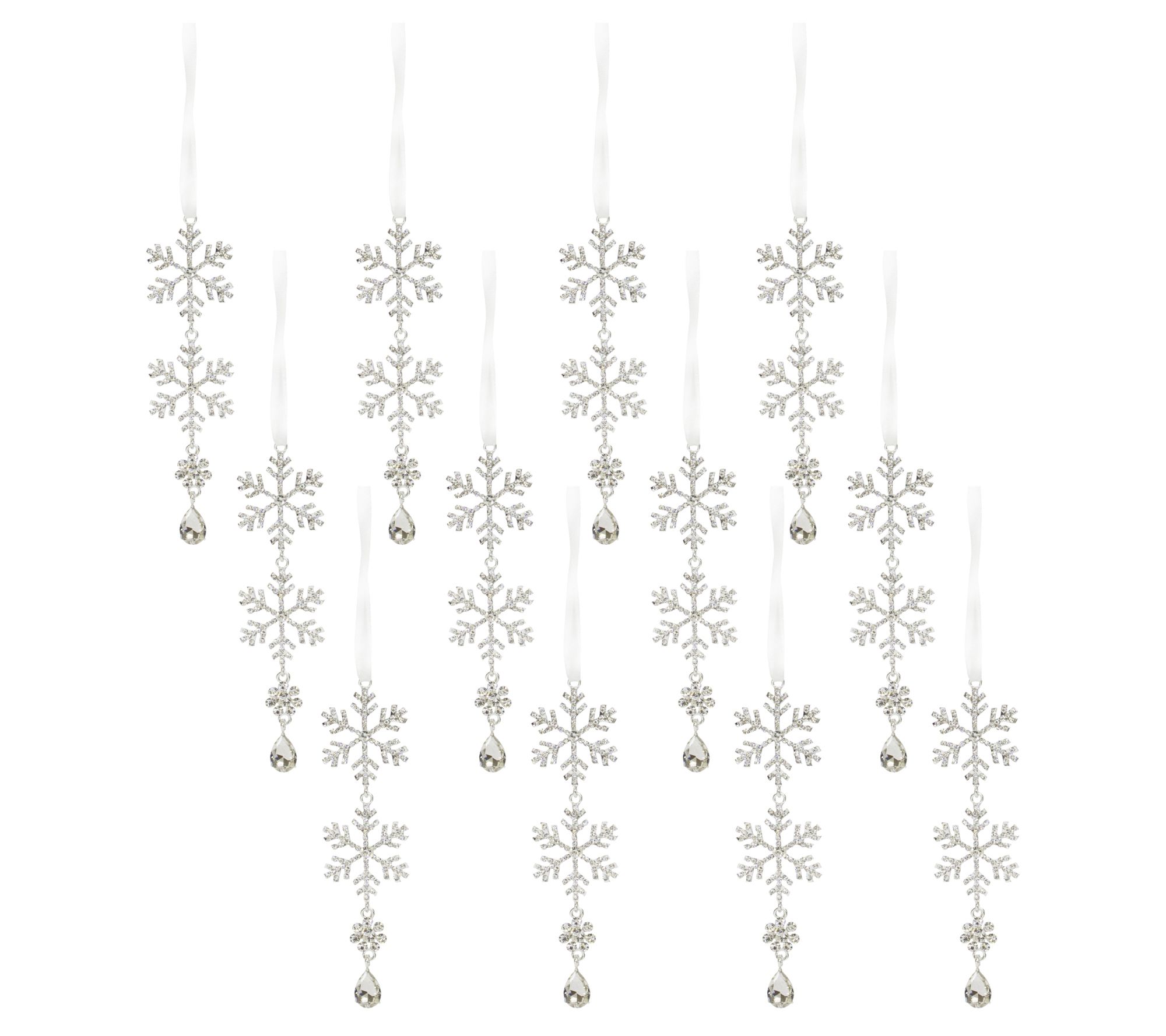 Melrose Jewel Tiered Snowflake Ornament Drop (Set of 12)