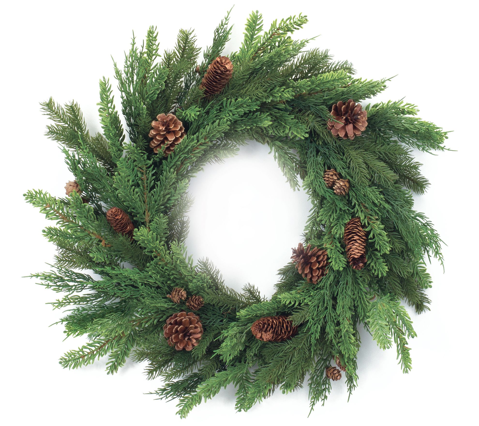 Greet guests with the nature and warmth of this realistic wreath garnished with pinecones for seasonal inspiration. From Melrose International.