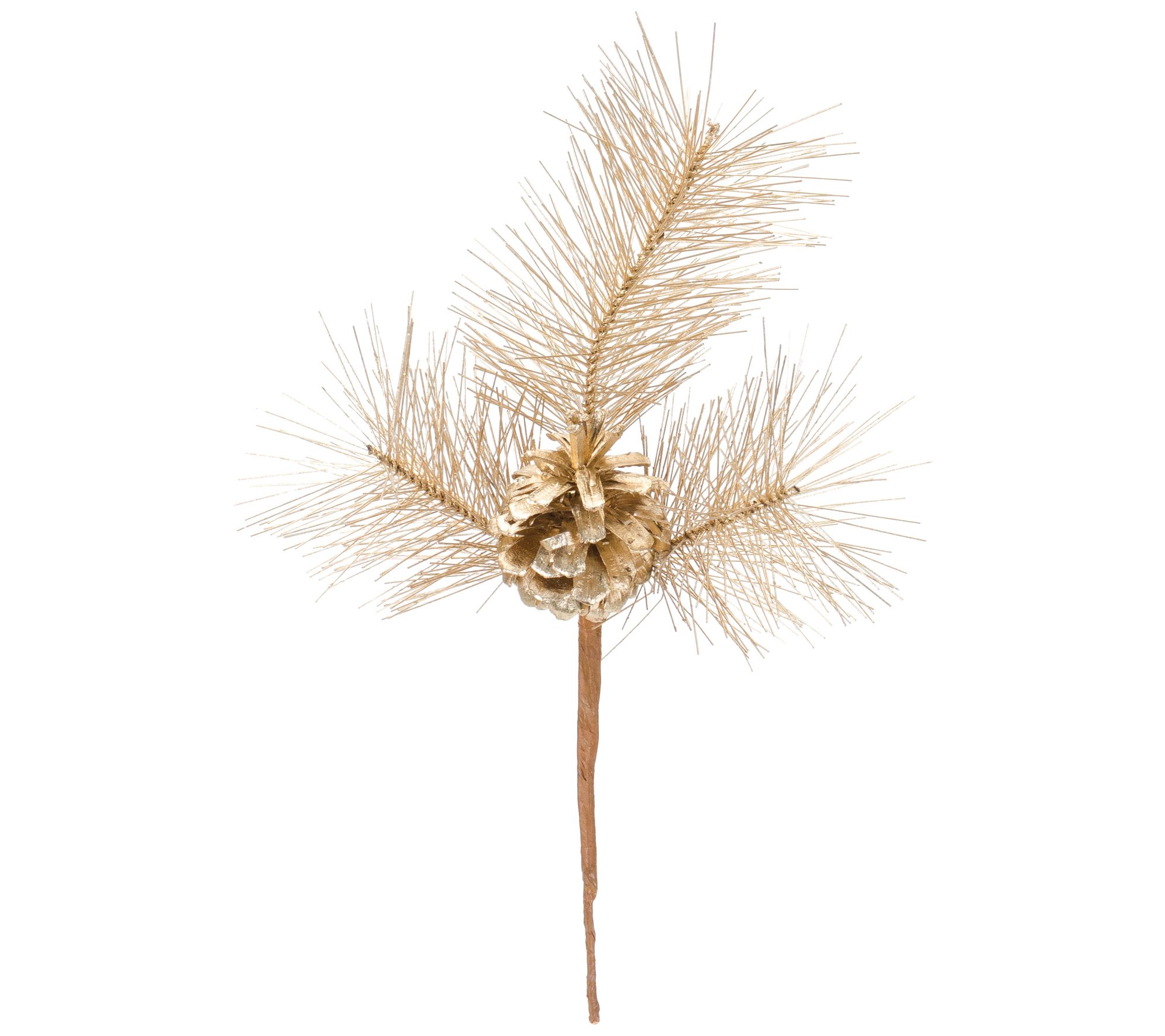 Bring a touch of elegance to your holiday display with this set of six faux pine picks, accented by pinecones and a shining goldtone finish. From Melrose International.