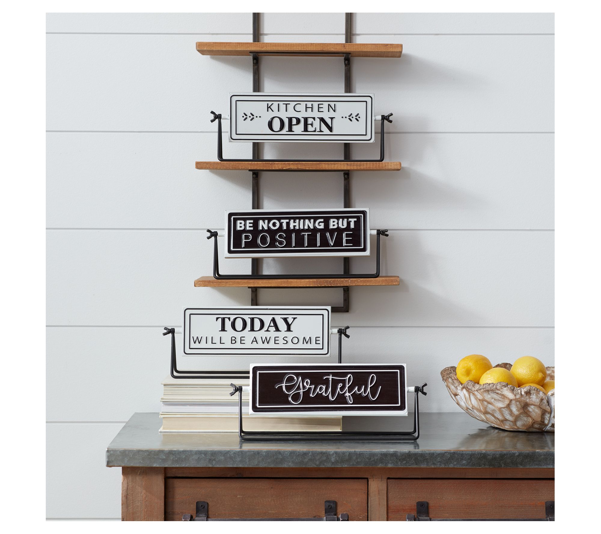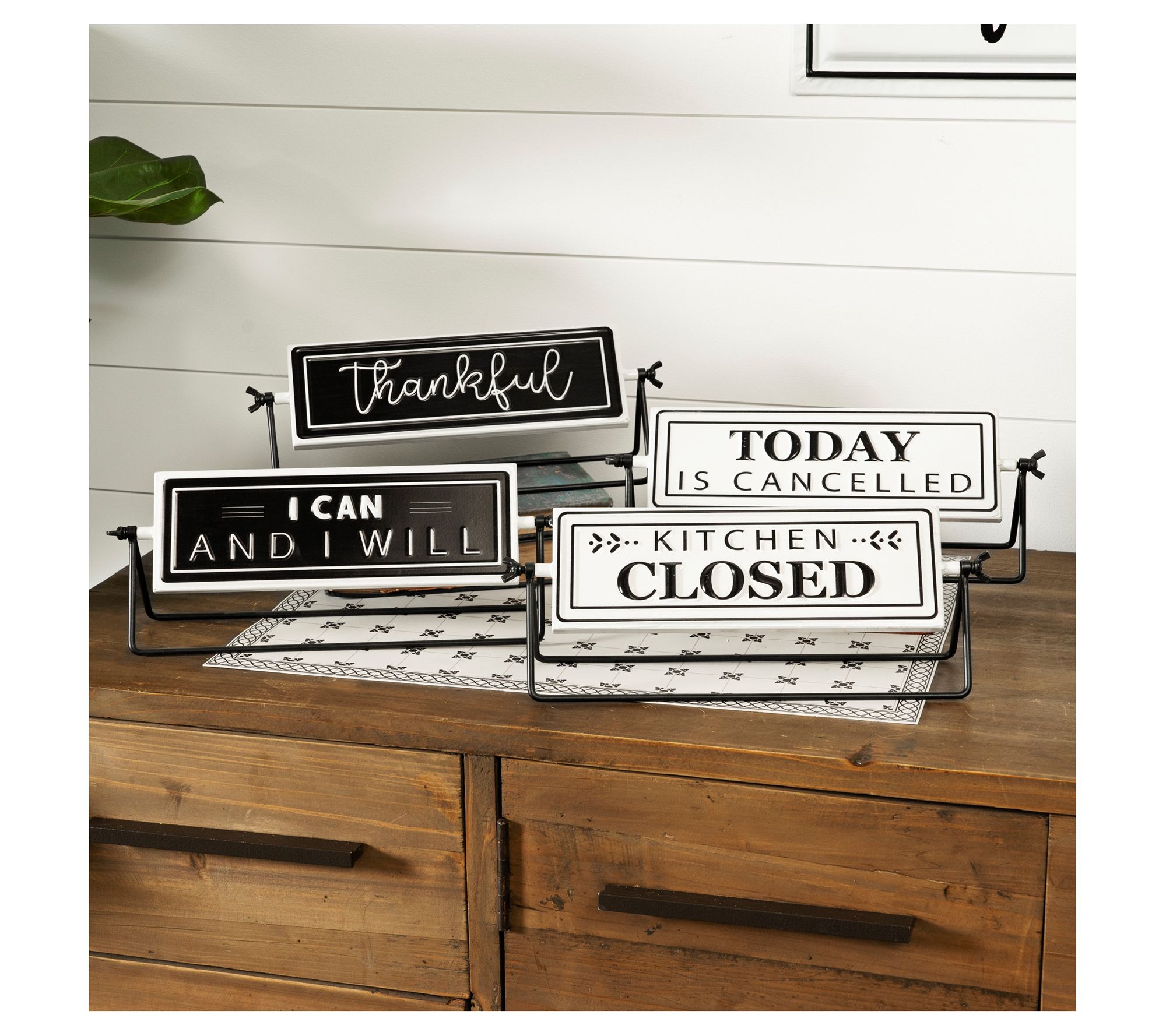 Decorate your home and spread positive energy with the charming messages of these reversible signs, each complete with a stand for easy display. From Melrose International.