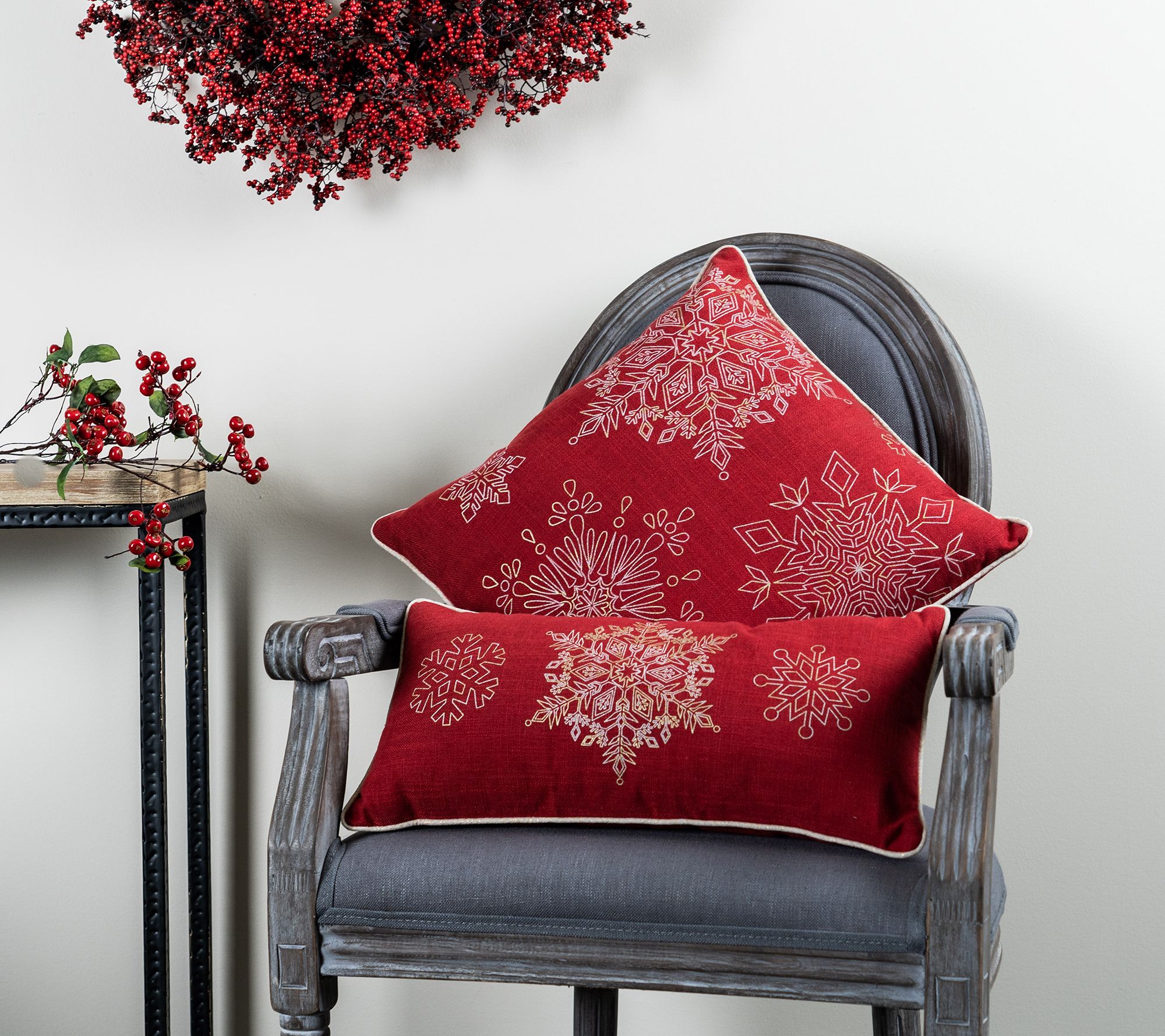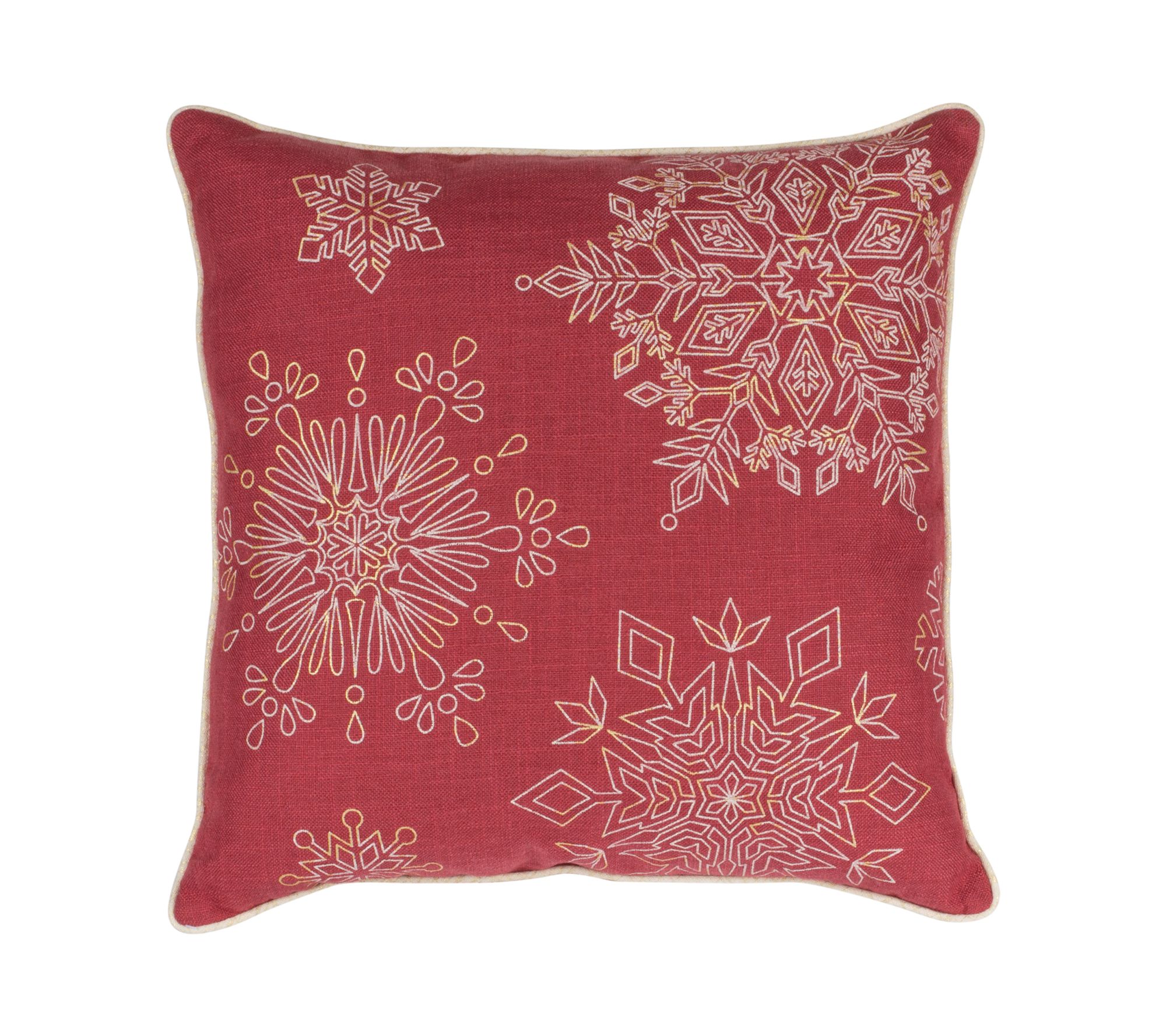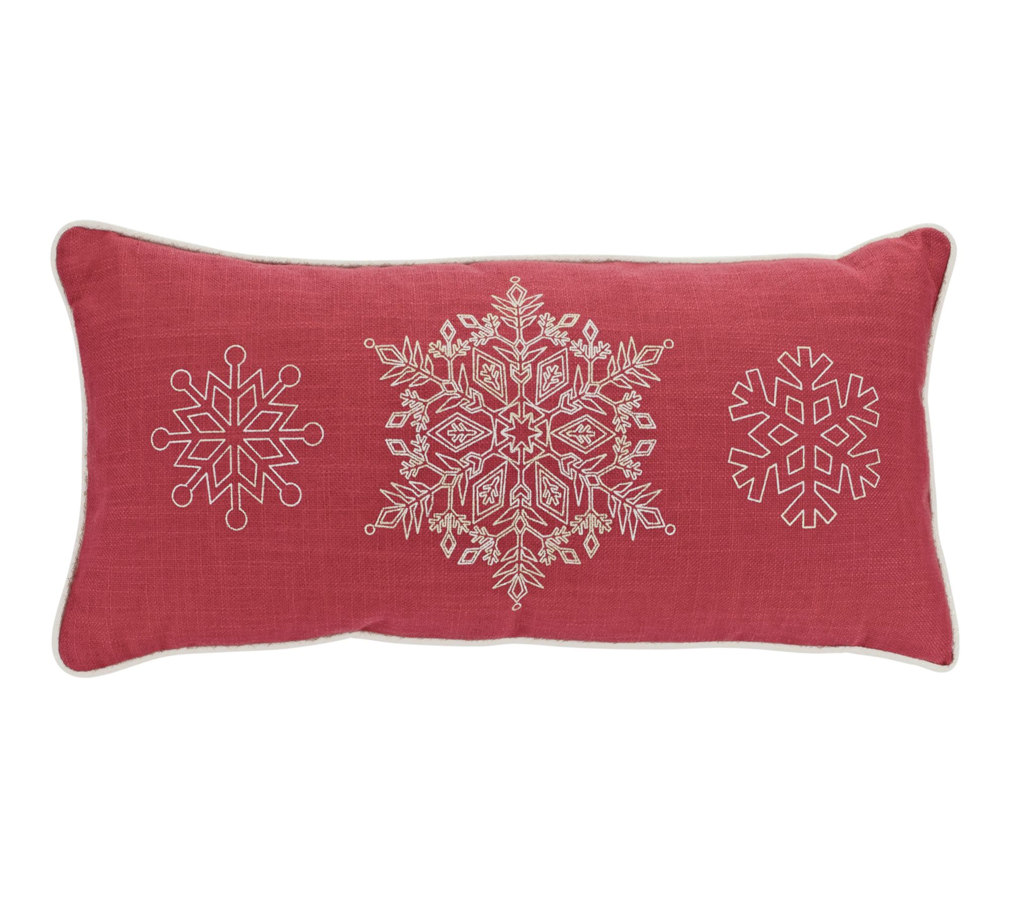 Invite holiday guests to settle in with the cozy addition of these plush pillows embroidered with intricately rendered snowflakes. From Melrose International.