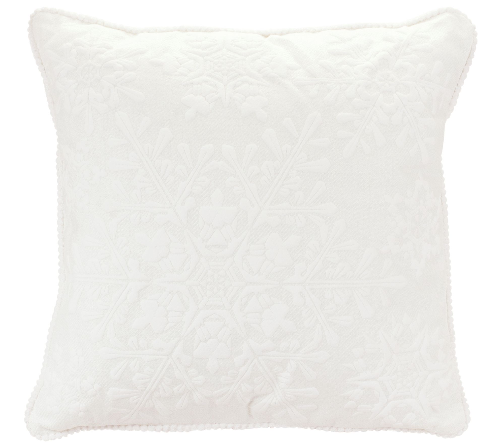 Add cozy comfort and a flurry of beauty to a sofa, bed, or favorite fireside chair when you have this lovely throw pillow that features a subtle snowflake pattern against a crisp white background. From Melrose International.