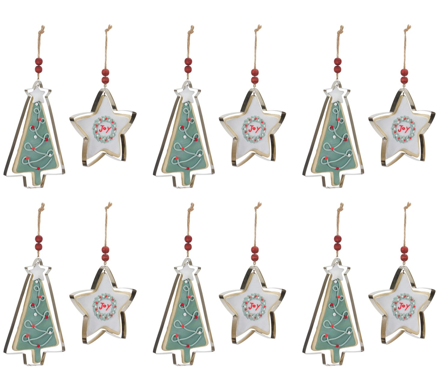 • Includes six star and six tree cookie and cookie cutter ornaments