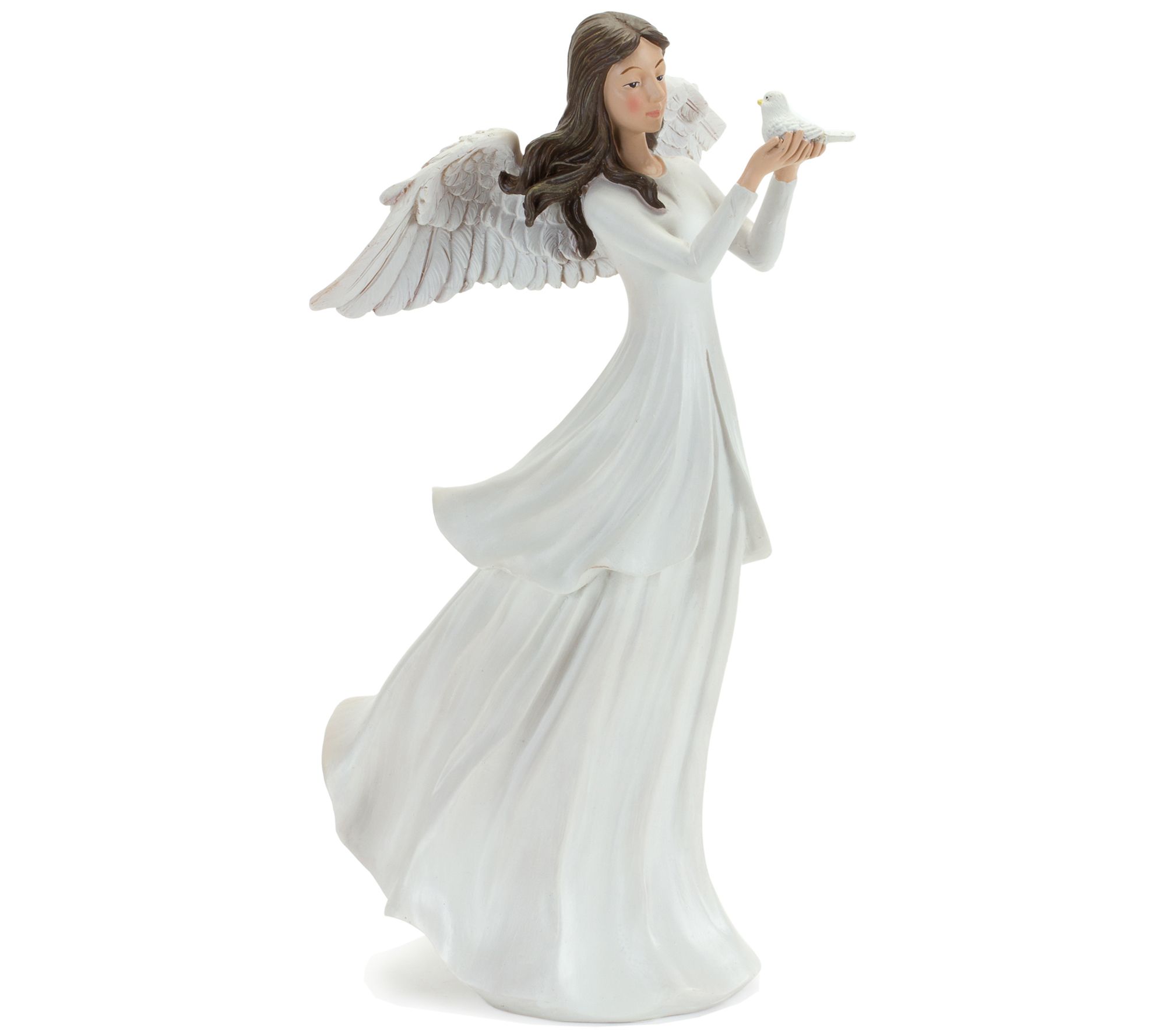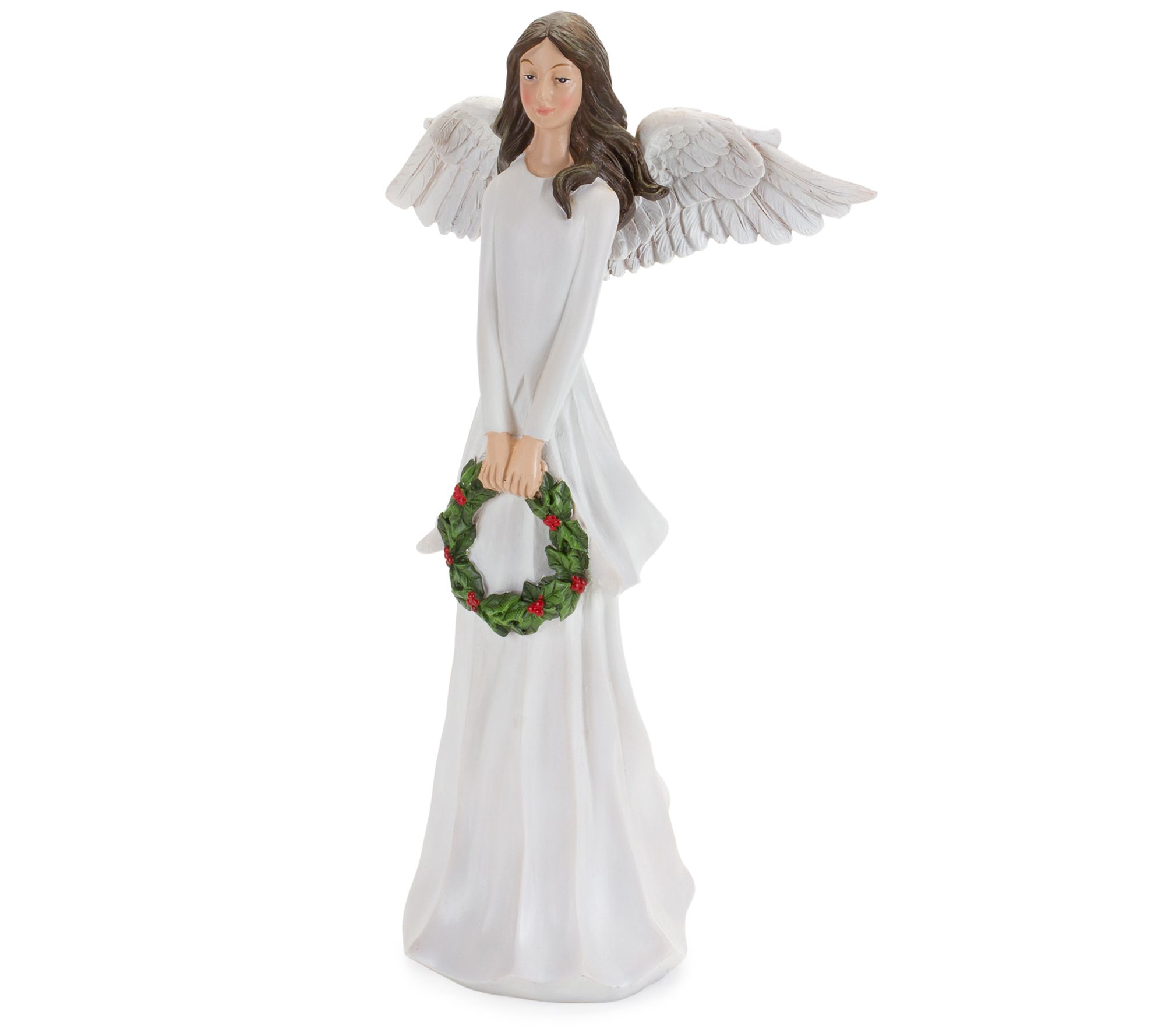 Bring heavenly beauty to your home with this pair of angel figurines, with one holding a festive wreath and the other cradling a bird in her hands, they are a lovely way to celebrate the holiday season. From Melrose International.