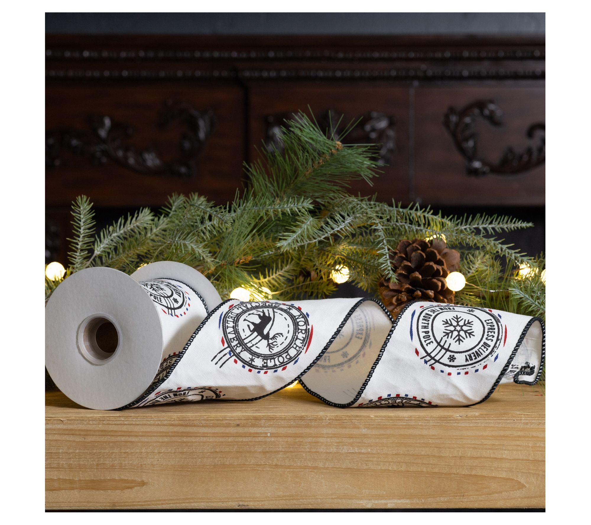 Elevate the look of your tree, gifts, and crafts with this beautiful cotton ribbon. The wired edging makes it easy to bend so homemade bows come together in a snap. From Melrose International.