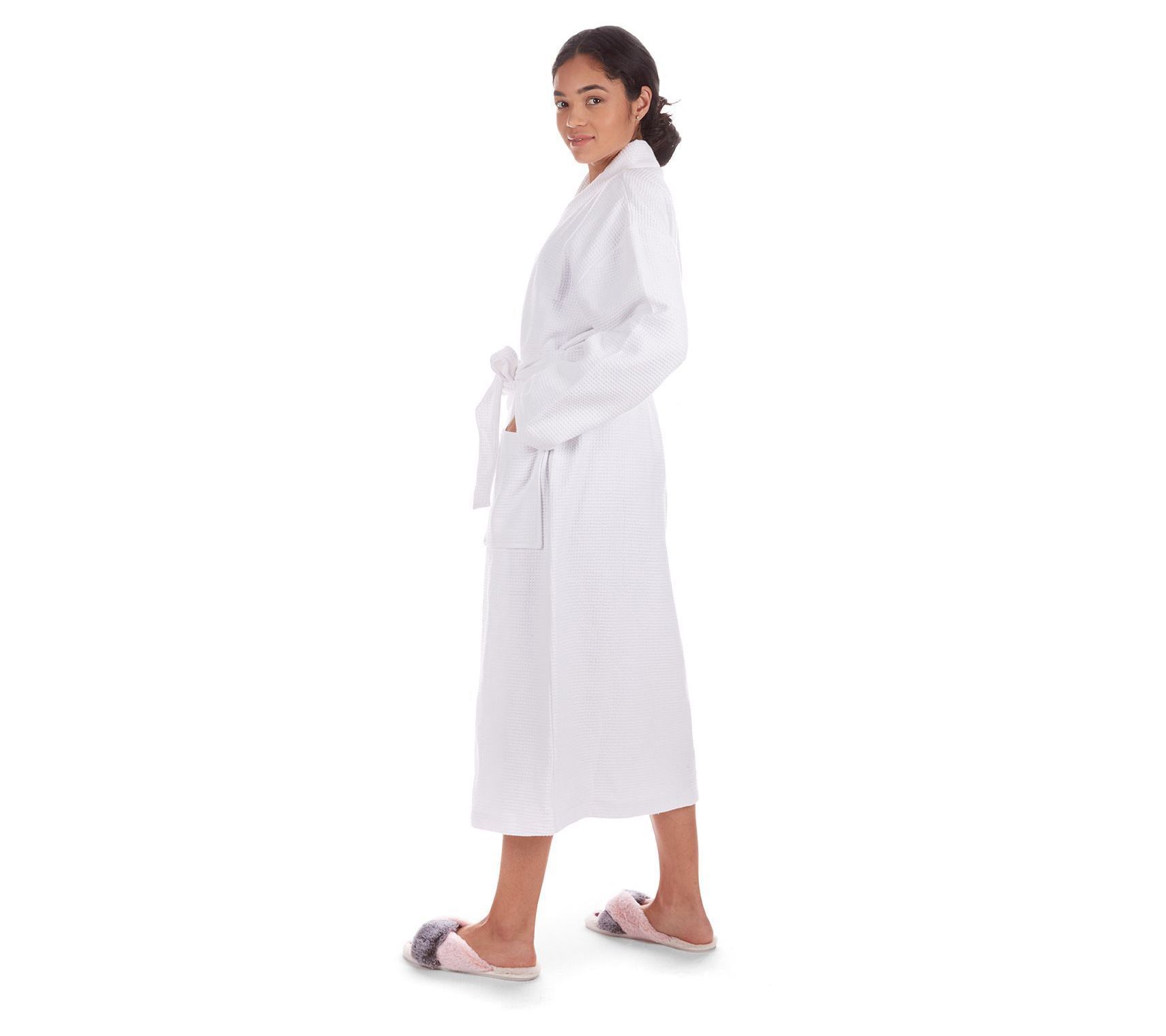 Wrap yourself up in this woven waffle kimono robe after a relaxing bath, when you're putting on makeup, or sitting with a cup of coffee. The 100% cotton construction, featuring a woven waffle exterior and terry interior, keeps you snuggled up in ultimate comfort. From MeMoi.