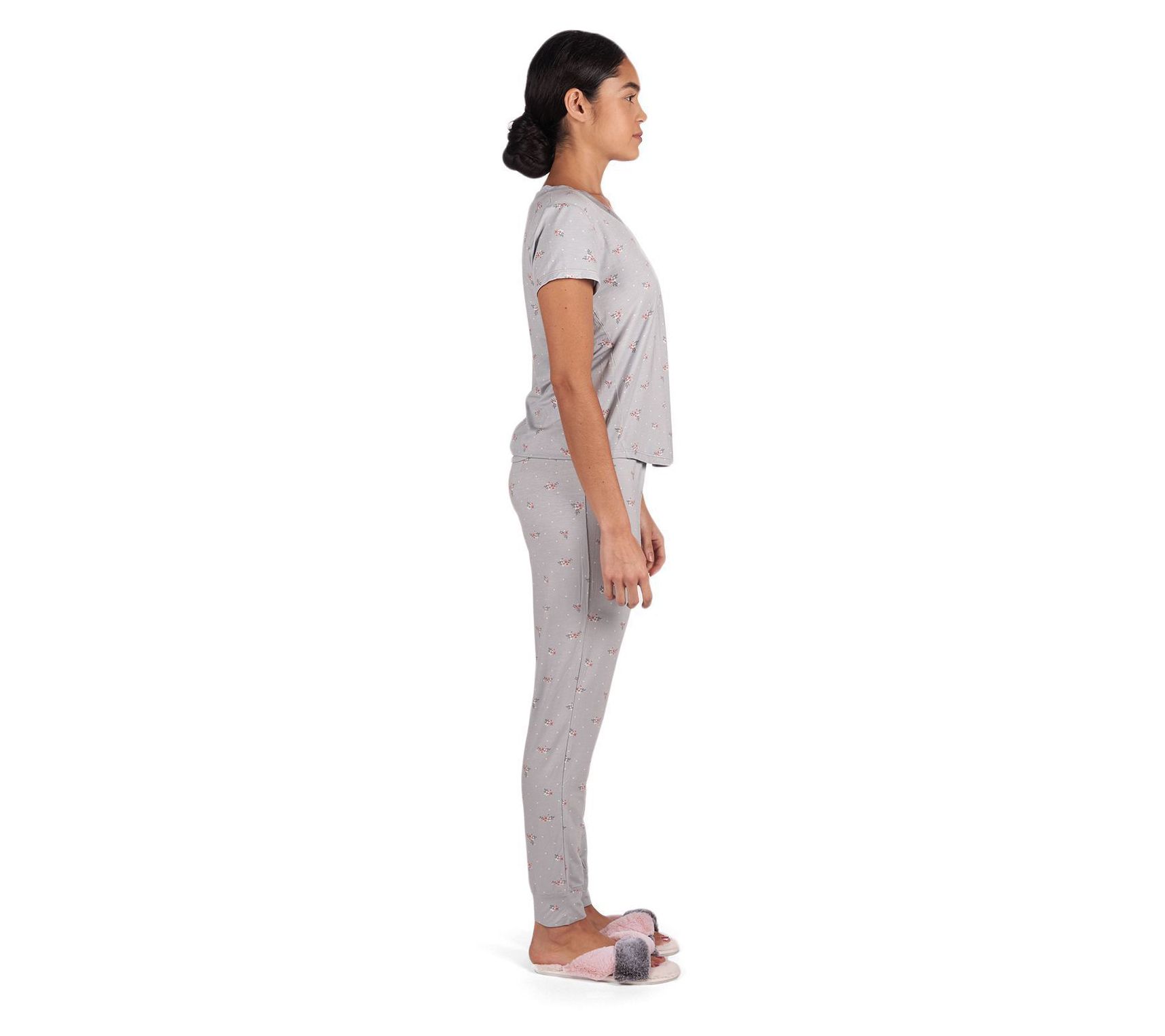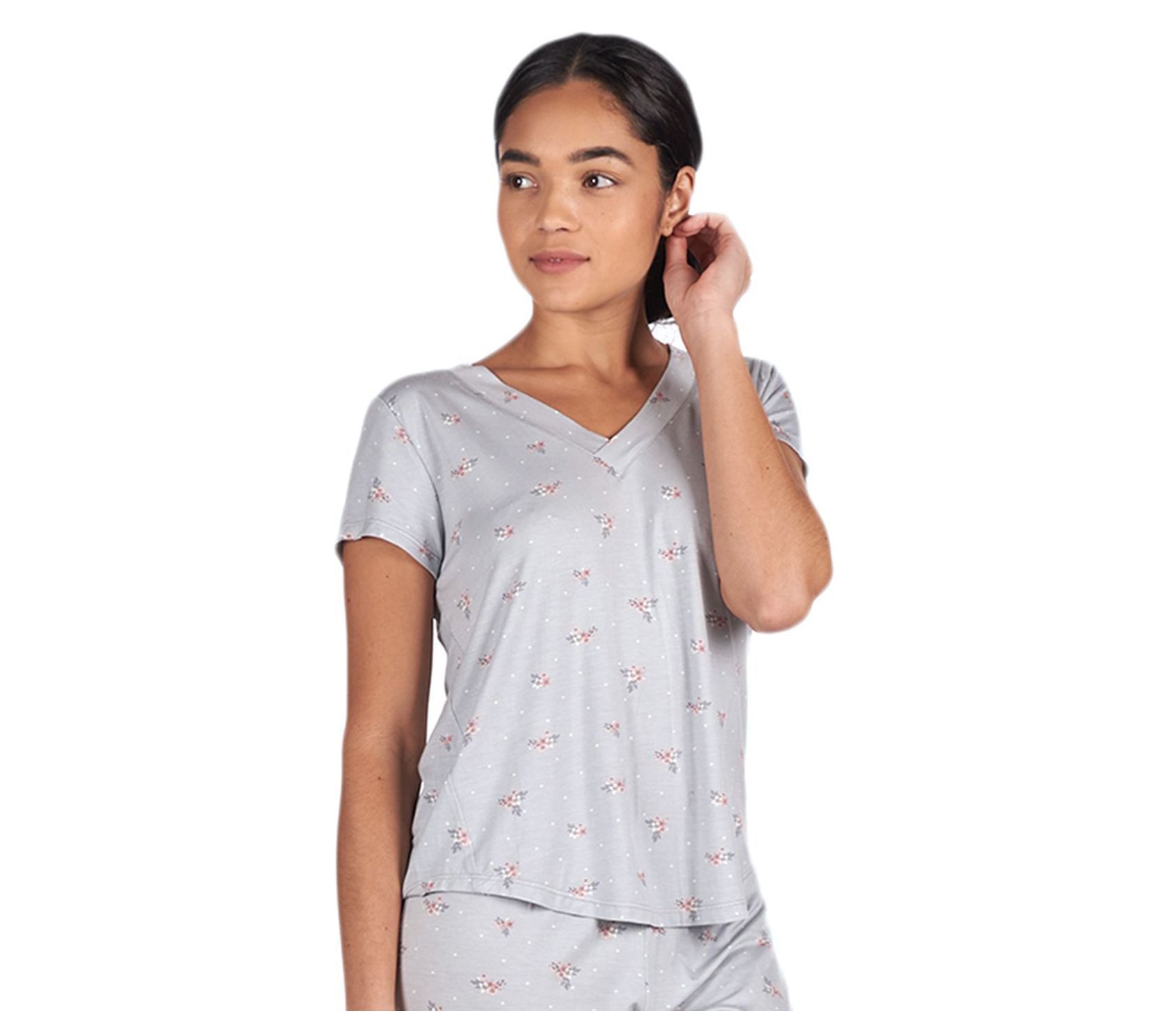 Look effortlessly chic and feel incredibly comfortable with the Memoi ditsy floral short sleeve lounge top, perfect for lounging at home or pairing with matching bottoms for a complete look. From Memoi.
