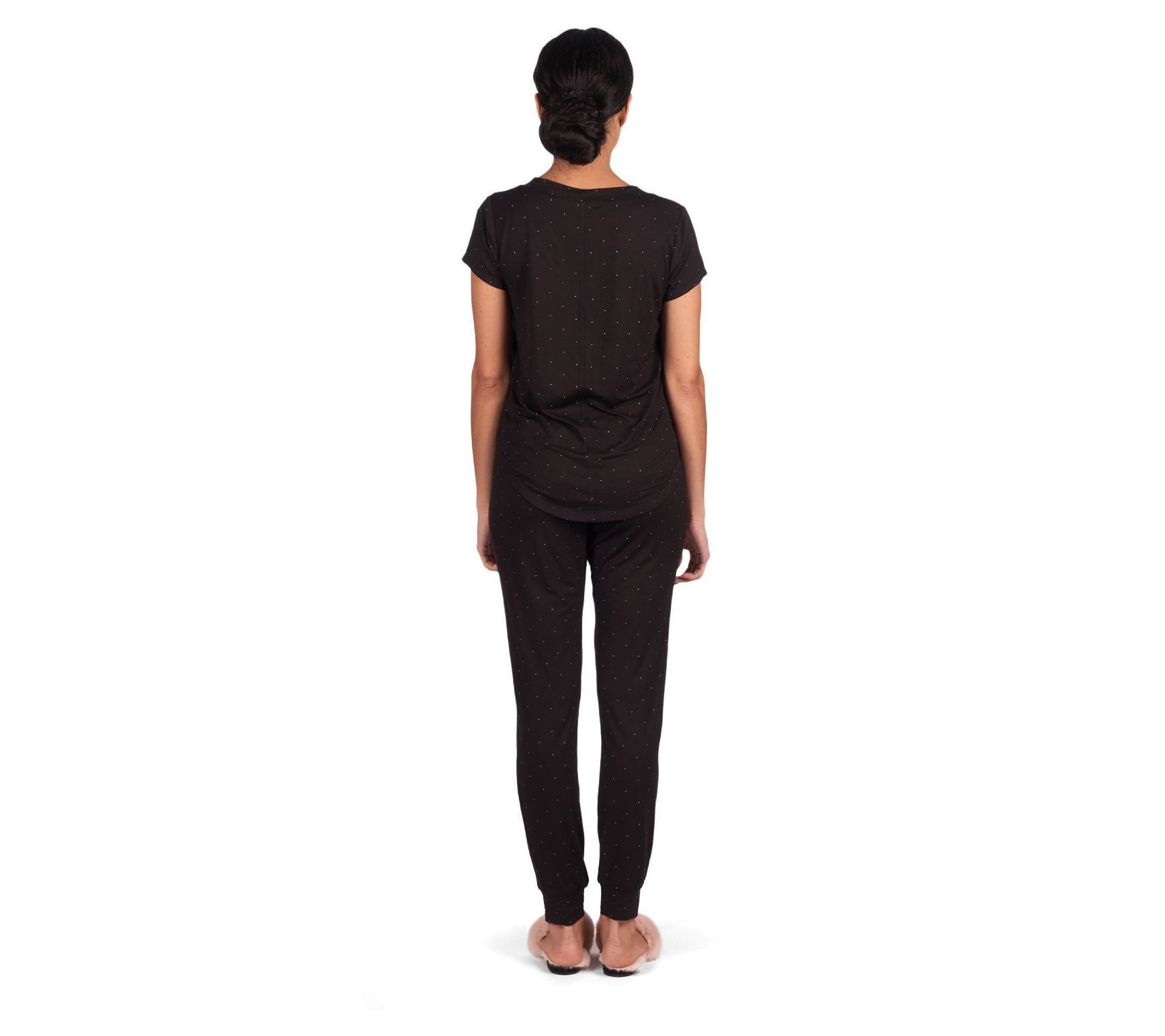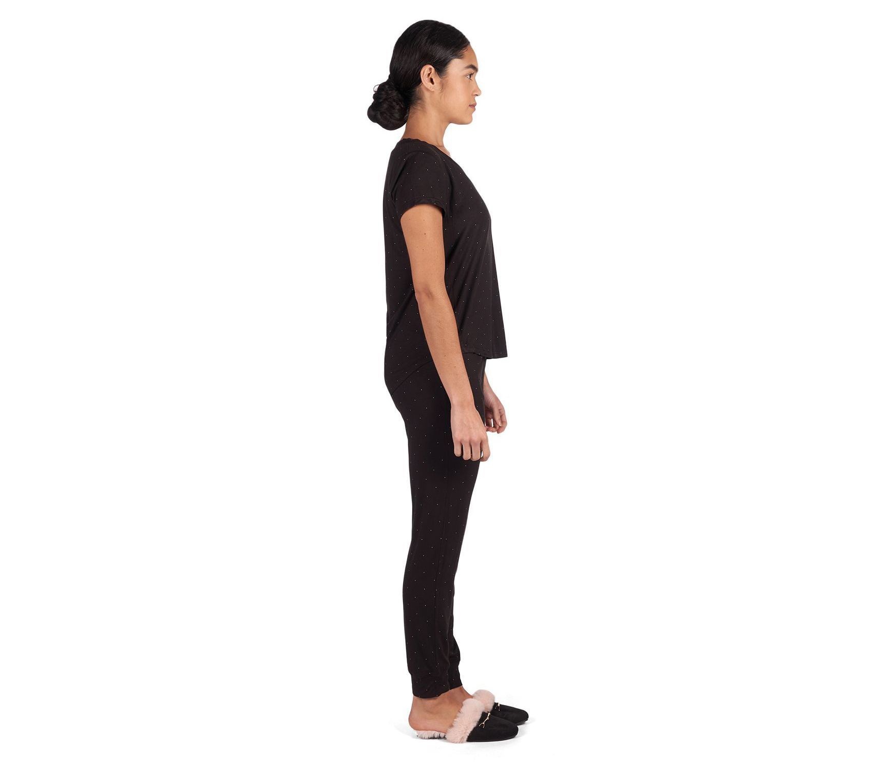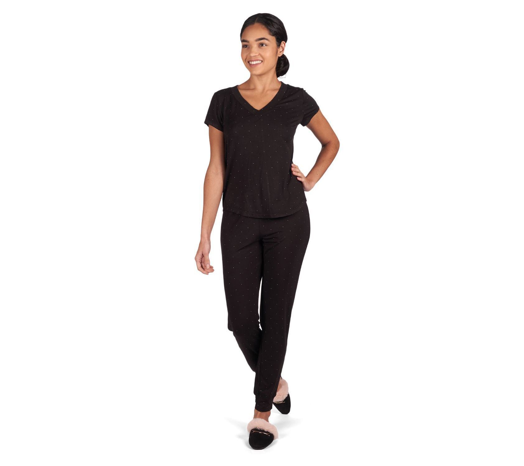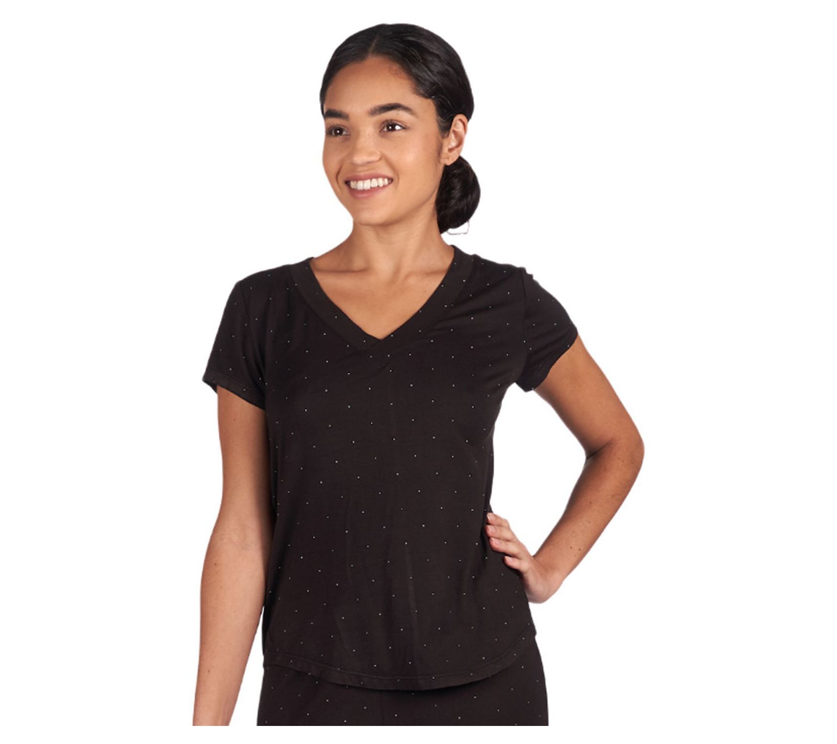 Step into comfort with the Memoi dotted rayon made from bamboo short-sleeve V-neck lounge top. From Memoi.