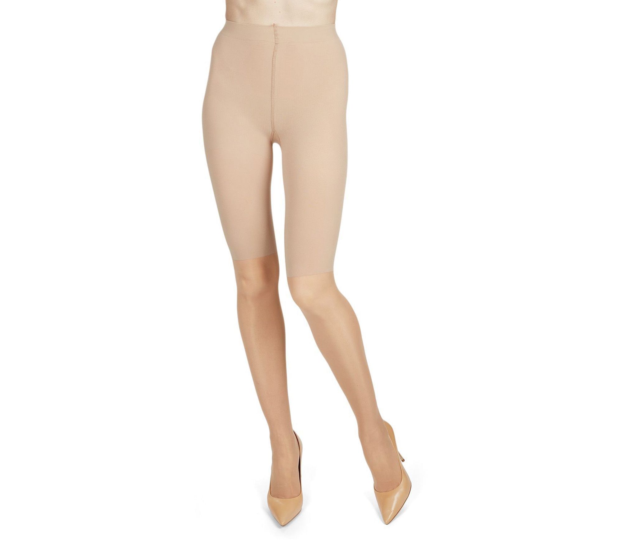 Feel confident and fabulous all day long with MeMoi half opaque, half sheer pantyhose. Perfect for work or a night out, these tights combine shaper shorts and sheer stockings for exceptional support and a sleek silhouette under any outfit. From MeMoi.