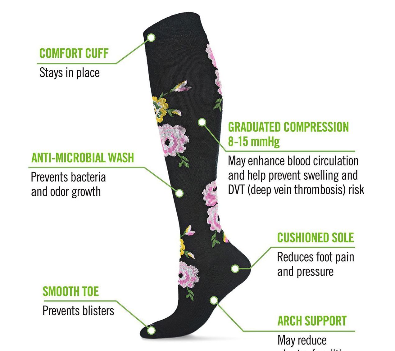 Whether you're jetting off on an adventure, hitting the gym, or gearing up for a long day at the office, let these compression socks provide the support you need. Crafted with a moderate and graduated compression, they help provide comfort without feeling too tight. From MeMoi.