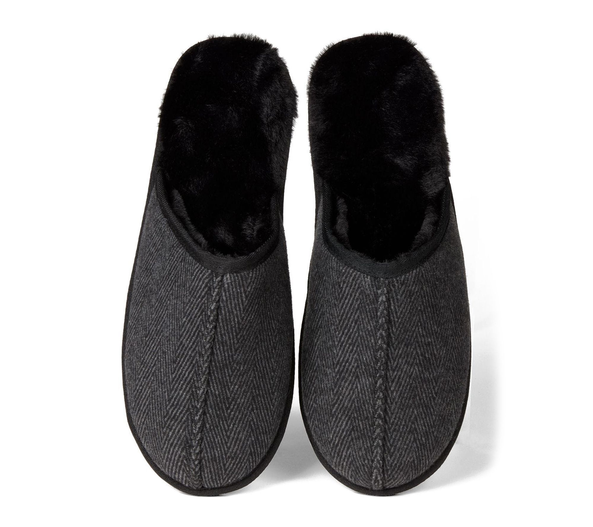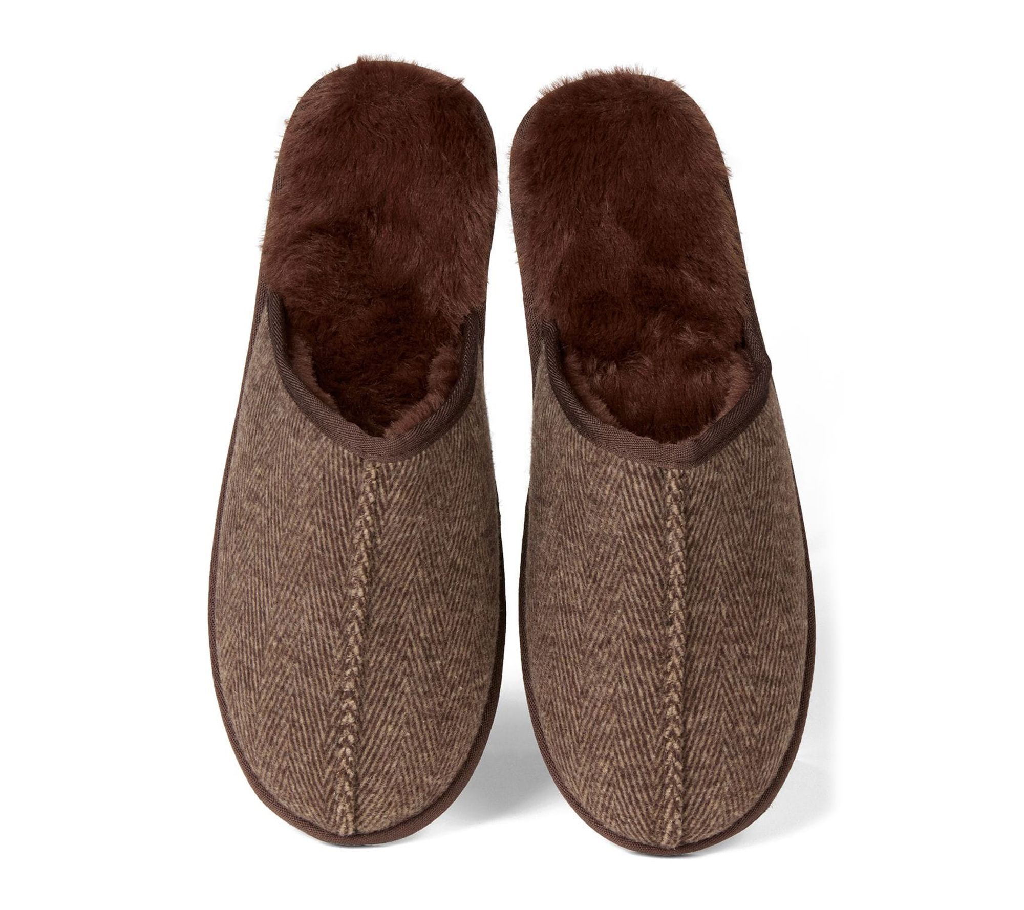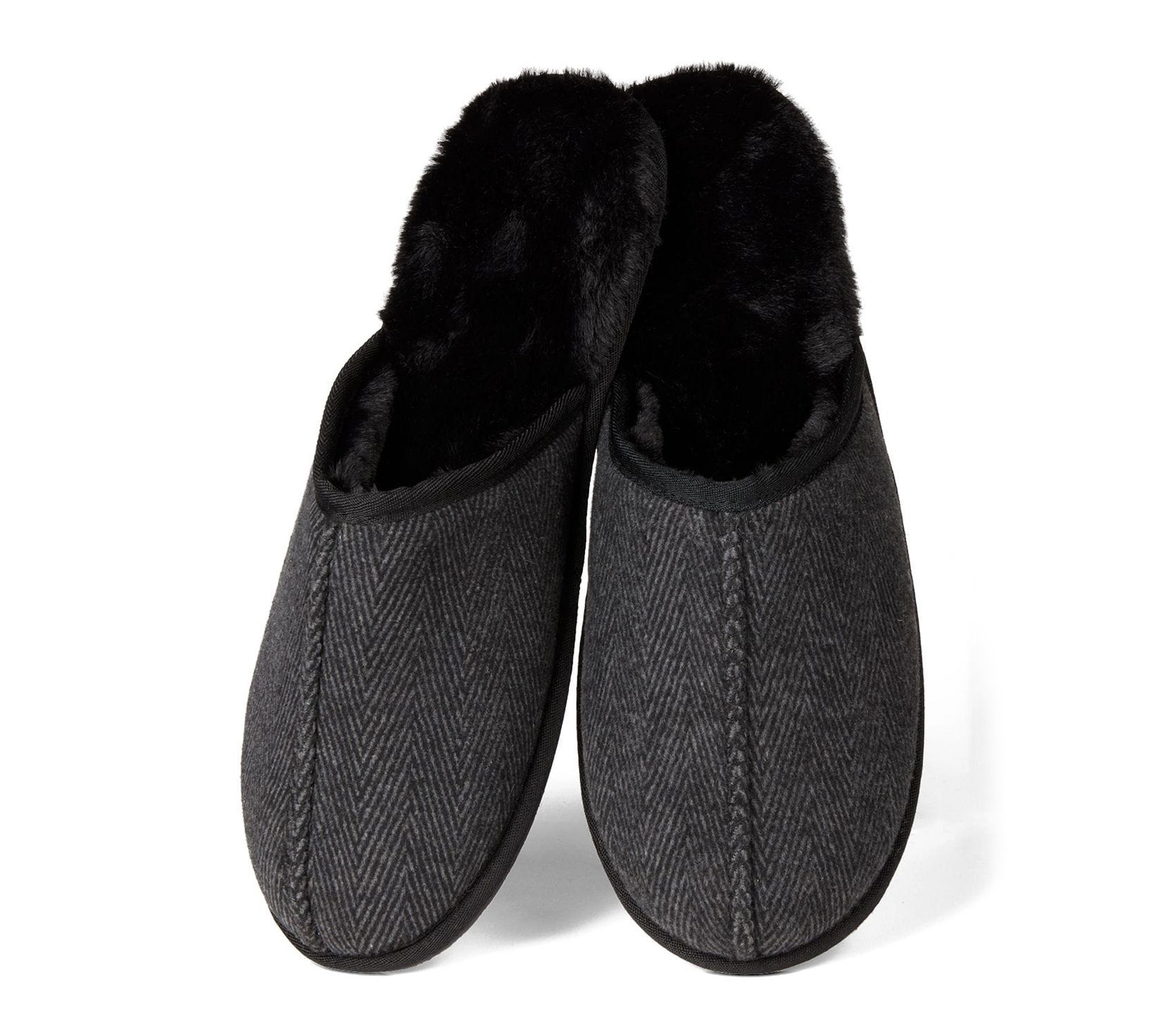 Memoi Men's Plush-Lined Herringbone Tweed ScuffSlipper