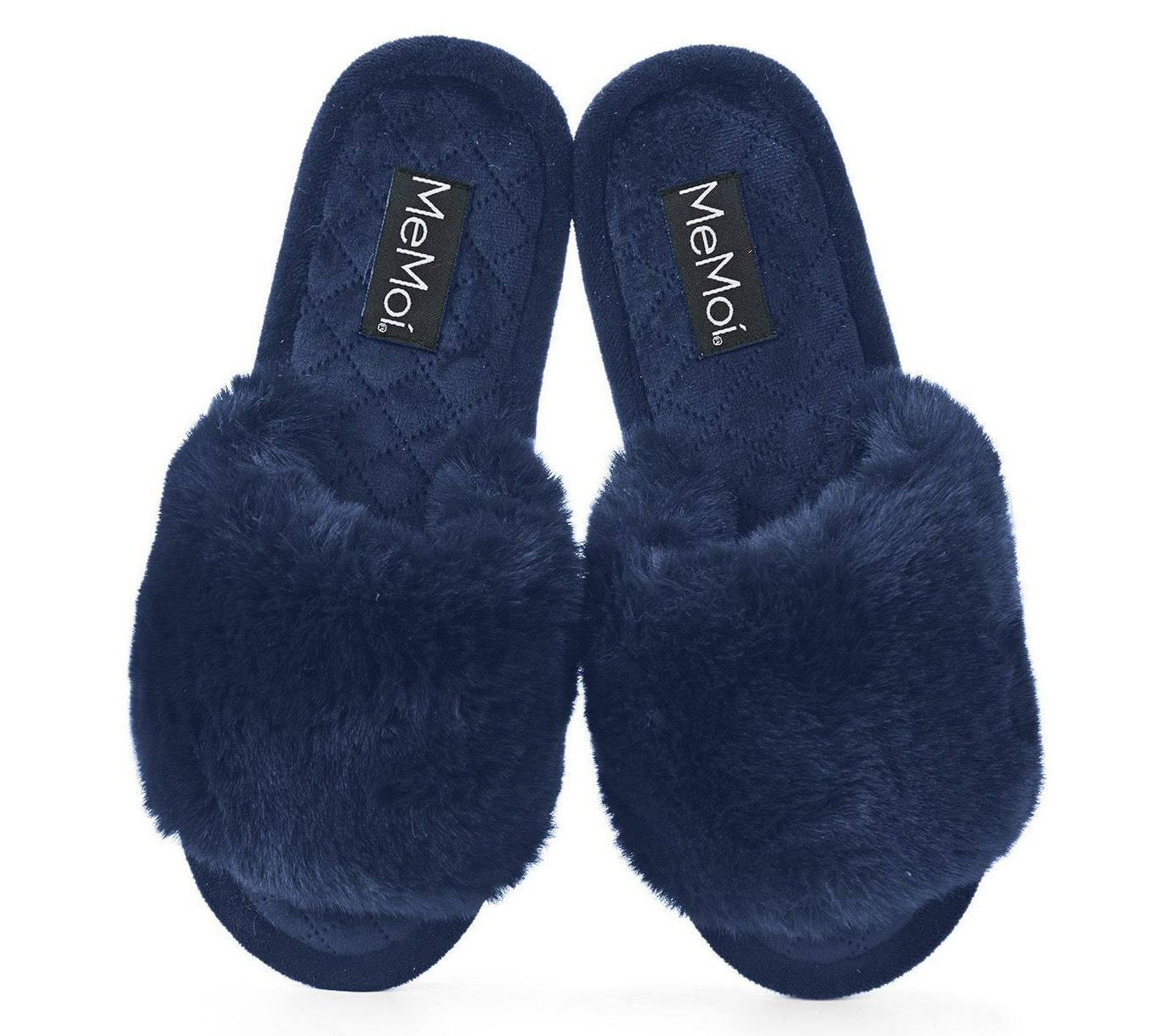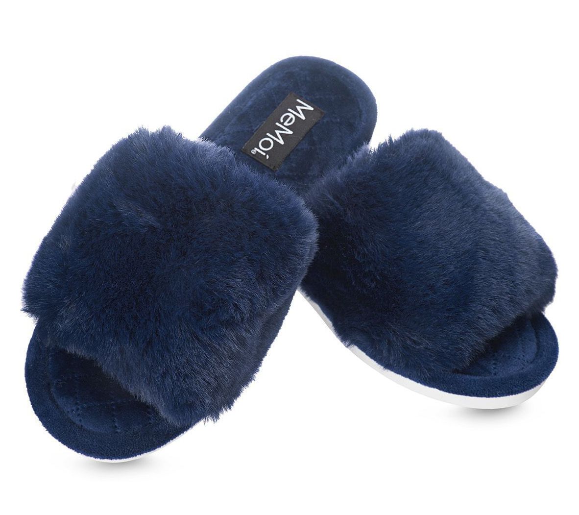 There's just the right touch of vintage glam and plush comfort with the Bette plush slippers. Whether you're enjoying a relaxed morning at home or hosting your next virtual meeting from the couch, these slippers offer unparalleled comfort with a hint of nostalgic charm. The open-toe design wrapped in luxurious faux fur ensures that they feel as good as they look. This easy slip-on style not only keeps your feet cozy but makes a delightful gift for friends who appreciate a blend of sophistication and comfort. From Memoi.